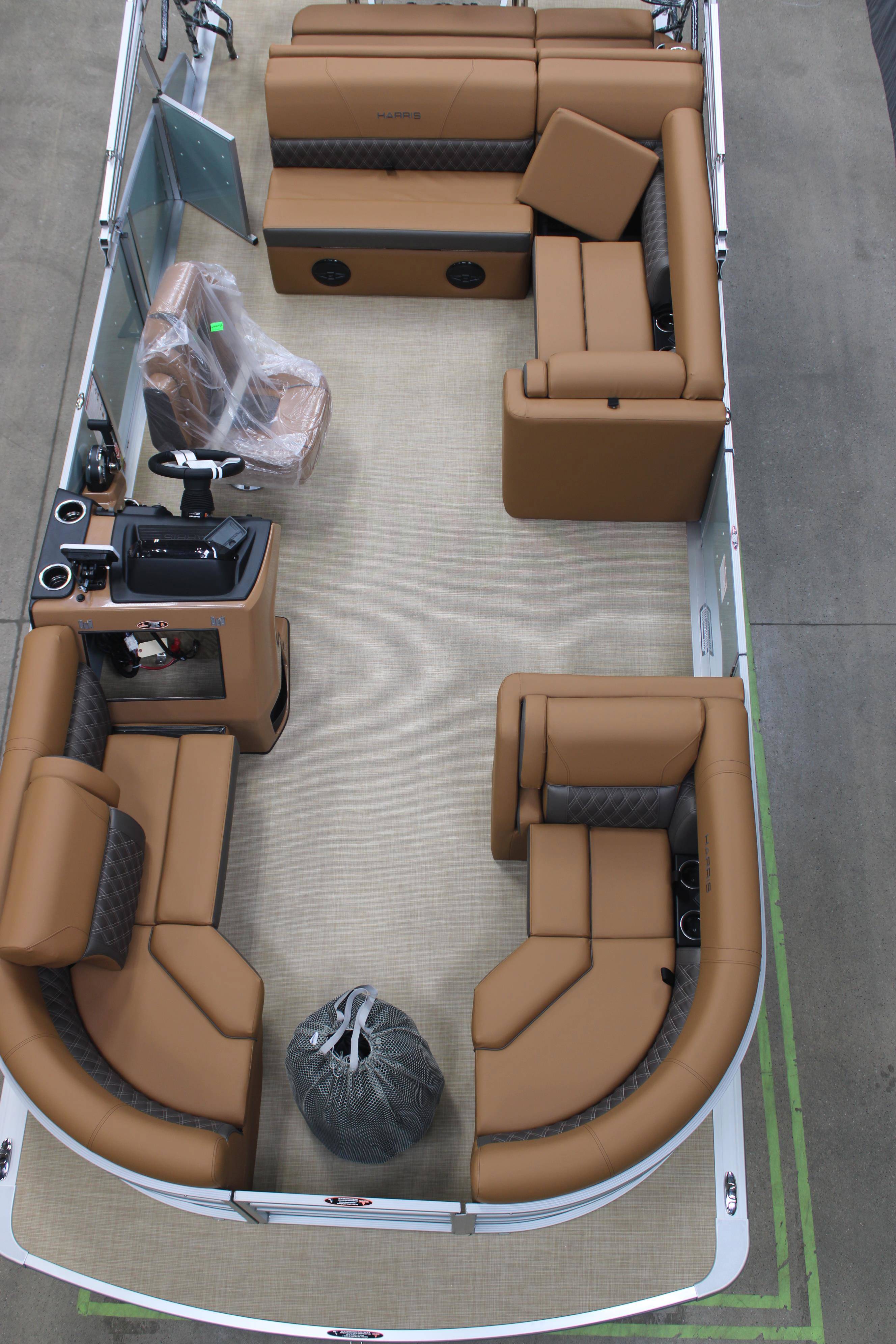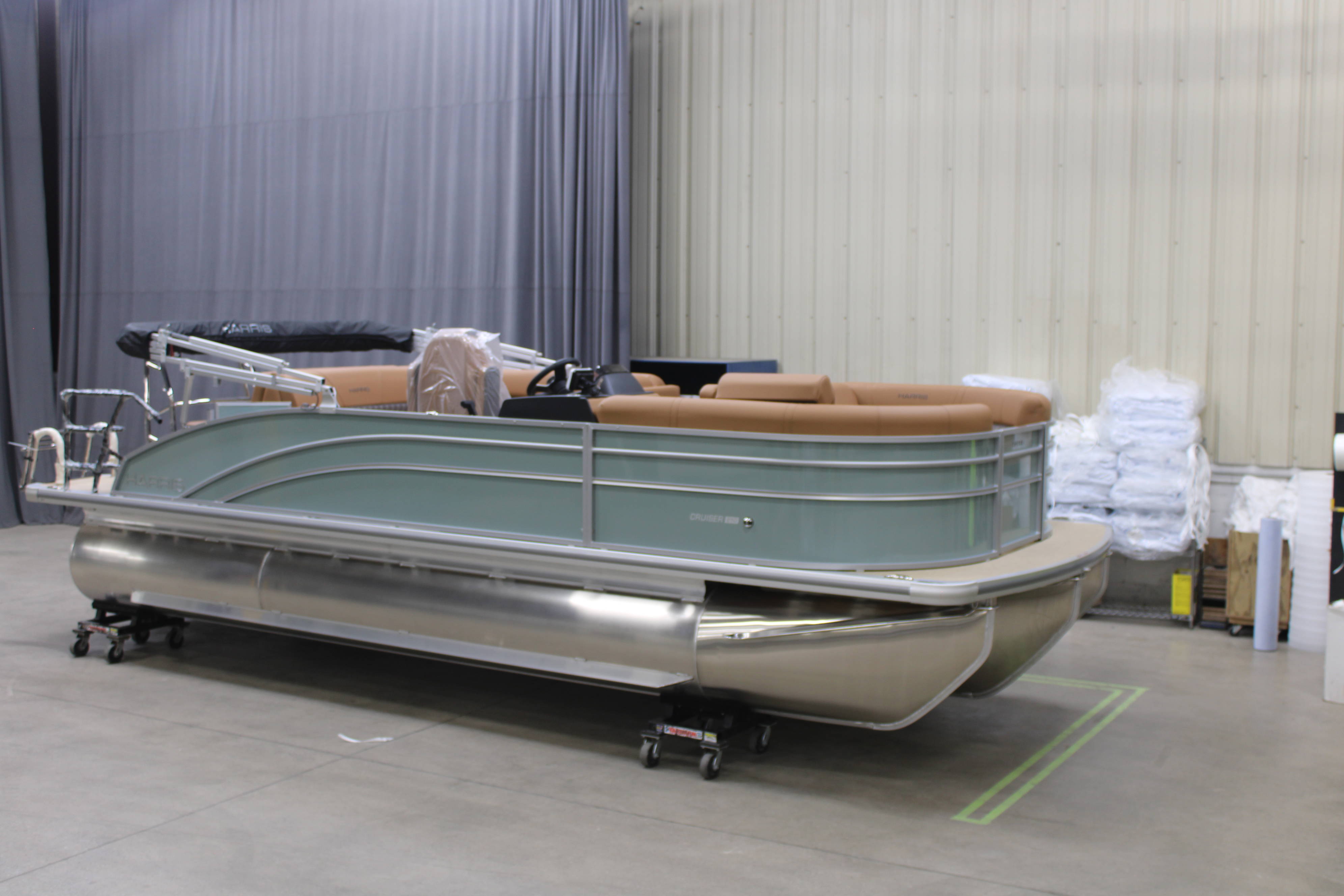 2026 Harris 210 Cruiser with a CS floorplan and powered by a Mercury 150L 4S!Factory Installed Options:Exterior- sage greenInterior- luxury chestnut brownLuxe package325 chassisBlack bimini canvas4 step telescoping stainless steel ladderStainless steel ski tow barUltra lux high back helm seatDesert beige seagrass flooringWireless mobile phone chargerEagle fish finderWetsounds 400Stainless steel cupholdersSafety railLuxury sport woodgrain table