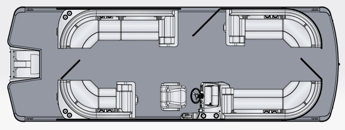 handling, reliable performance, and the versatility to match your boating lifestyle.Notable Options Include:Mercury 150hp EngineHarris RPM Tritoon ChassisMatte Black Exterior with Blackout EditionLUX Chestnut Interior UpgradeSki Tow BarPower Bimini TopLillipad Ladder UpgradeWireless Phone ChargerFishfinderWet Sounds Stereo & SpeakersDocking LightsQuick-Release (QR) Fender SystemChaise-End Flip-Up TableRemovable TableEZ-Clip Mooring CoverAdditional Details: