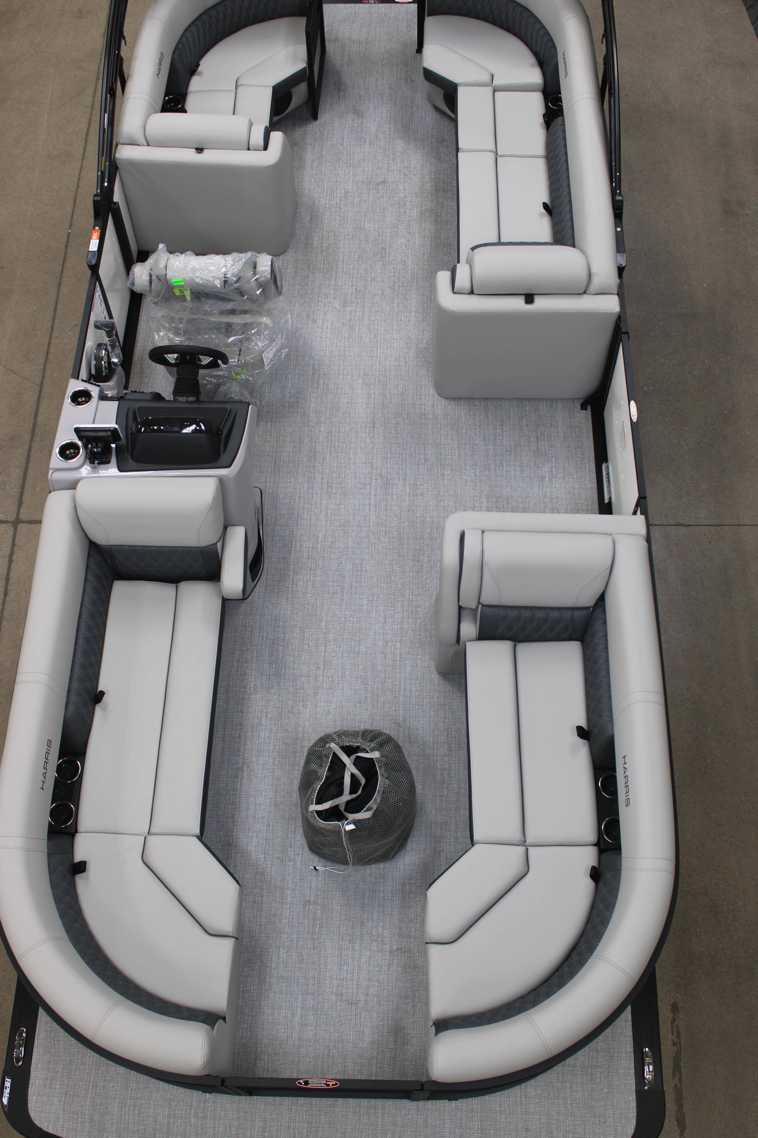 2026 Harris 230 Cruiser with CW floorplan and powered by a Mercury 115ELPT CT 4S!Factory Installed Options:Exterior- ceramic whiteInterior- Luxury tungstenBlack editionLuxe package225 chassisContour power bimini topLillipad easy step ladderStainless steel ski tow barUltra lux high back helm seatStone gray woven vinyl flooringWireless mobile phone chargerTilt steeringEagle fish finderWetsounds 400Stainless steel cupholdersLuxury sport woodgrain table