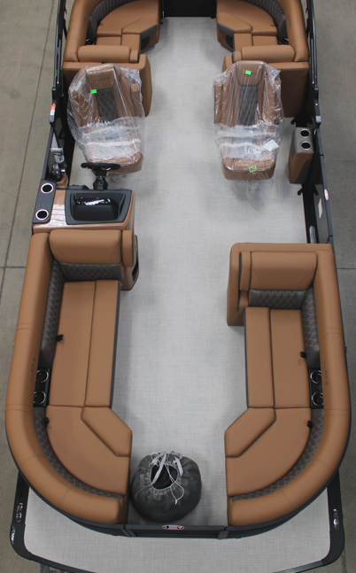 EditionUpgraded LUX Chestnut Brown UpholsteryAdjustable-Height Captain’s SeatPower Bimini TopSki Tow BarLillipad Ladder UpgradeSea Grass FlooringDepth GaugeWet Sounds Bluetooth StereoBattery Disconnect SwitchDocking LightsCourtesy LightsQuick-Release (QR) Fender SystemChaise-End Flip-Up TableRemovable Table EZ-Clip Mooring Cover Additional Details: The 230 CWDH is designed for versatility and relaxation, featuring a spacious