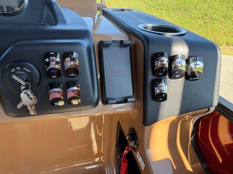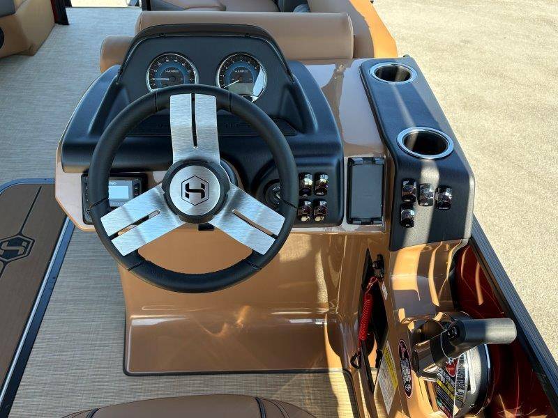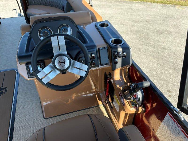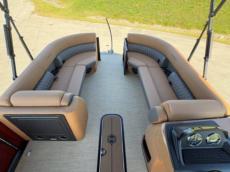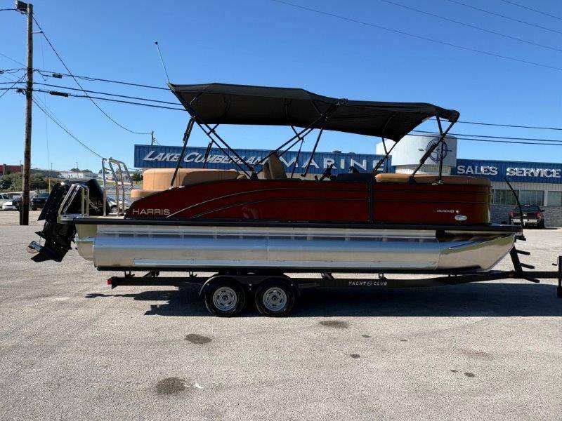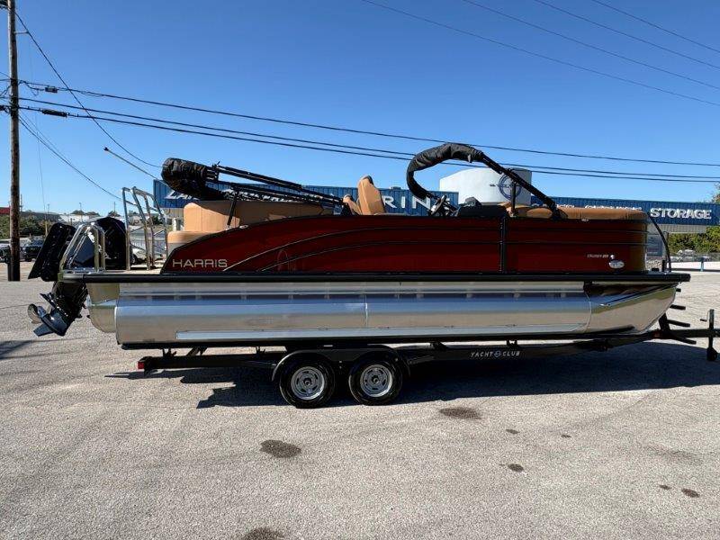 2026 Harris Cruiser 230 CWDH Key Standard Features: Construction • 24\" Inch Average On Center Placed • 25\" Diameter Tubes • Aluminum Extruded Crossmembers • Deck, Radius Bow • Stainless Steel Flip-up Cleats • 3/4\" 7-Ply Pressure Treated • Full-Length Pontoon Brackets • Safety Gates • Extended Rear Platform (11.675\") • Anodized Rubrail With Insert • Trailer Tow Eye • Quick Release Trailering Struts • Underdeck Wiring Protection System Performance • Standard 225 Chassis • Full Length Keel (3/8 Inch Thick) Floorplan • CW Floorplan - Center Walkthru Interior • Port Bow Chaise End Storage • Dune Interior Color • Full Desert Beige Seagrass Flooring • USB/USB-C Charging Ports Canvas • Mooring Cover Helm • 12 Volt DC Receptacle • Analog Gauges (Tach, Trim, & Fuel) Fence • Silver Fence Rails, Rubrail, Bimini • Black Sapphire Fence Panel Color Convenience • 10' Bimini (1.25\" Frame With SST • Direct Fuel Fill • Gate Floor Stops (Dealer Install) • 4 Step Stainless Steel Telescoping • Ultralux Helm Seat (High Back • Woodgrain Luxury Sport Table • Wheelchair Friendly Port Side Gate Stereo • Wet Sounds Stereo Factory Installed Options: • 200l Fourstroke Mech/pas(v6)4.8" 1.85 • ***luxe Package*** • Black Edition: Pwdr Coat Fence* • Cwdh Flrpln (cntr Walk W/std Dual Helm)* • Furniture, Luxury Chestnut Brown* • Primary Fence Color, Ruby Red Metallic • **Mercury Power Assist Steering (Verado)** • 2 Gauge Cable - 12' • 325 Chassis,3tubes 25"out/27"ctr W/strk&kl* • Bimini,Dbl-Blk-Na W/Lghtd/Pt/Arch-Blk Frame • Cap Tag: Three Tube 25">195 • Charger, Wireless Mobile Phone Holder • Chassis 3-25" Tubes W/storage & Ski Tow Bar • Convenience Package • Cover, In Floor Storage Lid Beige • Cupholders, Stainless Steel(CWDH Flrpn) • Cupholders, Stainless Steel* • Cwdh-lux Chestnut Brown • Deckboard .sch 5057 • Discount, Nap - 200hp Mech W/325 • Fence, CWDH Floorplan, Black Powder Coat •Flooring,(F12)Desert Beige Seagrass, Full • Hydraulic Hose, Verado(merc)pwr Asst 4'-22' • In Floor Storage* • Lighting, Courtesy • Primary Engine - Drop Ship • Rubrail Kit, 3 Tube Black • Seats, Dual Helm Ultra Lux High Back* • Seats, Dual U-lux Hiback Luxury Chest Brown • Side Closure, Helm 4 Switch Black • Ski Tow Bar, Stainless Steel 3 Tube • Speakers, Wetsounds 400 (cw,cwdh) • Table, Chaise End Flip-up* • Table, Chaise End Flip-up-black • Table, Woodgrain Luxury Sport (dlr Instl)* • Tube Protectant (metal Jacket) • Wetsounds 400*
