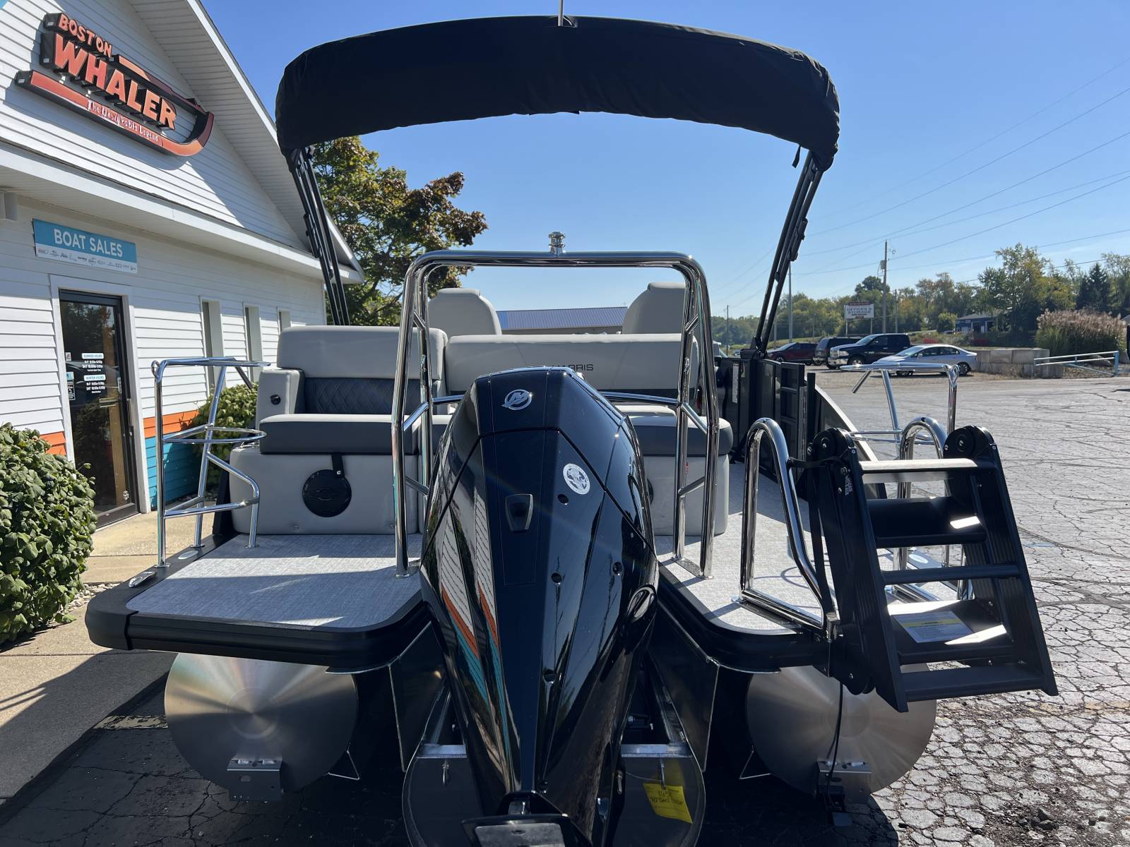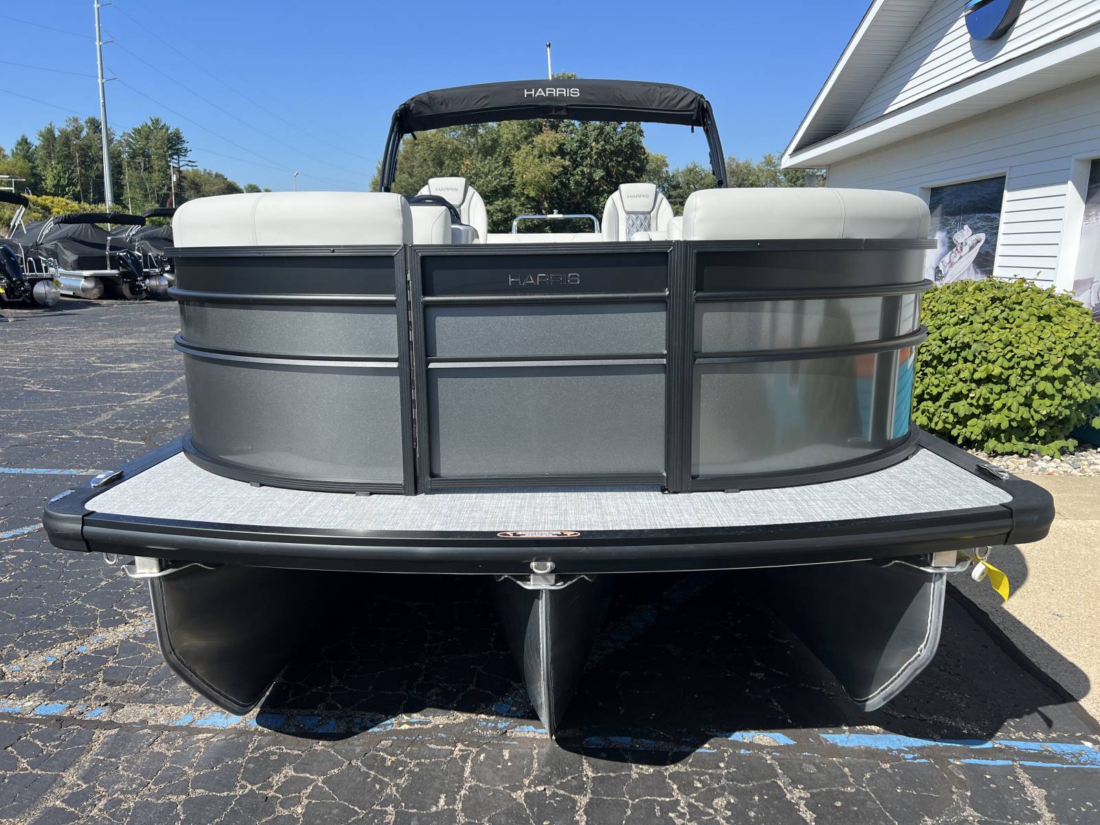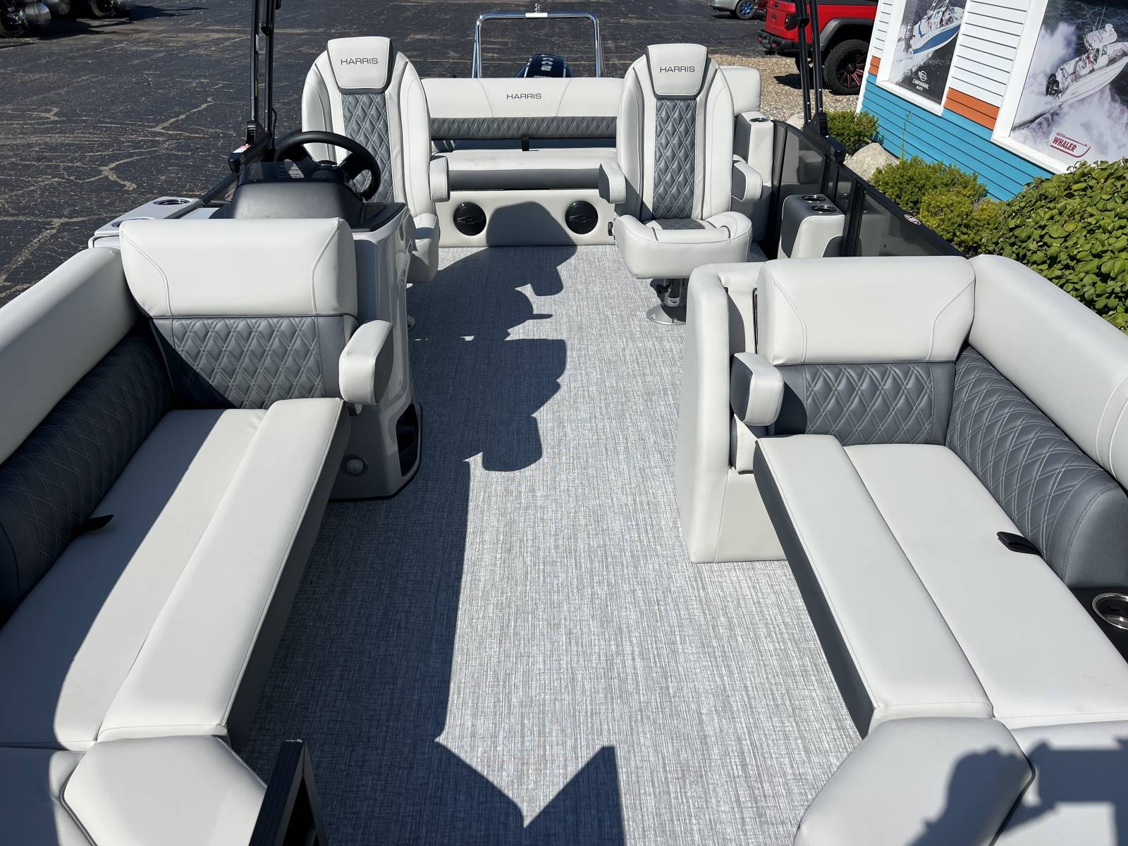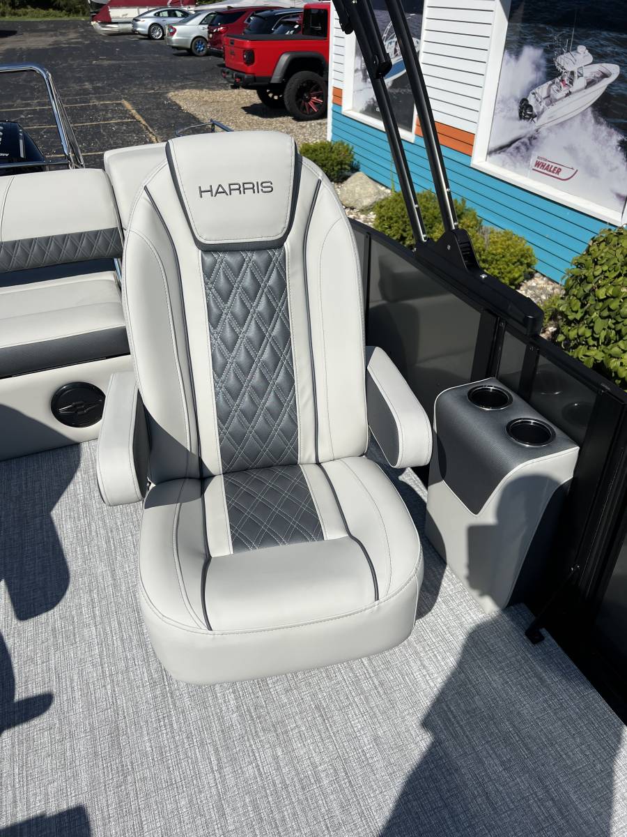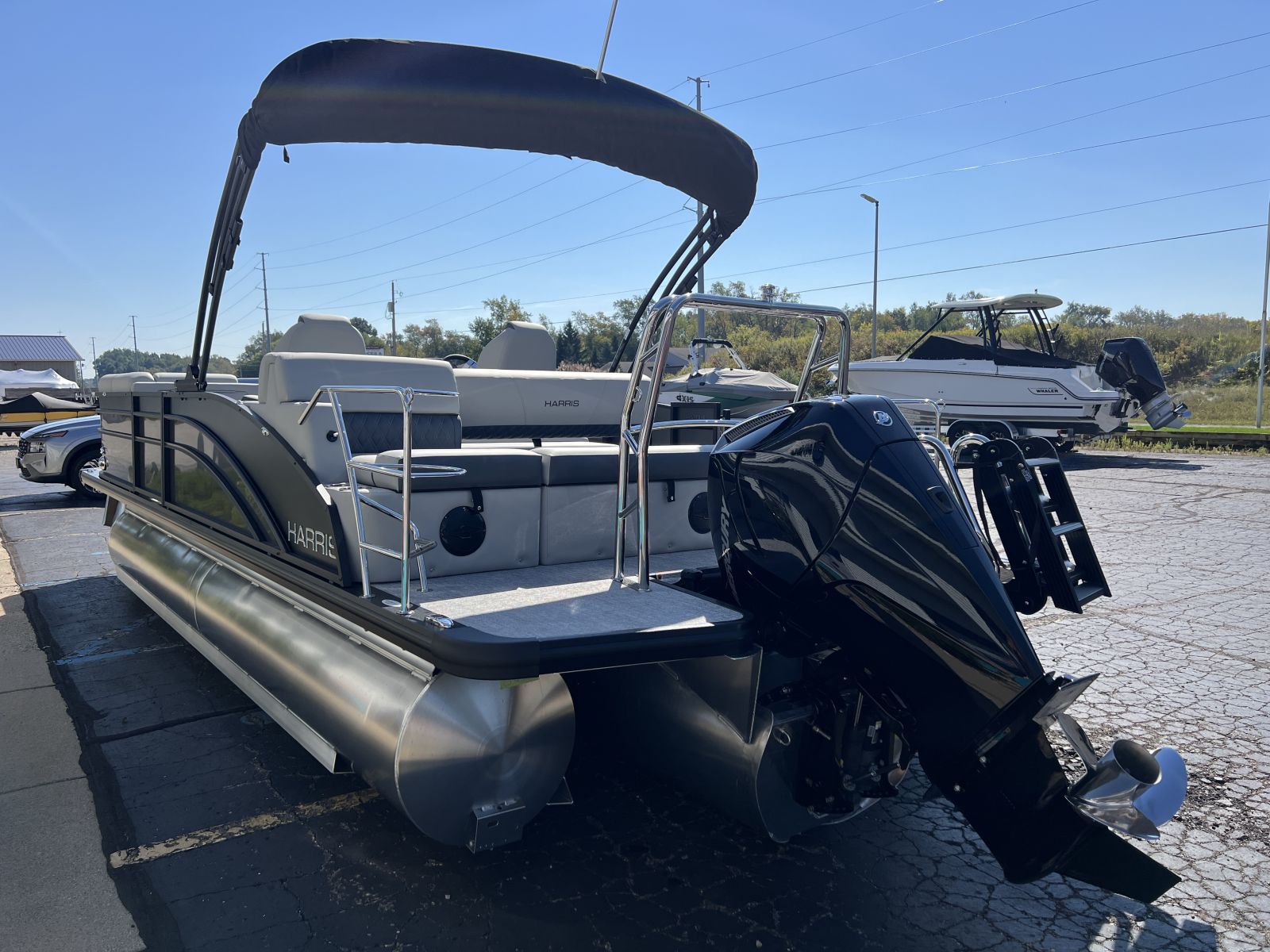 stability, strength, and a confident ride in all conditions.Notable Options Include:Mercury 200hp Engine Digital Throttle Power Assist SteeringRPM 325 Tritoon ChassisPower Bimini TopLillipad LadderSki Tow BarSeagrass FlooringWireless ChargingDepth GaugeWet Sounds Bluetooth AudioBattery Disconnect SwitchDocking LightsCourtesy LightingQuick-Release (QR) Fender SystemSafety RailingRemovable TableEZ-Clip Mooring CoverAdditional Details: The Harris Cruiser 230 SLDH is