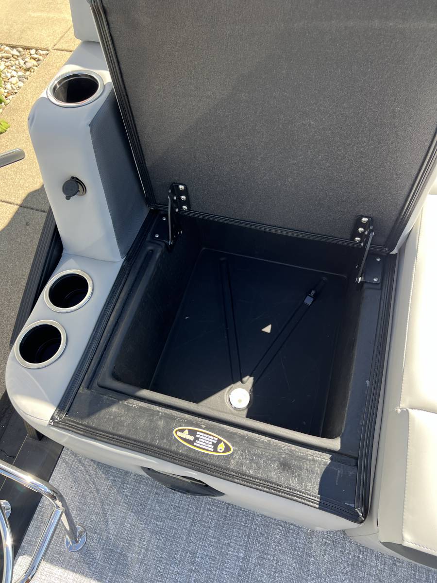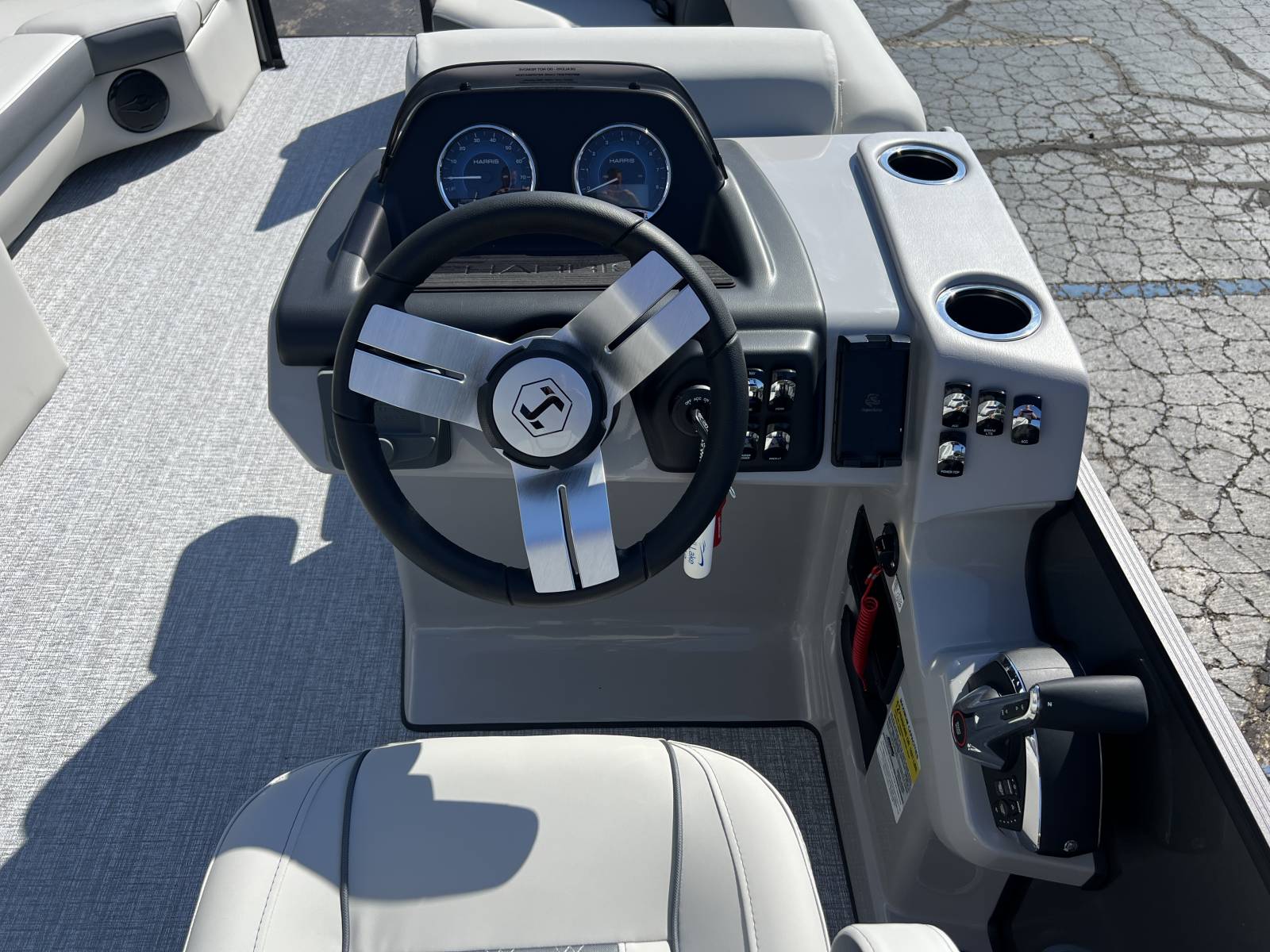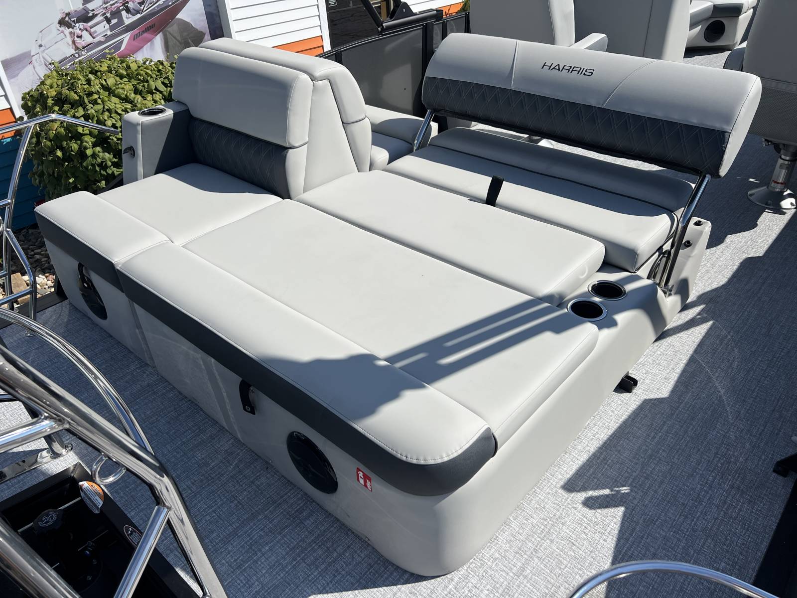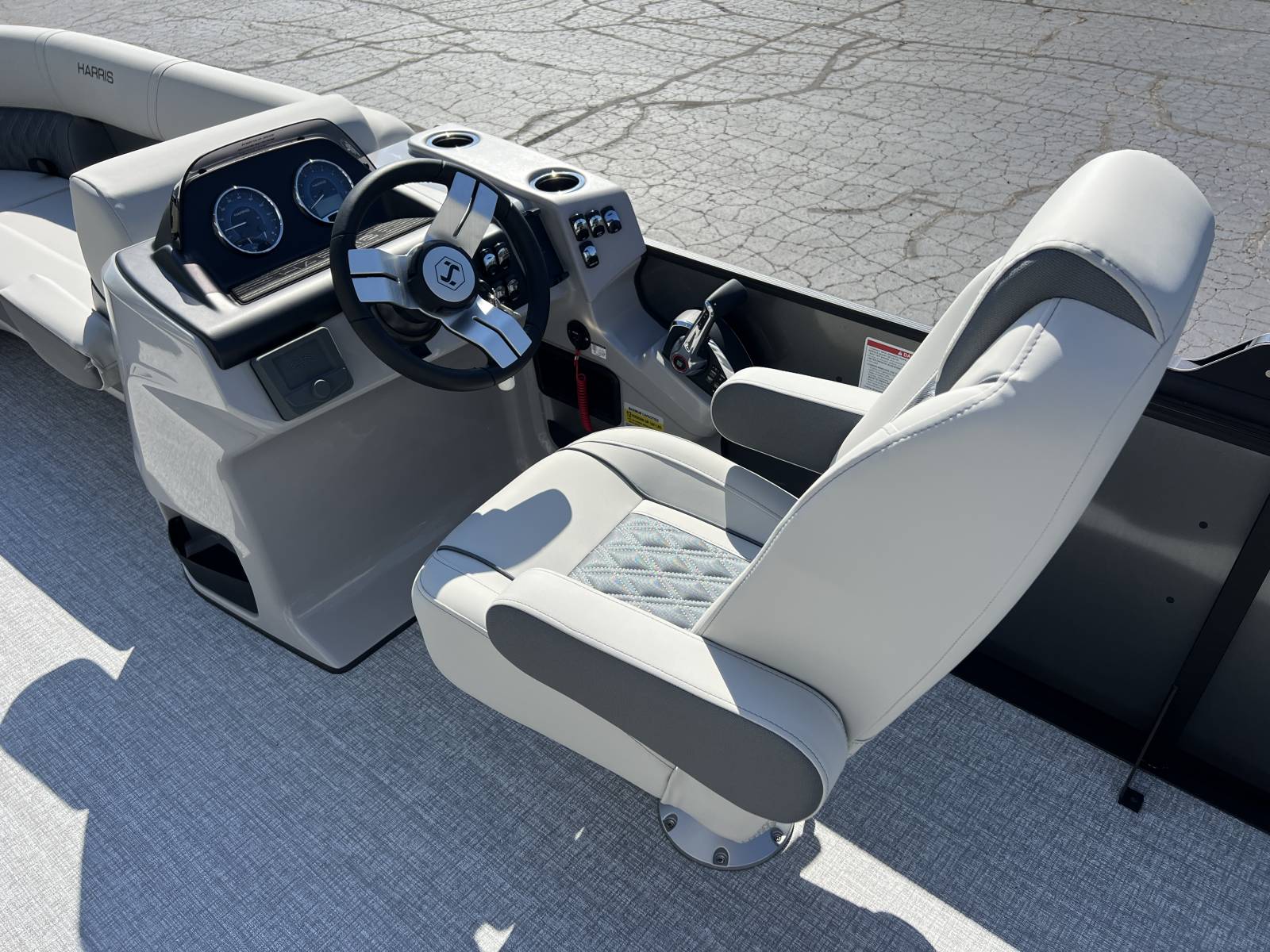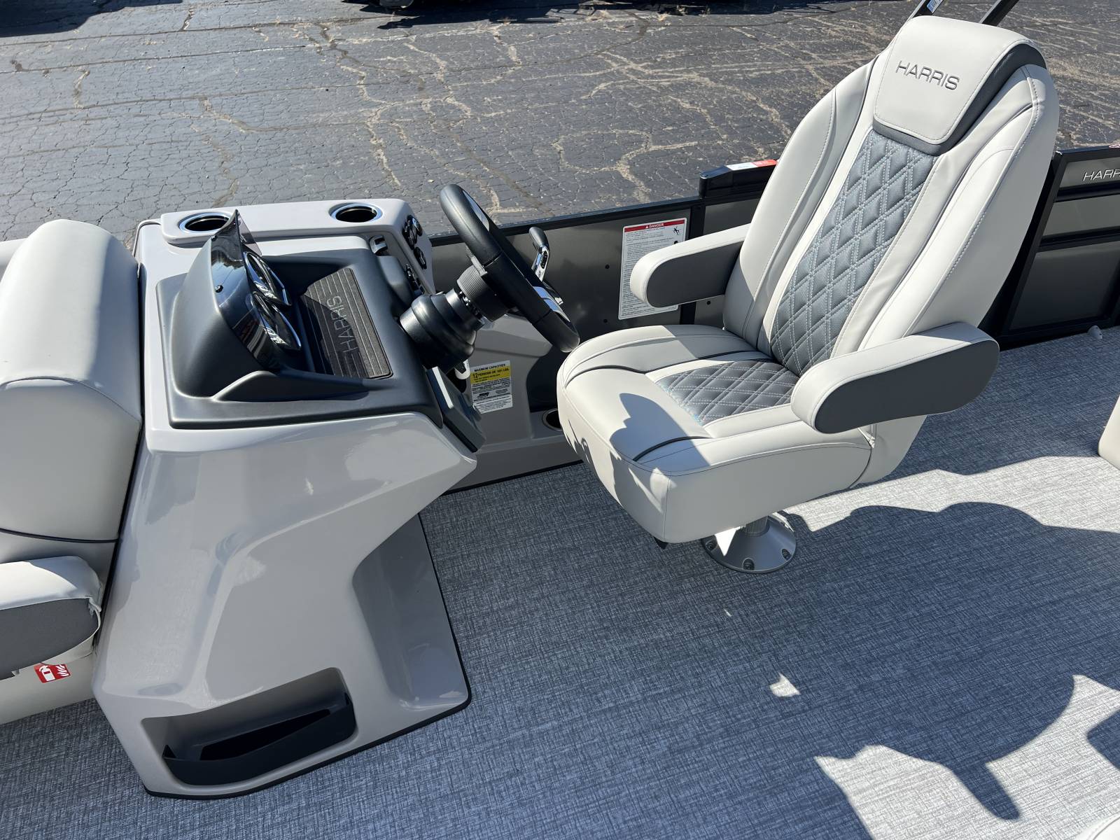 stability, strength, and a confident ride in all conditions.Notable Options Include:Mercury 200hp Engine Digital Throttle Power Assist SteeringRPM 325 Tritoon ChassisPower Bimini TopLillipad LadderSki Tow BarSeagrass FlooringWireless ChargingDepth GaugeWet Sounds Bluetooth AudioBattery Disconnect SwitchDocking LightsCourtesy LightingQuick-Release (QR) Fender SystemSafety RailingRemovable TableEZ-Clip Mooring CoverAdditional Details: The Harris Cruiser 230 SLDH is
