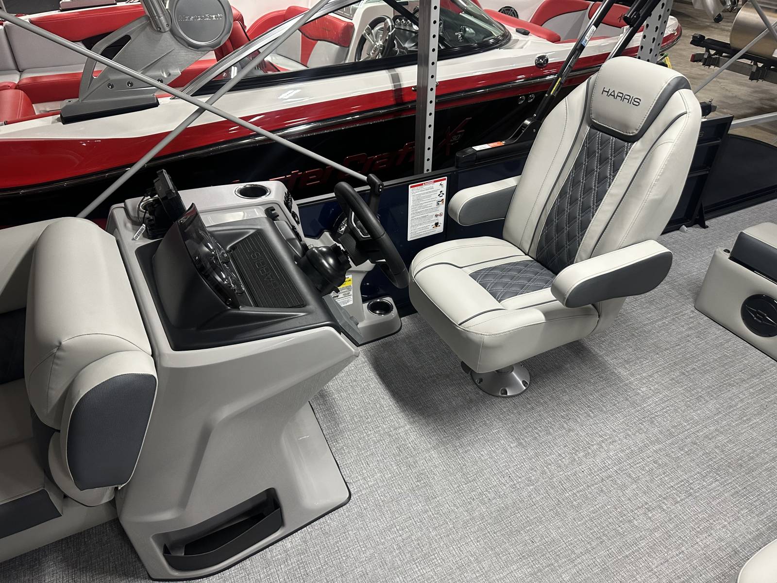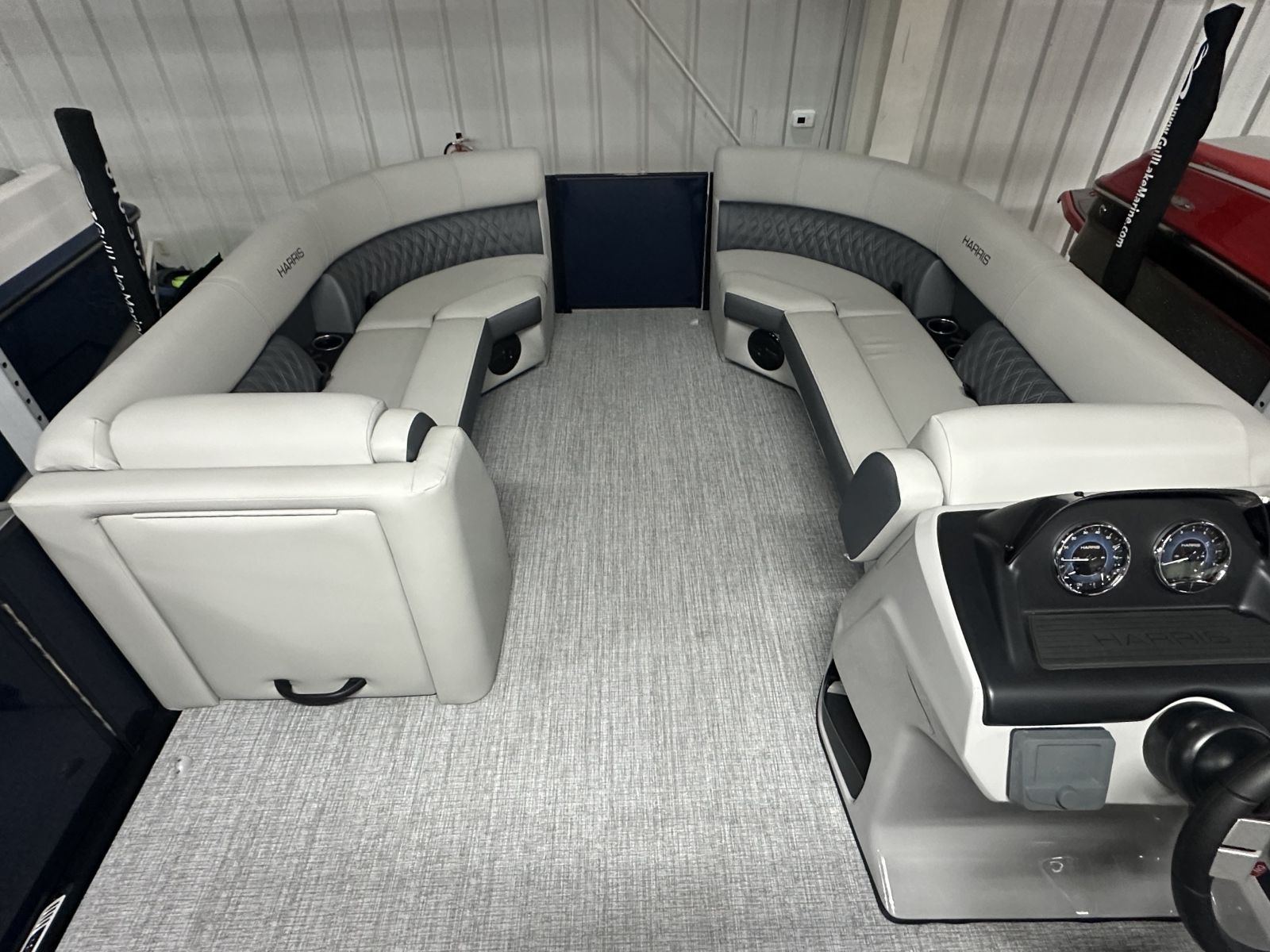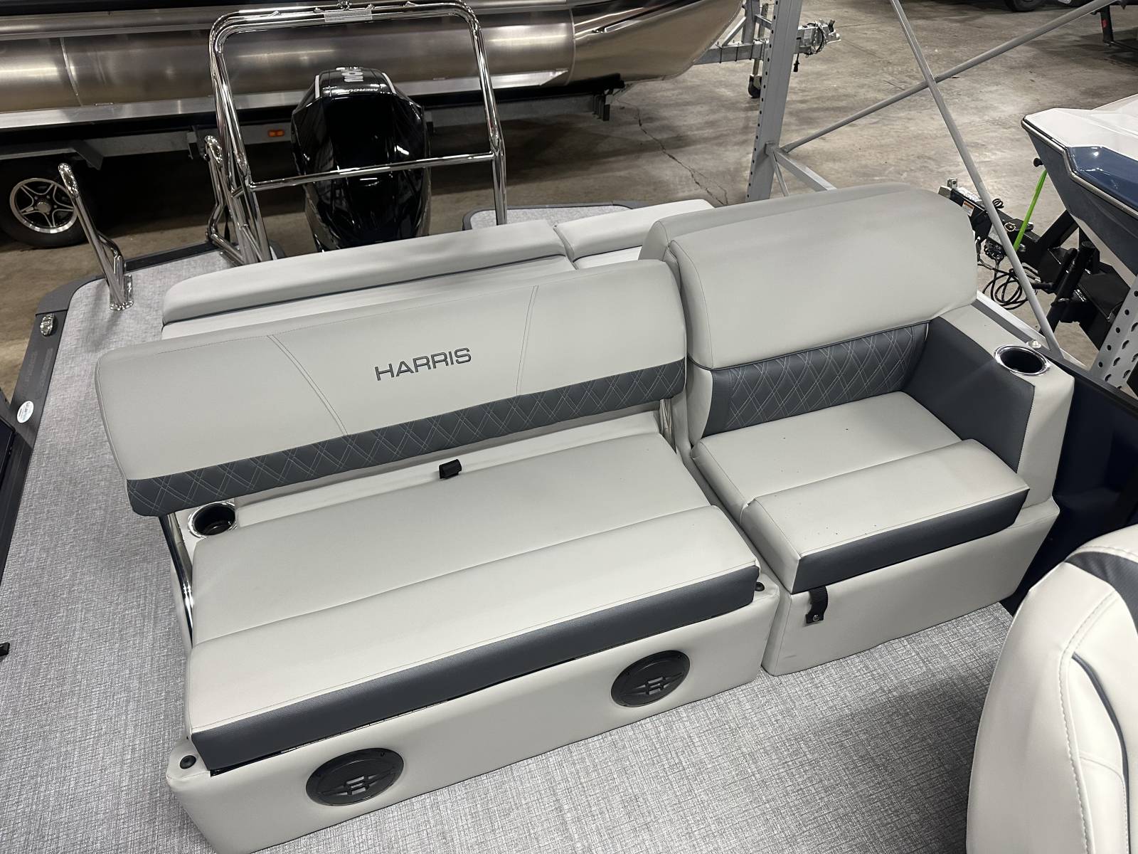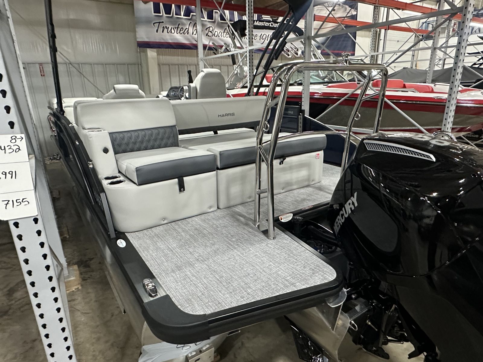 entertaining.Notable Options Include:Mercury 200hp EngineHarris RPM Tritoon ChassisPower Bimini TopSki Tow BarLillipad Ladder UpgradeAdjustable Height Captain’s SeatWireless Phone ChargerFishfinderWet Sounds Stereo & SpeakersStainless Steel CupholdersDocking LightsQuick-Release (QR) Fender SystemAmerican FlagRemovable TableEZ-Clip Mooring CoverAdditional Details: