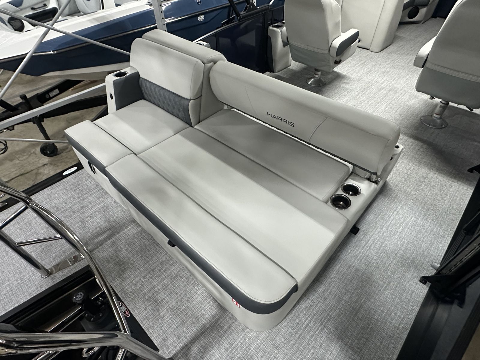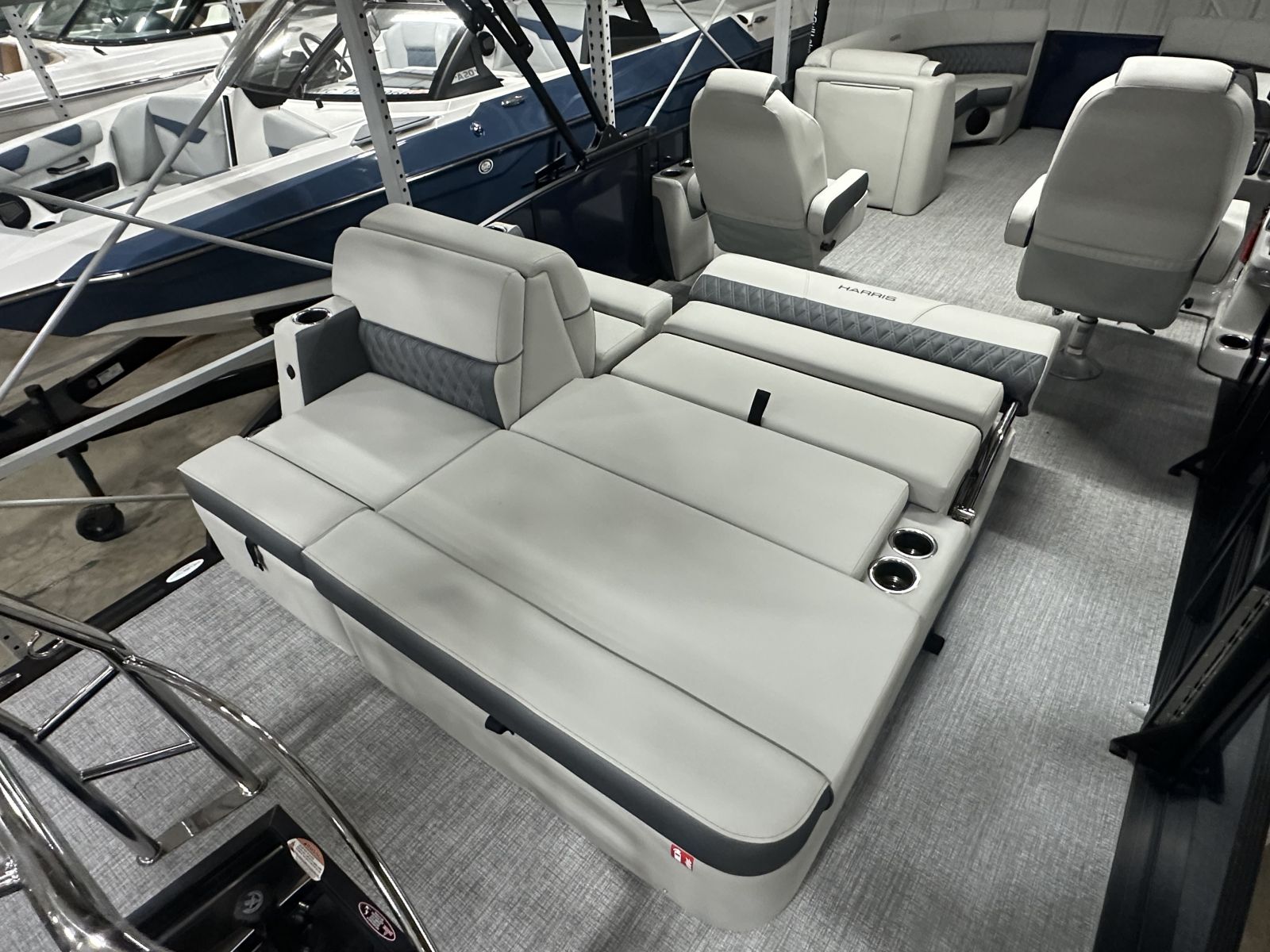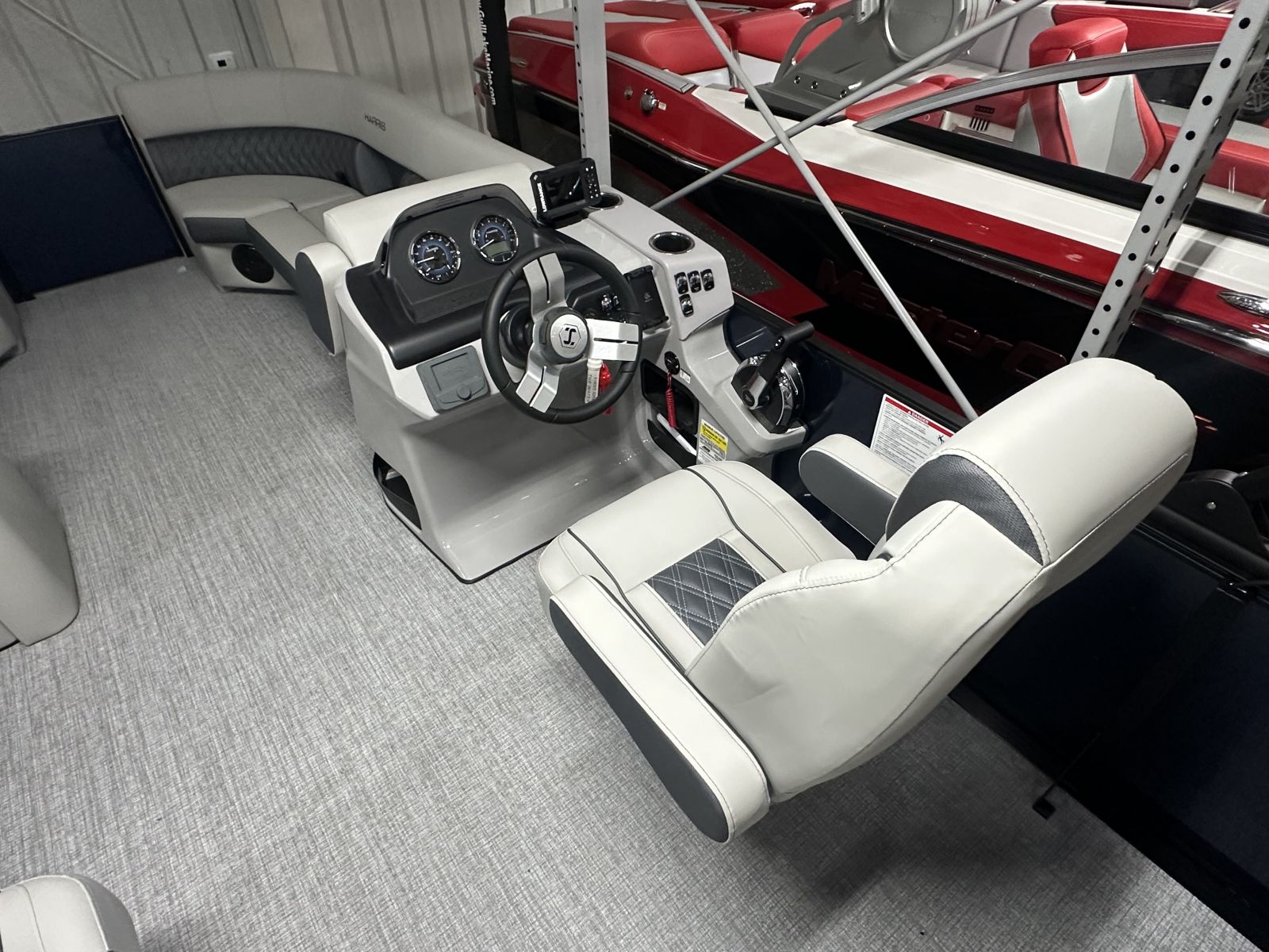 this tritoon delivers a bold, modern look. Step inside to enjoy the upgraded