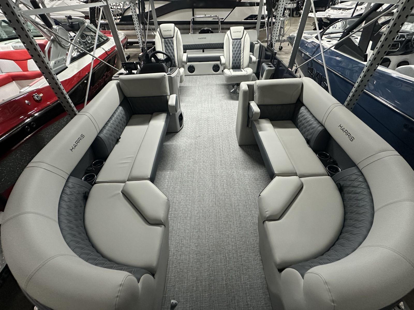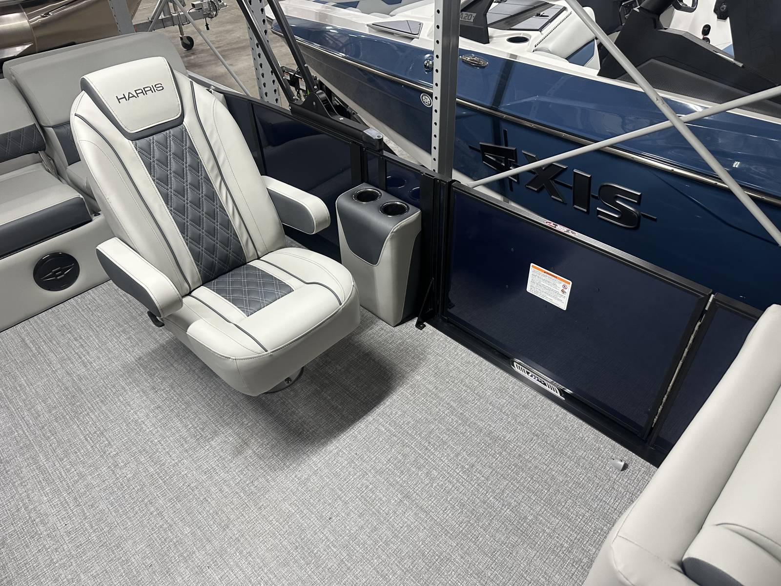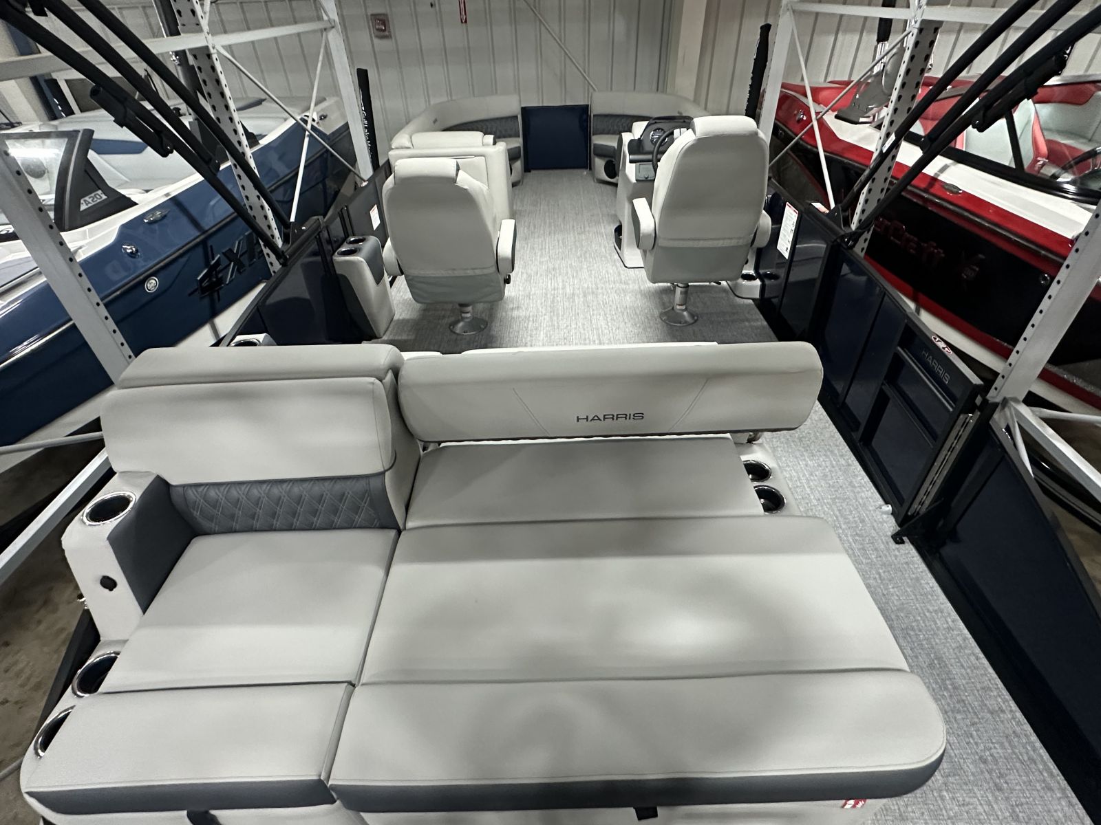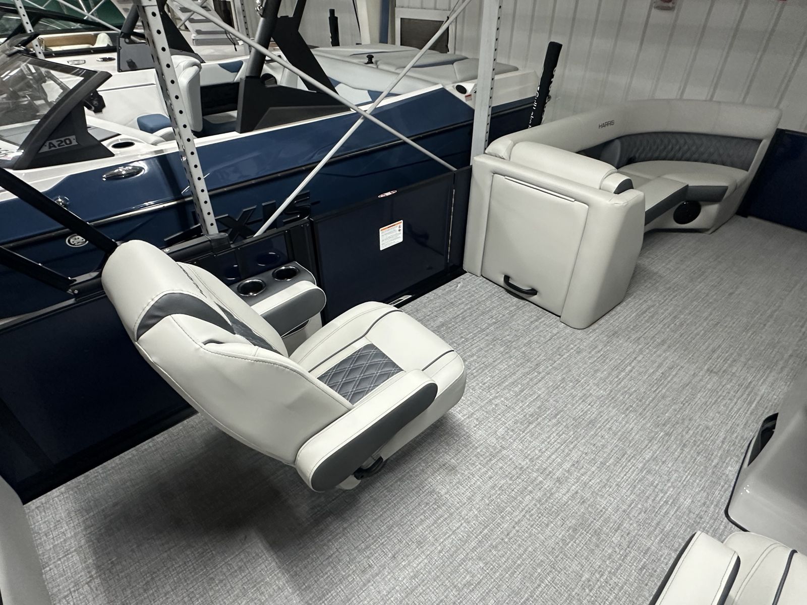 this tritoon delivers a bold, modern look. Step inside to enjoy the upgraded