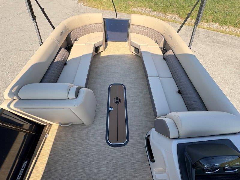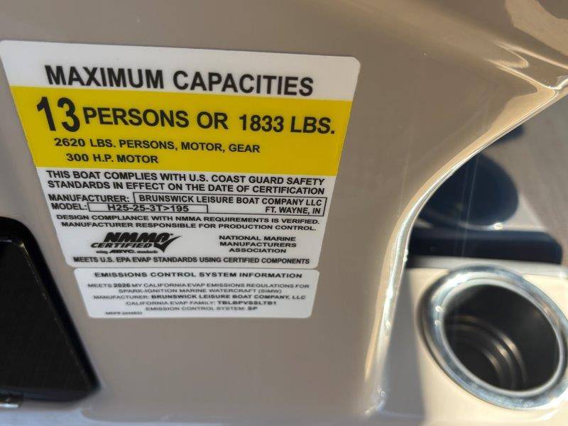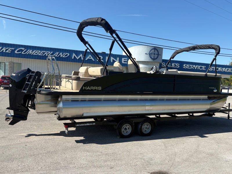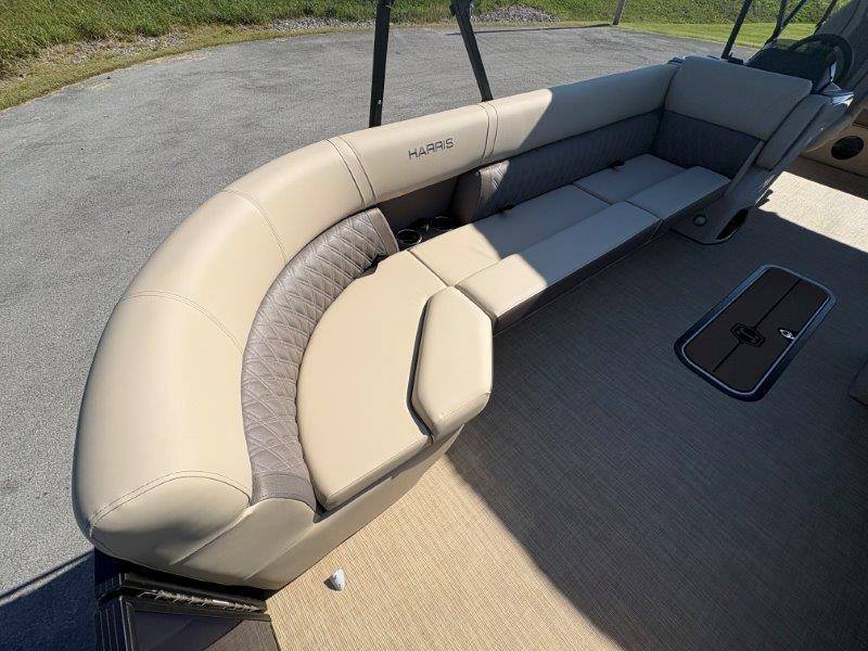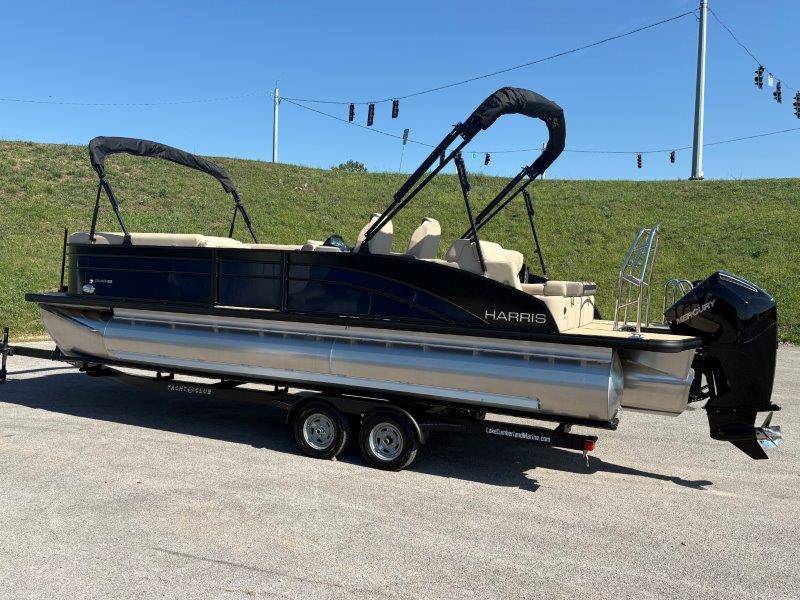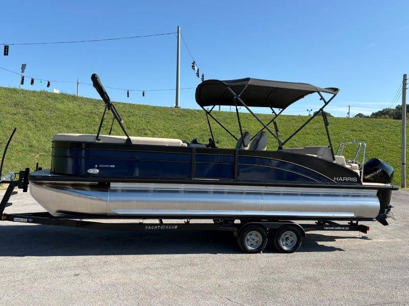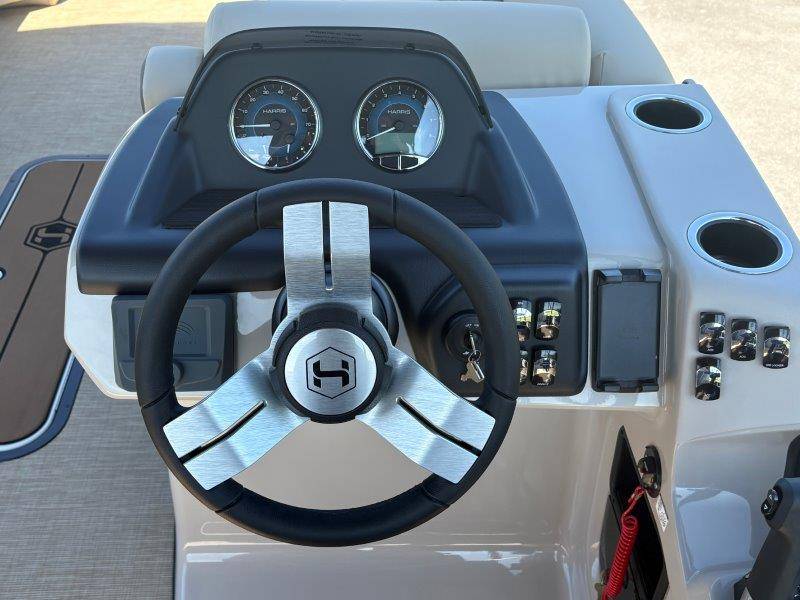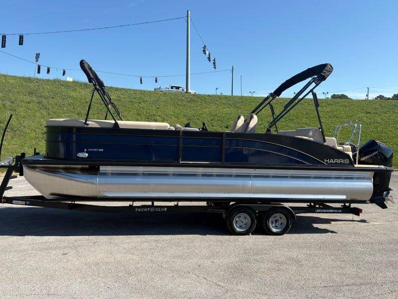 2026 Harris Cruiser 250 SLDH Key Standard Features: Construction • 24\" Average On Center Placed • 25\" Diameter Tubes • Aluminum Extruded Crossmembers • Deck, Radius Bow • Stainless Steel Flip-up Cleats • 3/4\" 7-Ply Pressure Treated • Full-Length Pontoon Brackets • Safety Gates • Extended Rear Platform (11.675\") • Anodized Rubrail With Insert • Trailer Tow Eye • Quick Release Trailering Struts • Underdeck Wiring Protection System Performance • Standard 225 Chassis (25\" • Full Length Keel (3/8 Inch Thick) Floorplan • CW Floorplan - Center Walkthru Interior • Port Bow Chaise End Storage • Dune Interior Color • Full Desert Beige Seagrass Flooring • USB/USB-C Charging Ports Canvas • Mooring Cover Helm • 12 Volt DC Receptacle • Analog Gauges (Tach, Trim, & Fuel) Fence • Silver Fence Rails, Rubrail, Bimini • Black Sapphire Fence Panel Color Convenience • 10' Bimini (1.25\" Frame With SST • Direct Fuel Fill • Gate Floor Stops (Dealer Install) • 4 Step Stainless Steel Telescoping • Ultralux Helm Seat • Woodgrain Luxury Sport Table • Wheelchair Friendly Port Side Gate Stereo • Wet Sounds Stereo Factory Installed Options: • 200l Fourstroke Mech/pas(v6)4.8" 1.85 • ***luxe Package*** • Black Edition: Pwdr Coat Fence* • Black Sapphire Accent • Furniture, Luxury Dune* • Primary Fence Color, Midnight Blue Metallic • Sldh Flrpln (single Rfl W/std Dual Helm)* • **Mercury Power Assist Steering (Verado)** • 2 Gauge Cable - 15' • 325 Chassis,3tubes 25"out/27"ctr W/strk&kl* • Battery Onshr Chrg Kit Swap Cs,sl,sldh Flpn • Bimini,Dbl-Blk-Na W/Lghtd/Pt/Arch-Blk Frame • Cap Tag: Three Tube 25">195 • Charger, Wireless Mobile Phone Holder • Chassis 3-25" Tubes W/storage & Ski Tow Bar • Convenience Package • Cover, In Floor Storage Lid Beige • Cupholders, Stainless Steel(sldh Flrpn) • Cupholders, Stainless Steel* • Deckboard .sch 5078 • Discount, Nap - 200hp Mech W/325 Fence, Sl/dh Floorplan, Black Powder Coat • Flooring,(F12)Desert Beige Seagrass, Full • Hydraulic Hose, Verado(merc)pwr Asst 4'-22' • In Floor Storage* • Lighting, Courtesy • Primary Engine - Drop Ship • Rubrail Kit, 3 Tube Black • Seats, Dual Helm Ultra Lux High Back* • Seats, Dual U-lux Hiback Luxury Dune • Side Closure, Helm 4 Switch Dune • Ski Tow Bar, Stainless Steel 3 Tube • Sldh-lux Dune • Speakers, Wetsounds 400 (cs,sl,sldh) • Table, Woodgrain Luxury Sport (dlr Instl)* • Tube Protectant (metal Jacket) • Wetsounds 400*
