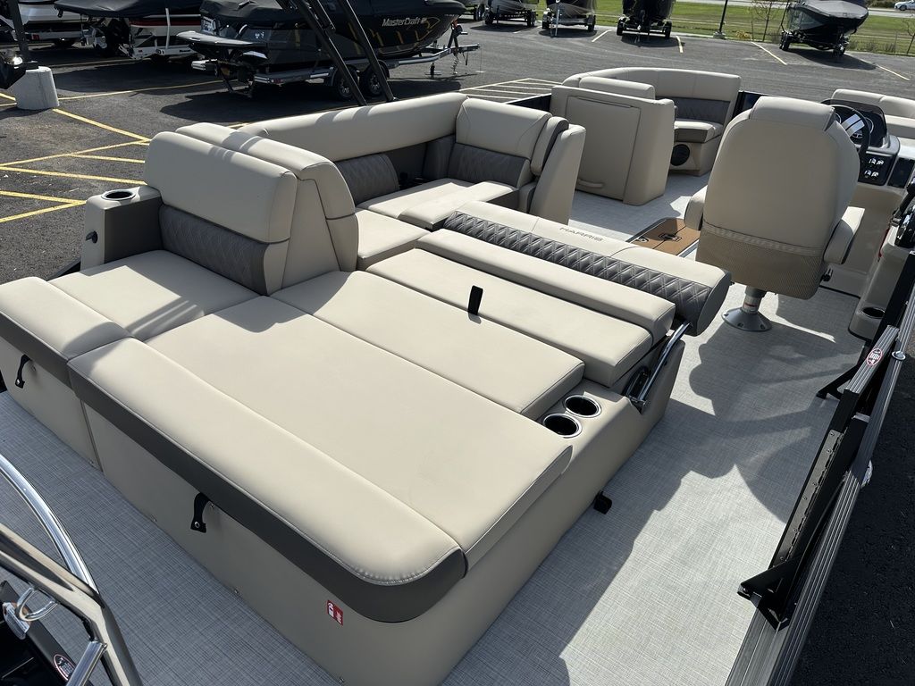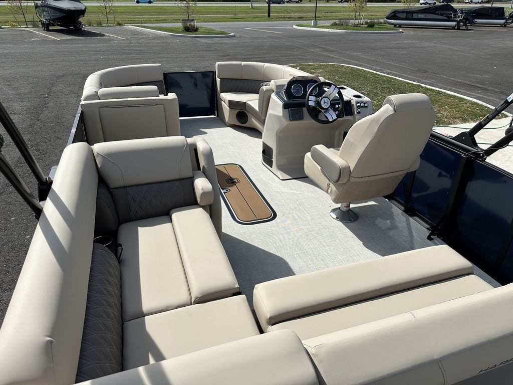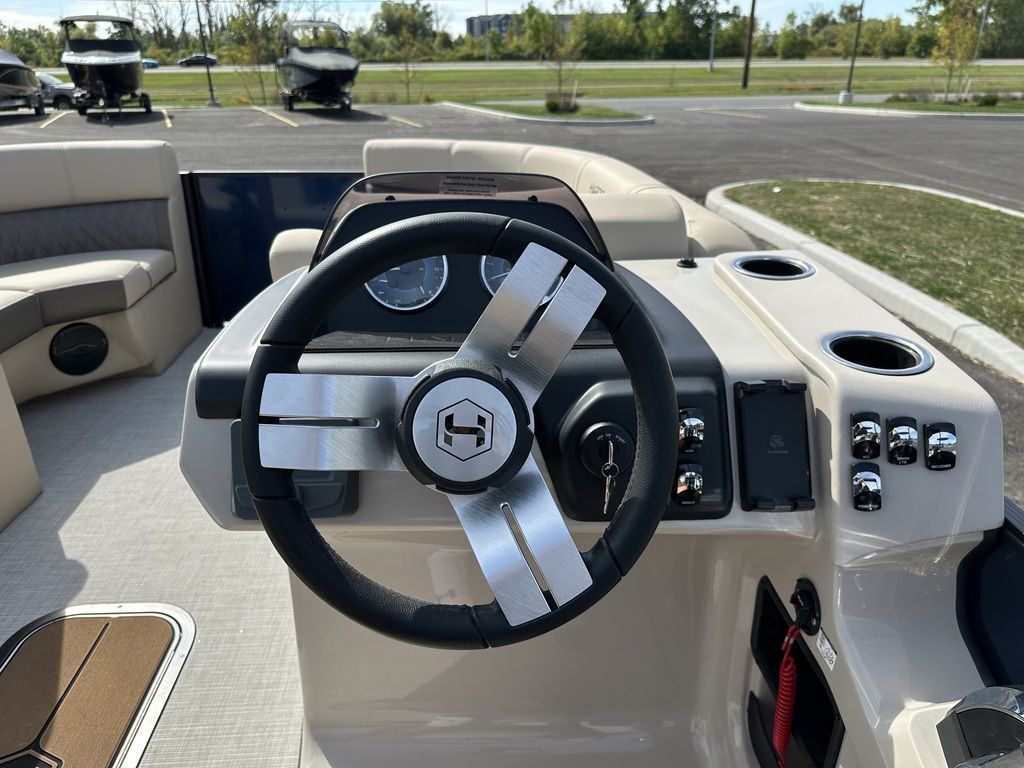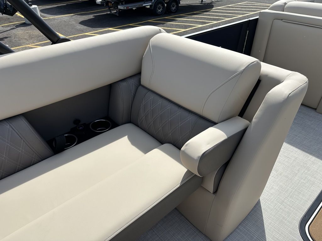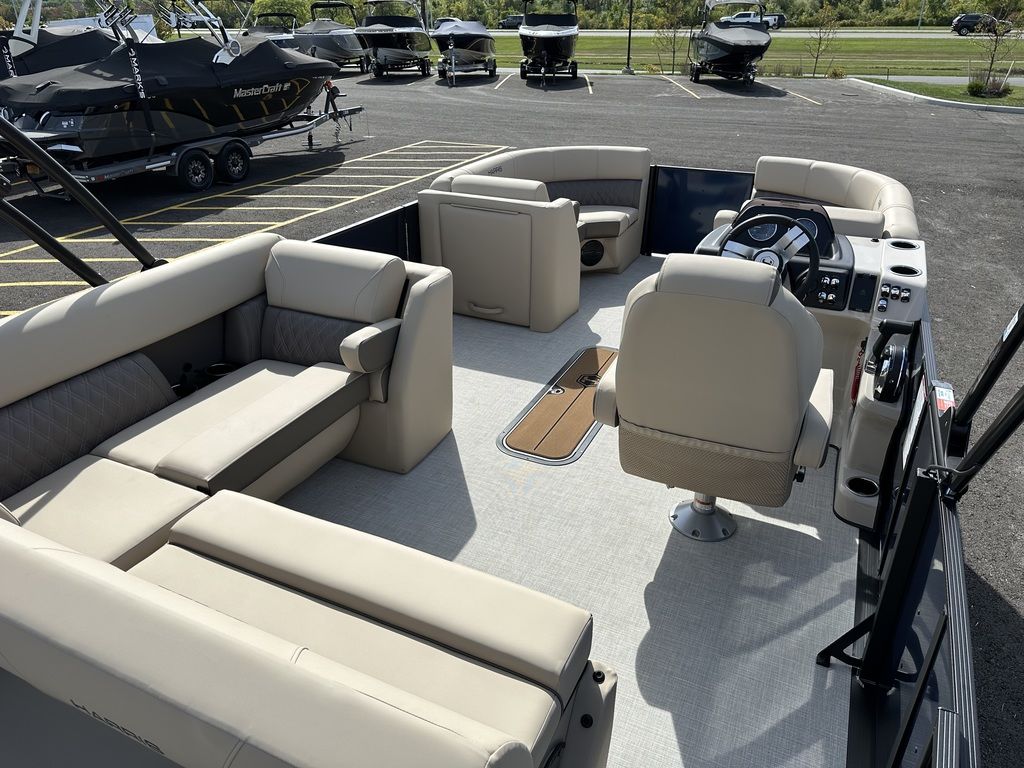ENHANCEDTake to the water on a craft built with value in mind that also includes more than you might expect, including a new 190 (19-foot) length, ultra-soft yet extremely durably vinyl upholstery, a reclining helm chair, and standard charging station. Personalizing your pontoon for watersports or fishing is simple—and optional performance packages give you better control on rough water.