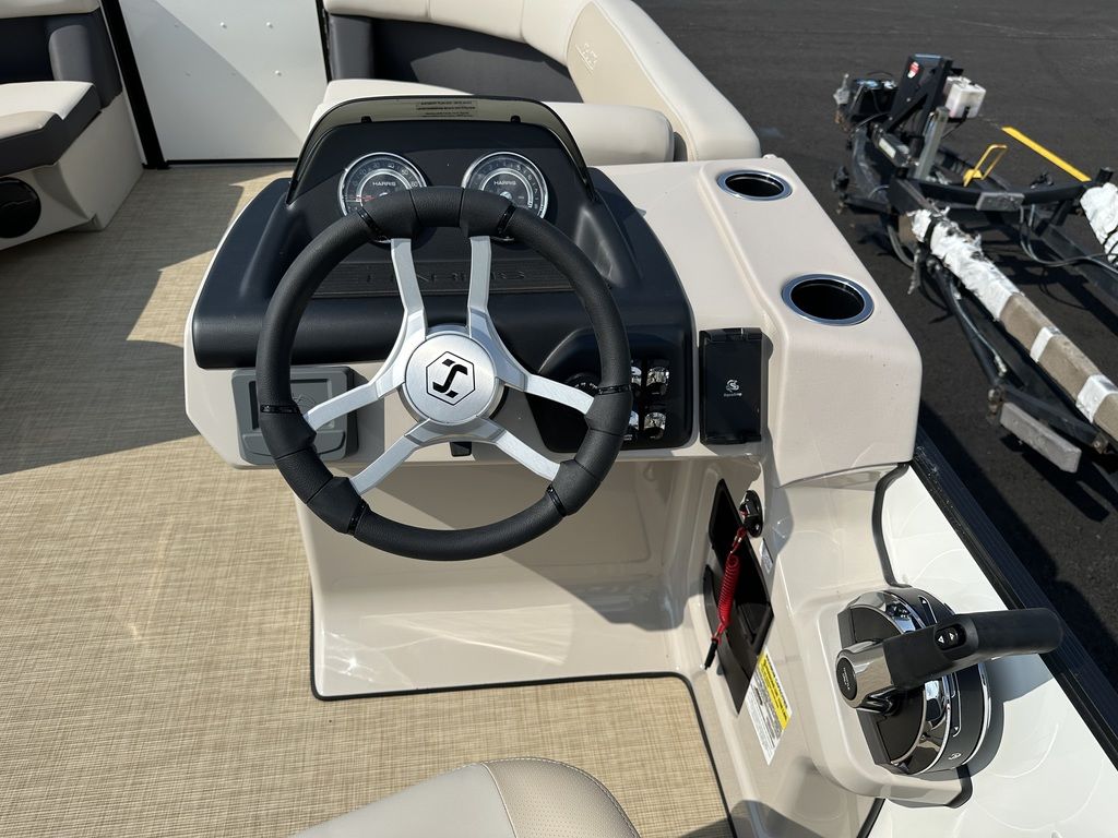 ENHANCED FEATURESTake to the water on a craft built with value in mind that also includes more than you might expect, including a new 190 (19-foot) length, ultra-soft yet extremely durably vinyl upholstery, a reclining helm chair, and standard charging station. Personalizing your pontoon for watersports or fishing is simple—and optional performance packages give you better control on rough water.