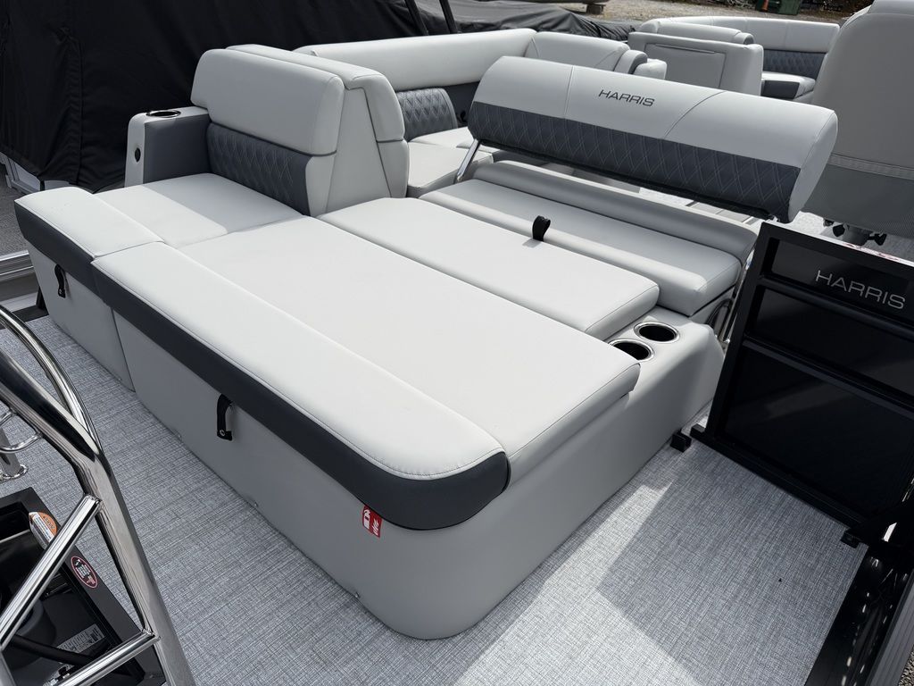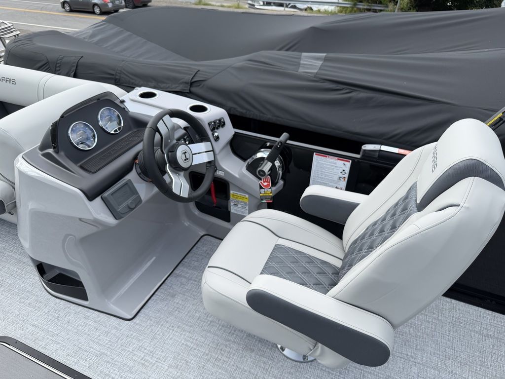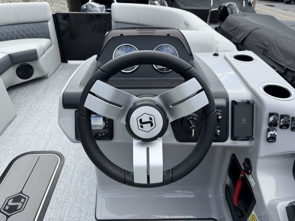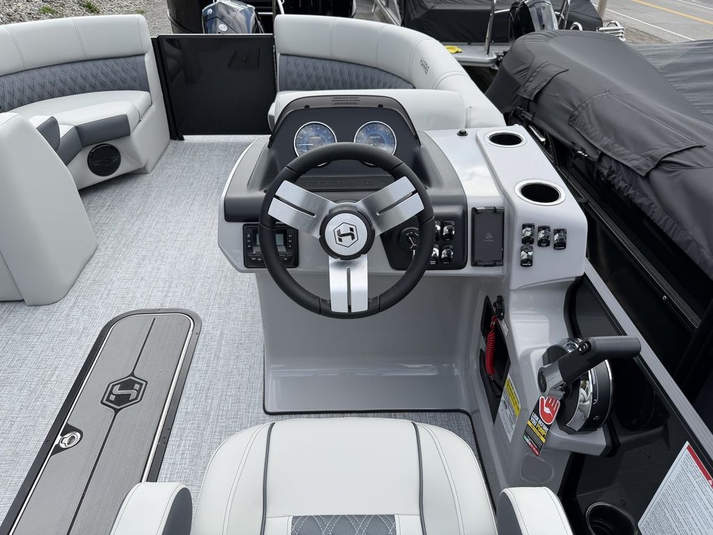 ENHANCEDTake to the water on a craft built with value in mind that also includes more than you might expect, including a new 190 (19-foot) length, ultra-soft yet extremely durably vinyl upholstery, a reclining helm chair, and standard charging station. Personalizing your pontoon for watersports or fishing is simple—and optional performance packages give you better control on rough water.