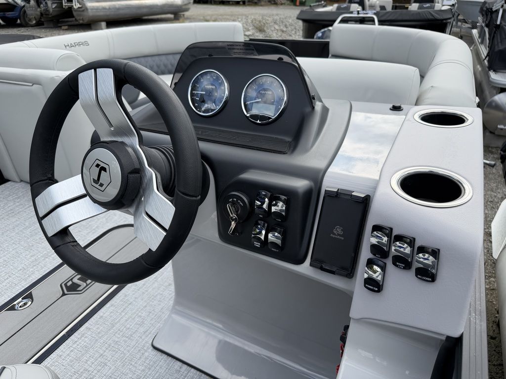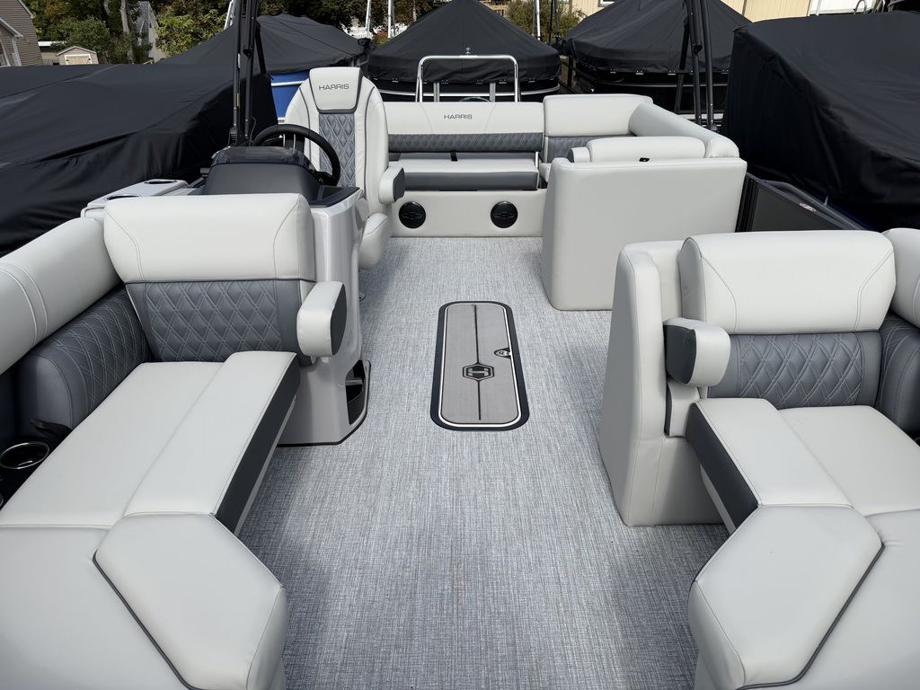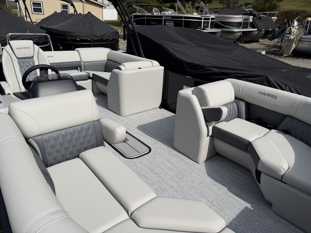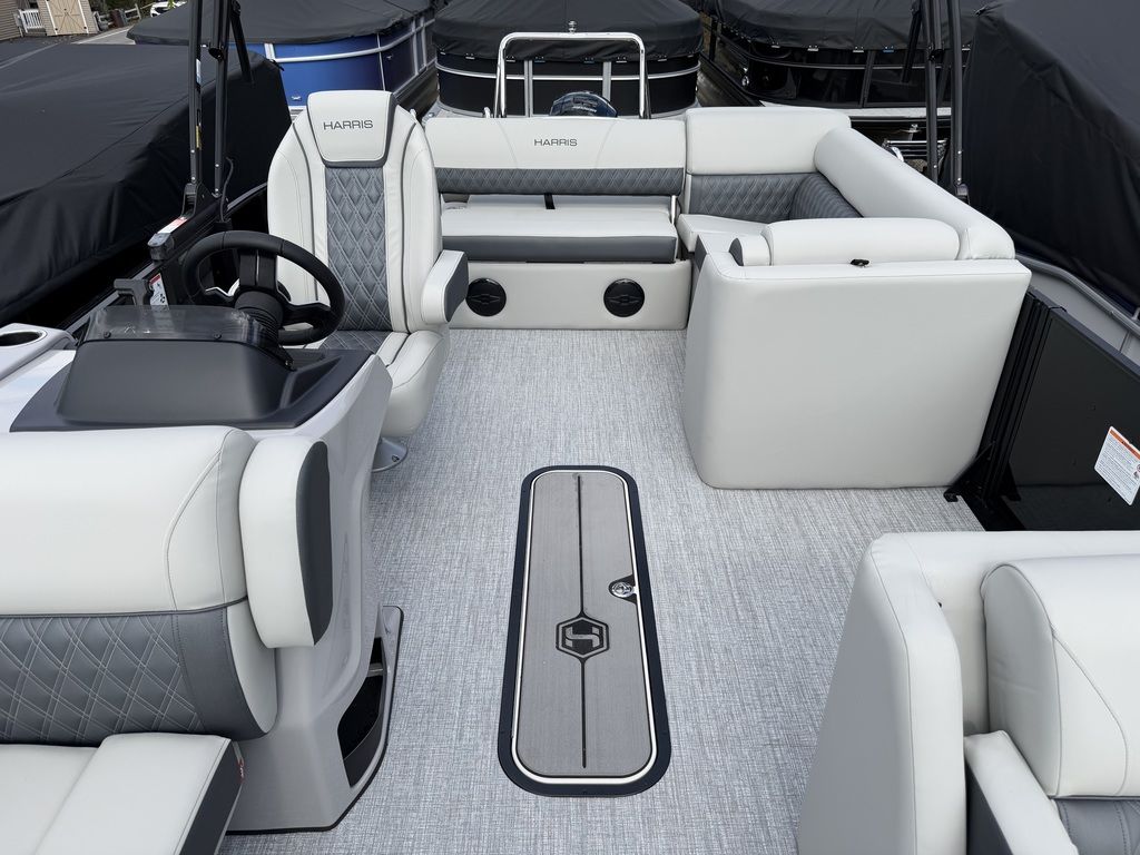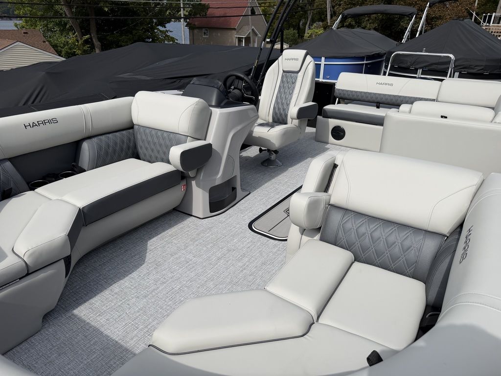 ENHANCEDTake to the water on a craft built with value in mind that also includes more than you might expect, including a new 190 (19-foot) length, ultra-soft yet extremely durably vinyl upholstery, a reclining helm chair, and standard charging station. Personalizing your pontoon for watersports or fishing is simple—and optional performance packages give you better control on rough water.