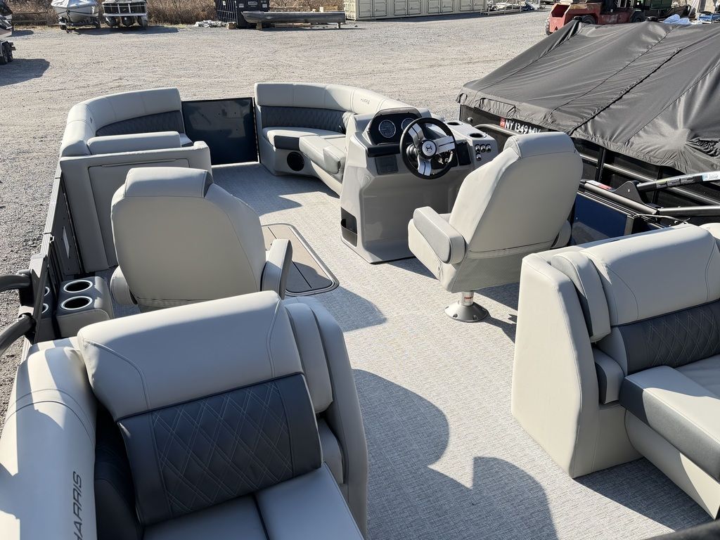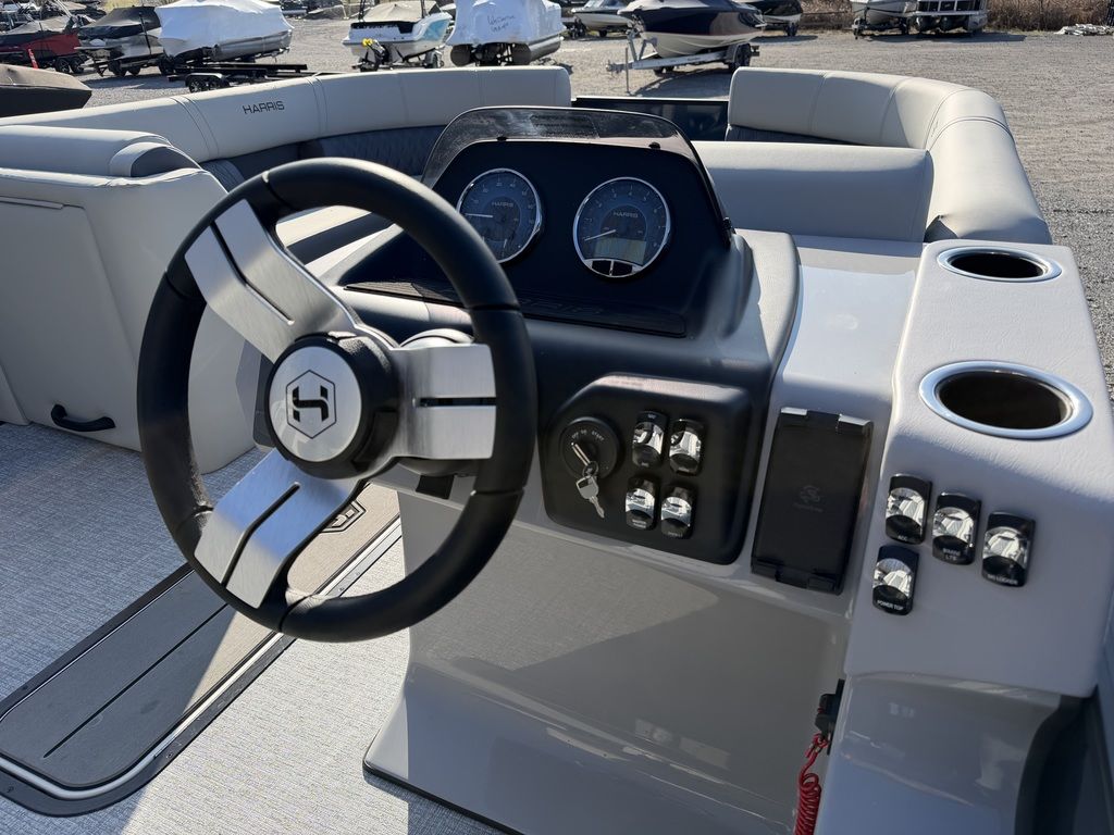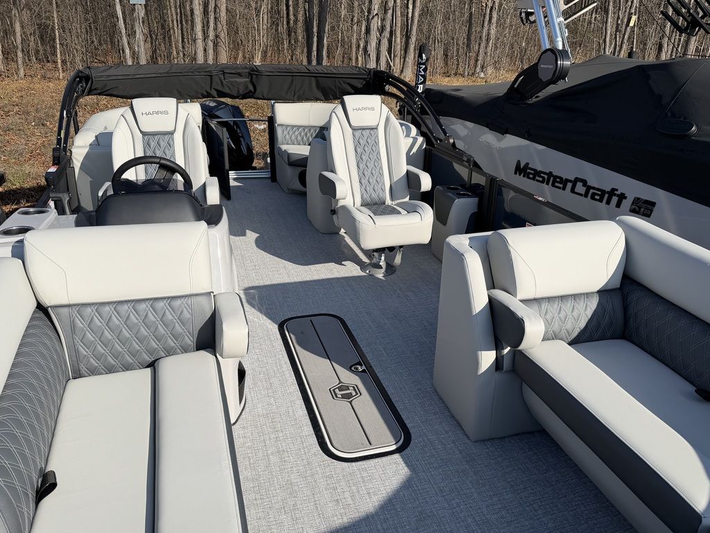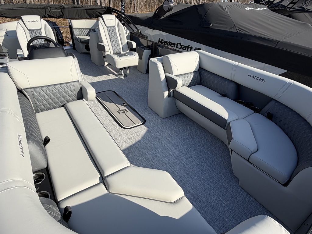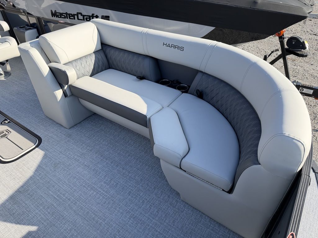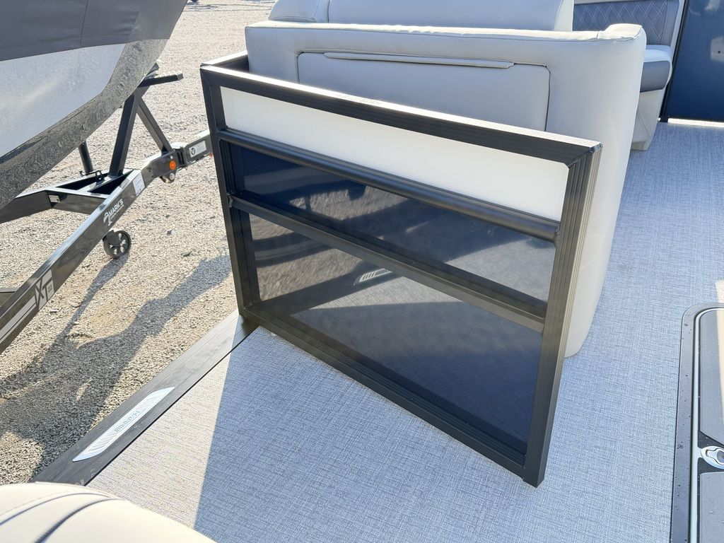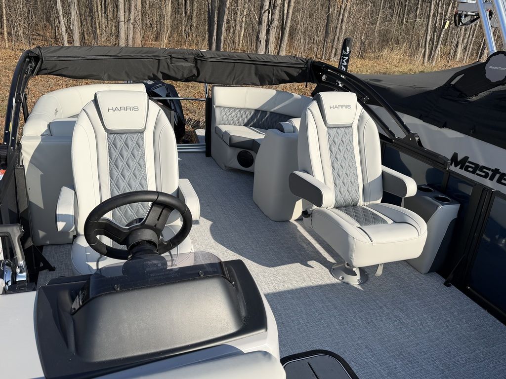 ENHANCEDTake to the water on a craft built with value in mind that also includes more than you might expect, including a new 190 (19-foot) length, ultra-soft yet extremely durably vinyl upholstery, a reclining helm chair, and standard charging station. Personalizing your pontoon for watersports or fishing is simple—and optional performance packages give you better control on rough water.