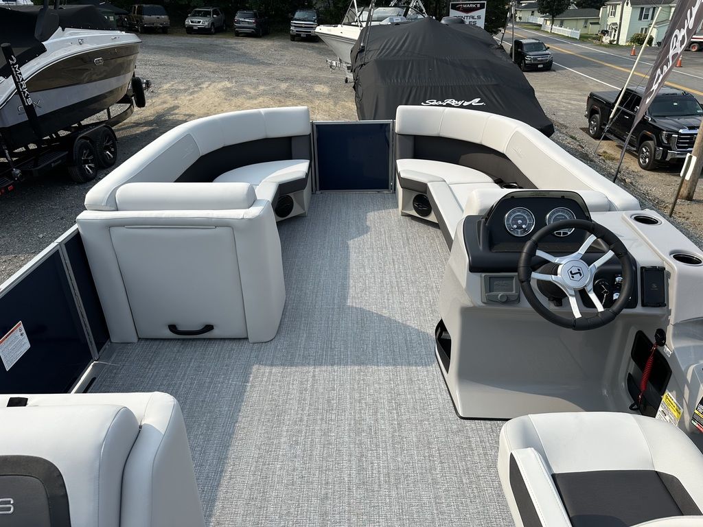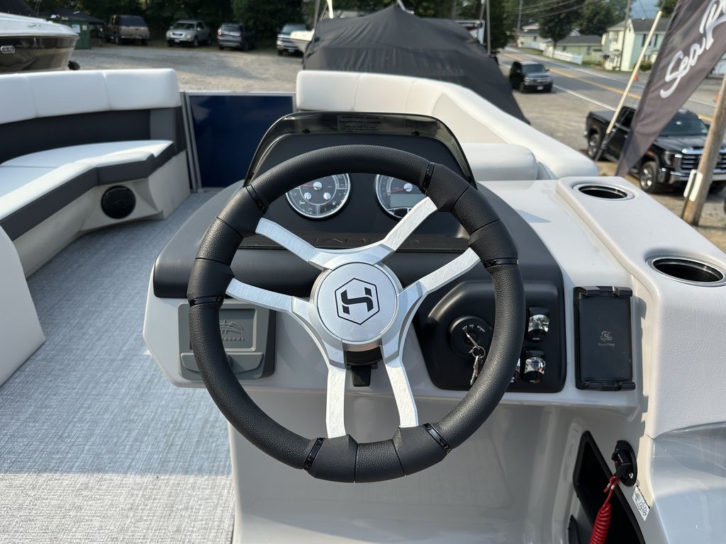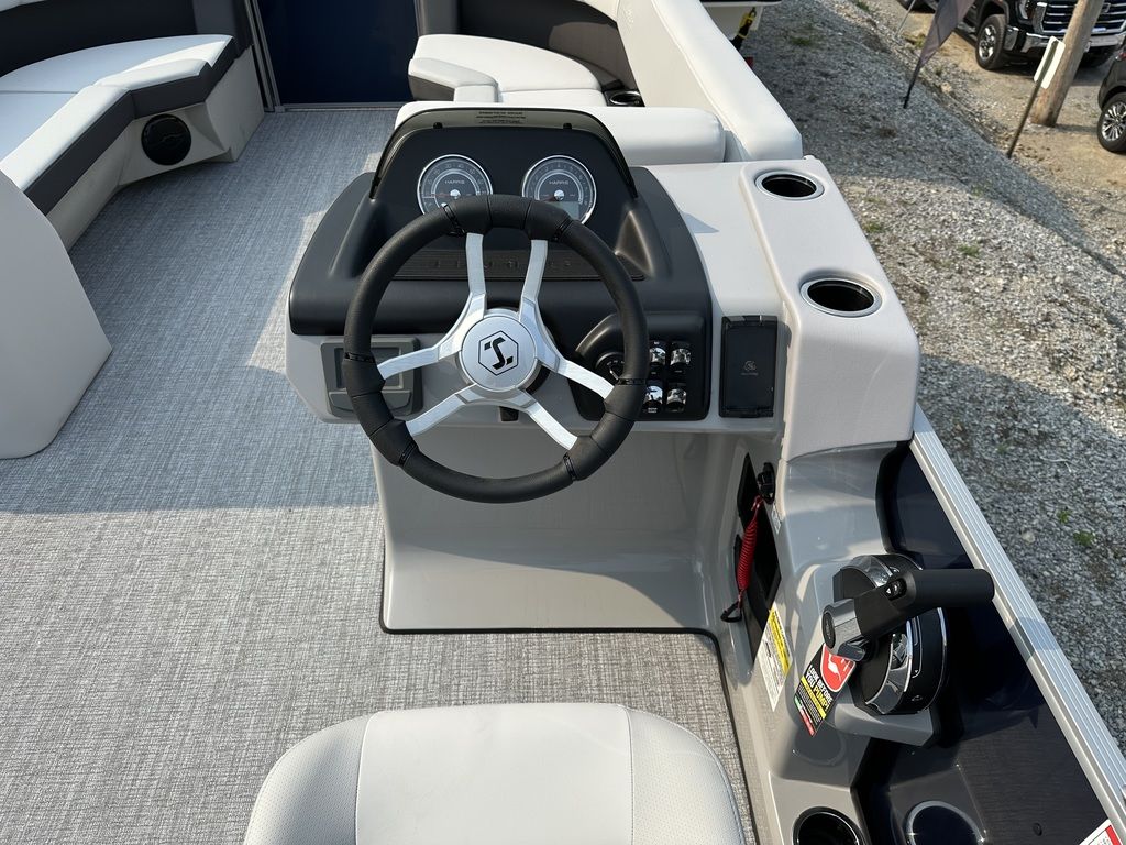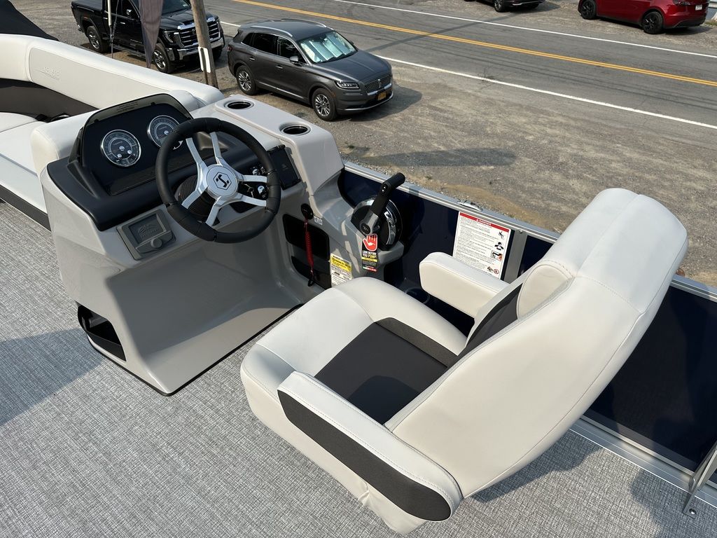 ENHANCED FEATURESTake to the water on a craft built with value in mind that also includes more than you might expect, including a new 190 (19-foot) length, ultra-soft yet extremely durably vinyl upholstery, a reclining helm chair, and standard charging station. Personalizing your pontoon for watersports or fishing is simple—and optional performance packages give you better control on rough water.
