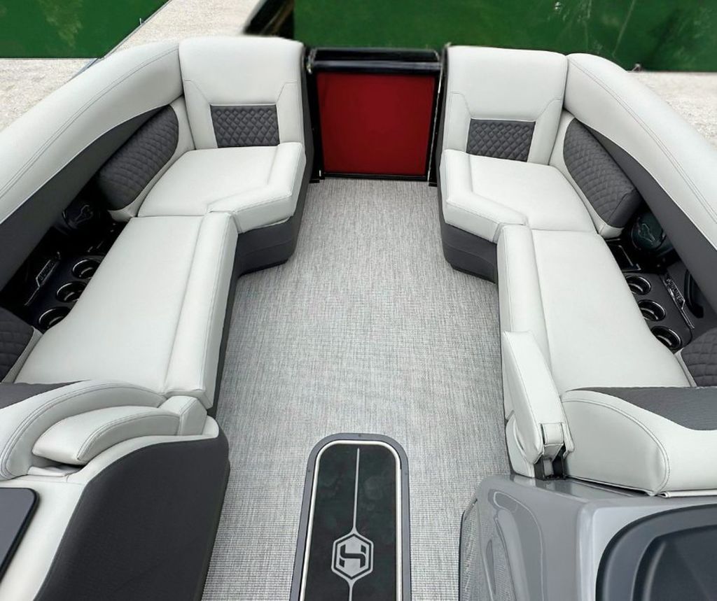 COMFORT MEETS CONVENIENCEReimagined interiors feature luxuriously soft yet incredibly durable pillow-top vinyl upholstery surrounded by a sleek and stunning new fence. Flexible seating options let you configure the craft for any group, and generous onboard storage allows you to stow all the gear you need for a relaxing and fulfilling day on the water. It’s everything you need for the best day on the water ever!