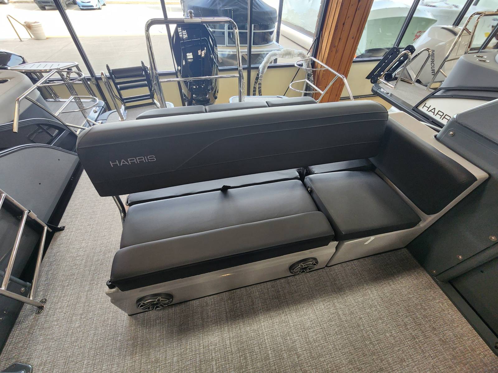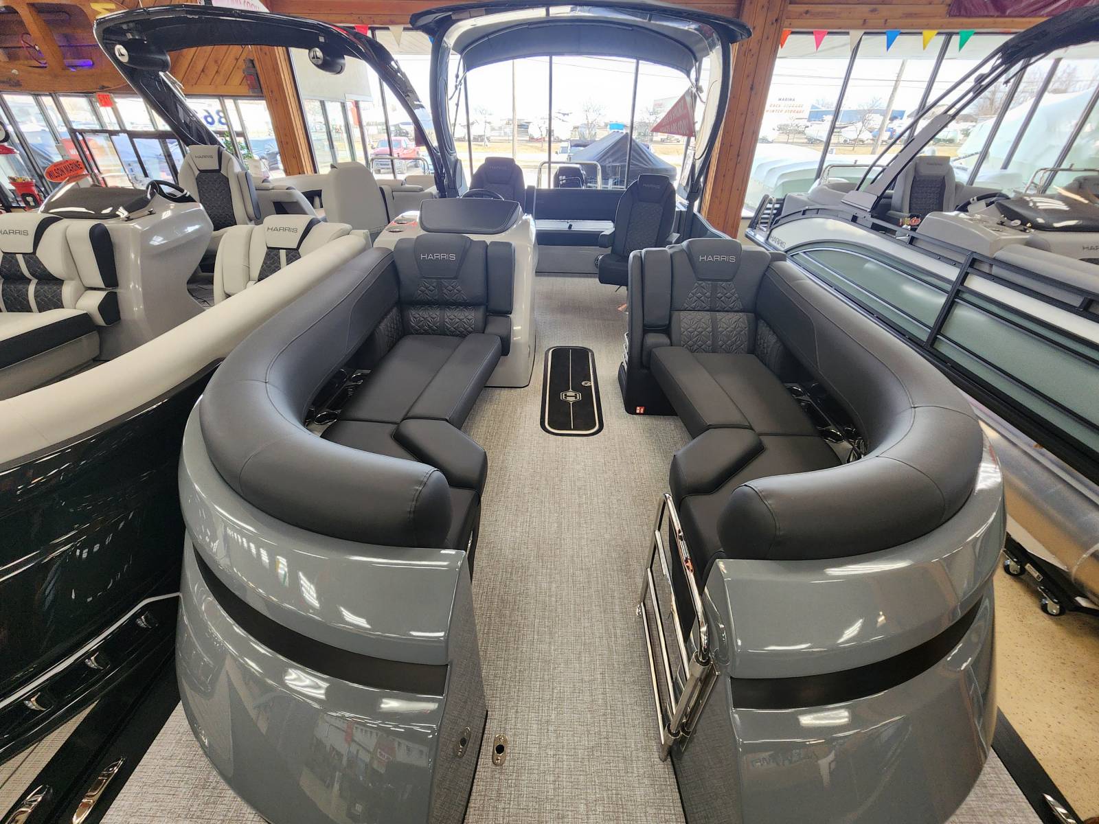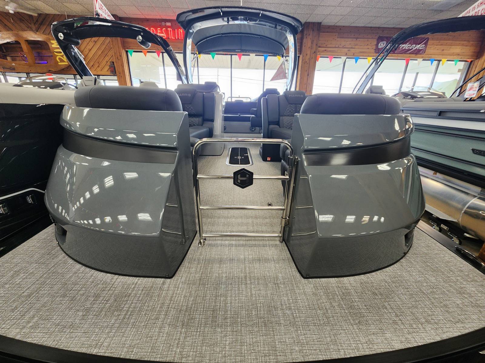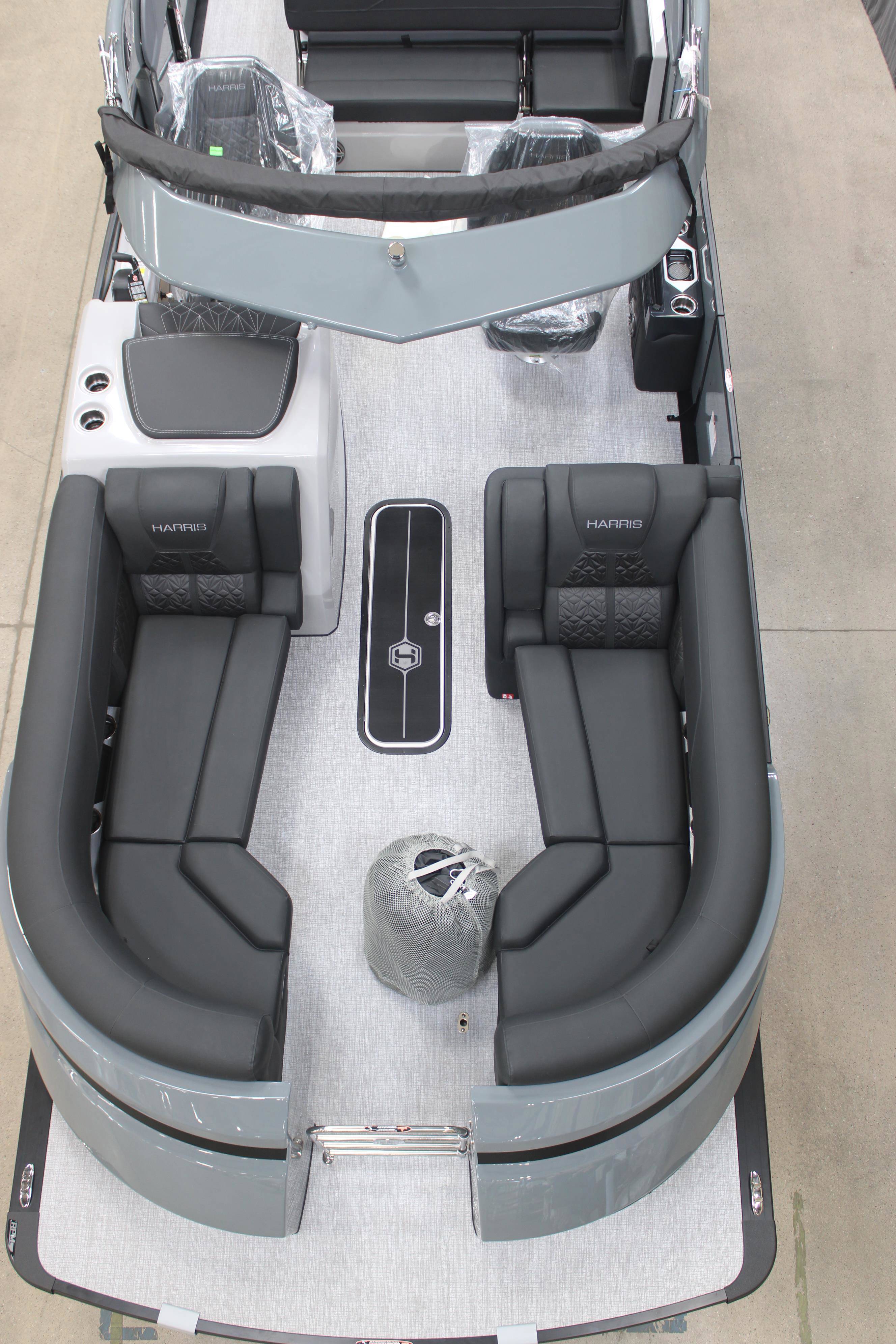 2026 Harris 230 Grand Mariner with a SLDH floorplan and powered by a Mercury V350L 6.4!Factory Installed Options:Exterior- sterling gray with matte black accentsInterior- Luxe caviar cool touch with onyx accentsBlack edition325 chassisIon power lift tower with black biminiTechnology packageInterior light packageLillipad easy step ladderStainless steel ski tow barUltra lux high back helm seatsStone gray woven vinyl flooringRaised helmSafety railLuxury sport woodgrain table