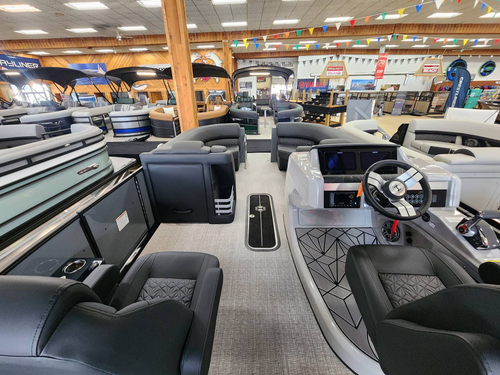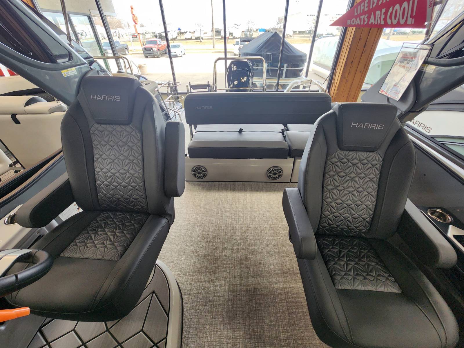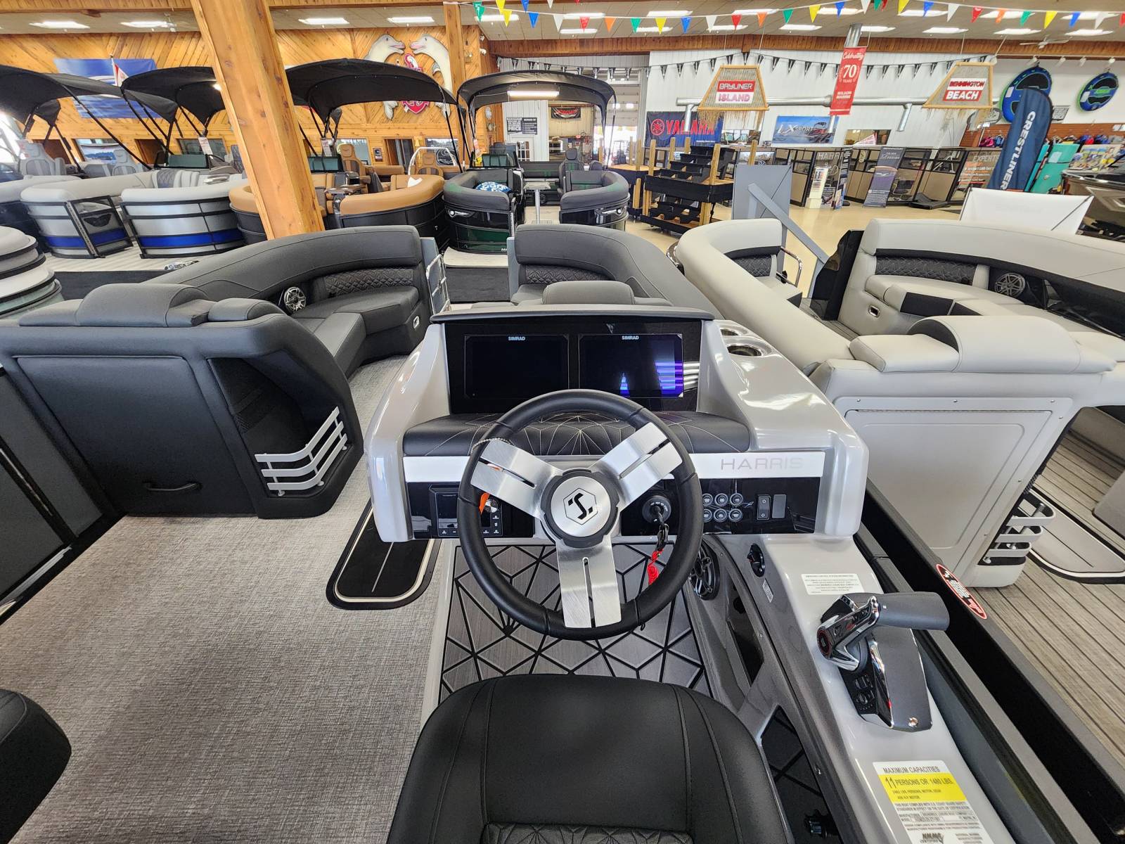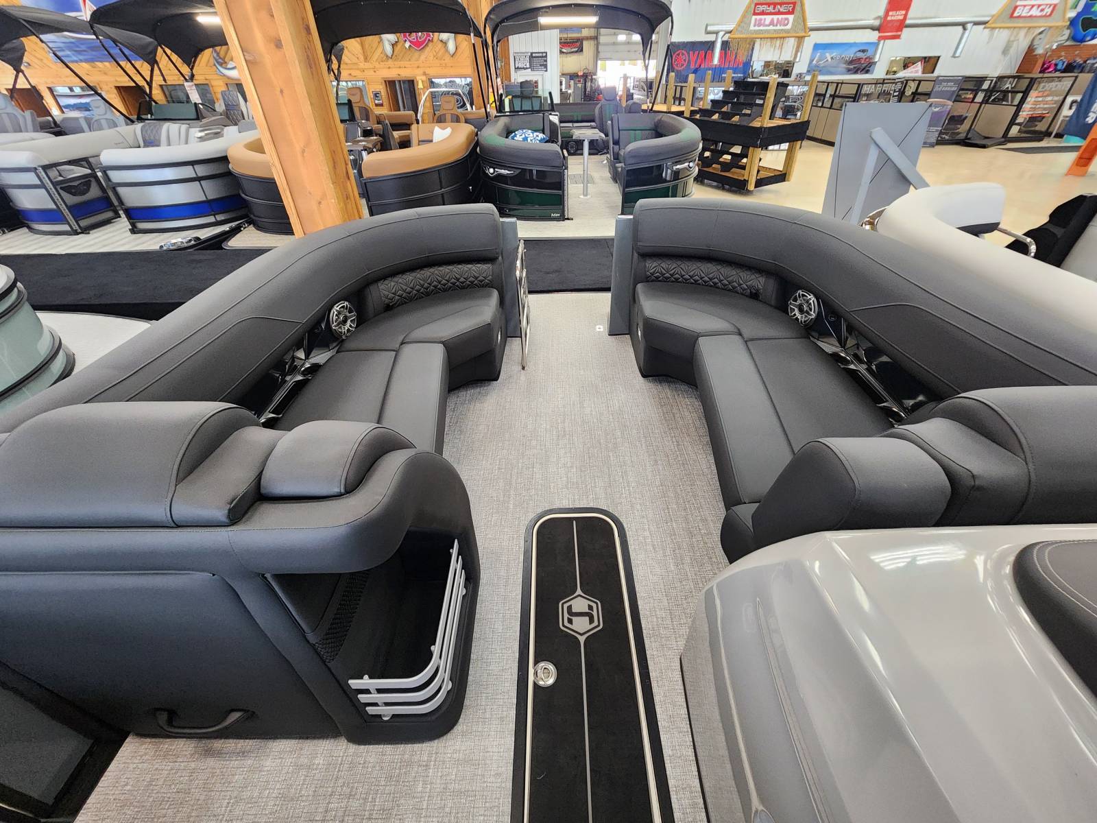 2026 Harris 230 Grand Mariner with a SLDH floorplan and powered by a Mercury V350L 6.4!Factory Installed Options:Exterior- sterling gray with matte black accentsInterior- Luxe caviar cool touch with onyx accentsBlack edition325 chassisIon power lift tower with black biminiTechnology packageInterior light packageLillipad easy step ladderStainless steel ski tow barUltra lux high back helm seatsStone gray woven vinyl flooringRaised helmSafety railLuxury sport woodgrain table