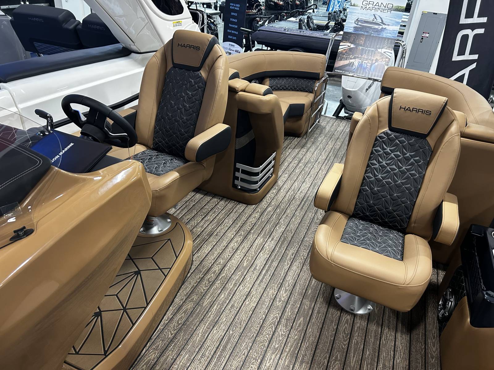 2026 Harris 250 Grand Mariner with CWDH floorplan and powered by a Mercury V350L CF 6.4!Factory Installed Options:Exterior- ceramic whiteInterior- luxe chestnut brown cool touch with onyx accentsBlack edition325 chassisIon power lift tower with black biminiTechnology packageTotal light packageConvenience packageStainless steel ski tow barUltra lux high back helm seatsChanging room with curtainChestnut teak flooringRaised helmRemovable windscreenSpeaker tower cansLuxury sport woodgrain table
