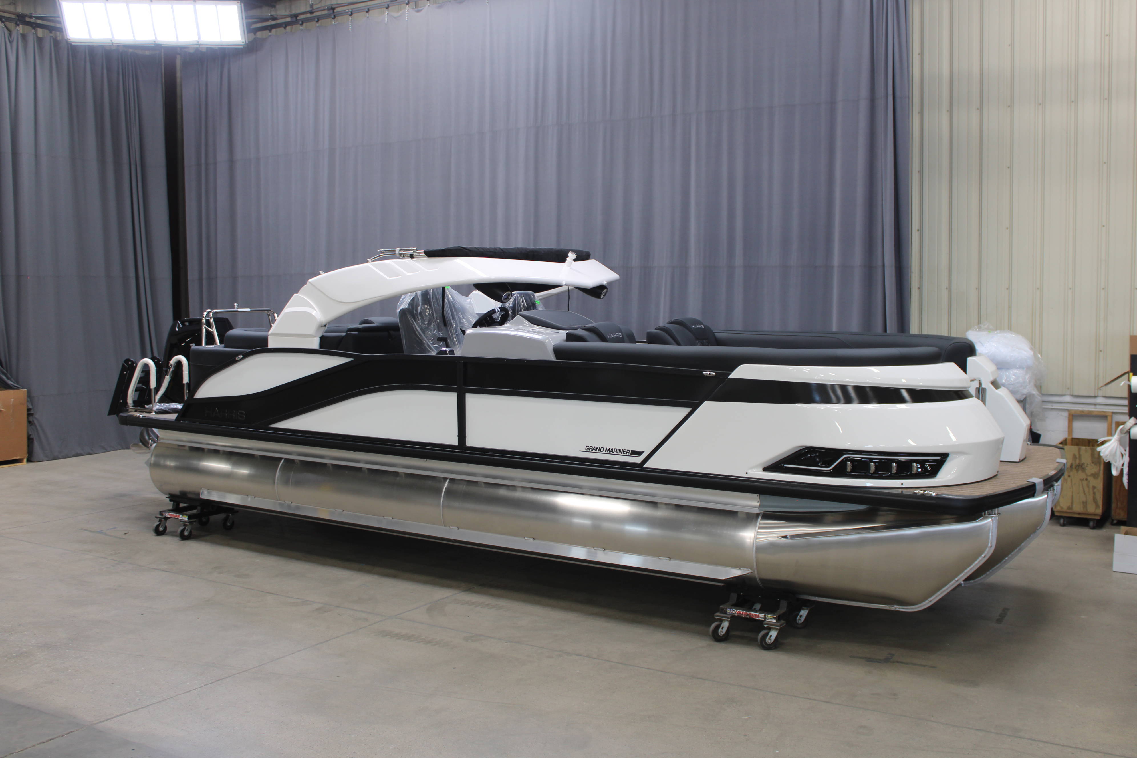 2026 Harris 250 Grand Mariner with CWDH floorplan and powered by a Mercury V350L 6.4!Factory Installed Options:Exterior- ceramic white with black sapphire accentsInterior- Luxe caviar cool touch with onyx accentsBlack edition325 chassisIon power lift tower with black biminiTechnology packageTotal light packageConvenience packageStainless steel ski tow barUltra lux high back helm seatsChestnut teak flooringRaised helmRemovable windscreenSpeaker tower cansChaise end flip up tableLuxury sport woodgrain table
