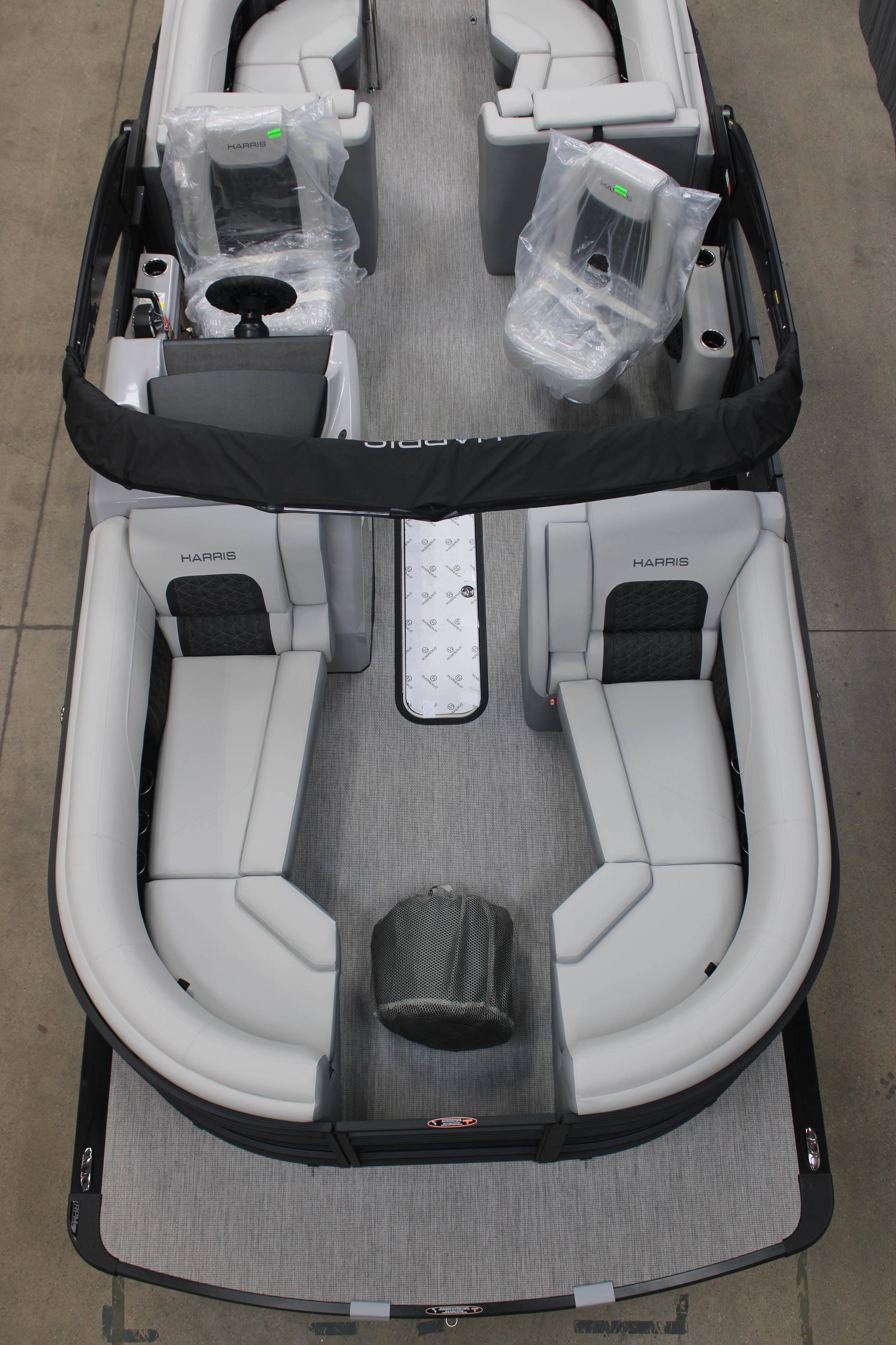 2026 Harris 230 Solstice with CWDH floorplan and powered by a Mercury 2500L DTS!Factory Installed Options:Exterior- midnight blue metallic with white diamond accentsInterior- luxury tungstenBlack edition325 chassisHalo power bimni topConvenience packageTotal light packageStainless steel ski tow barUltra lux high back helm seatsMoonlit shoreline flooringNSX7Removable windscreenSteeling wheel upgradeRaised helmJL Diamond sound systemChaise end flip up tableLuxury woodgrain sport table