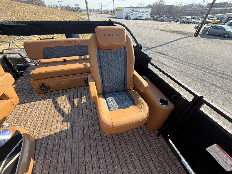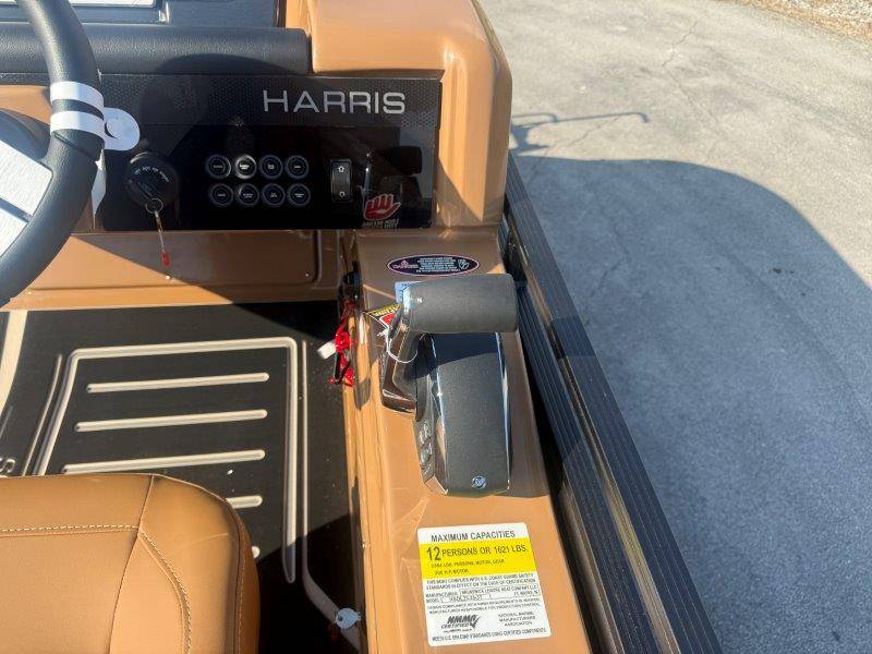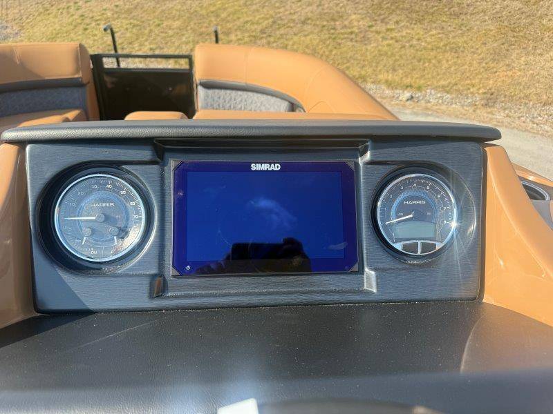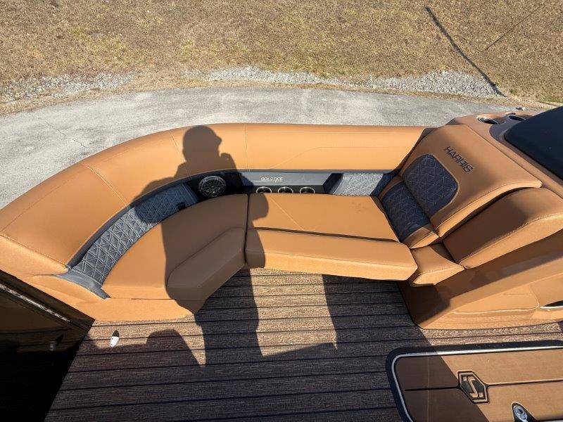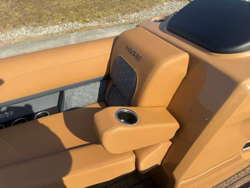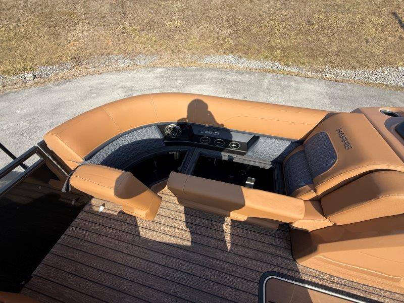 2026 Harris Solstice 230 SLDH Key Standard Features: Construction • 24\" Inch On Center Placed Cross • 25\" Diameter Tubes • Aluminum Extruded Crossmembers • Deck, Radius Bow • 3/4\" 7-Ply Pressure Treated • Decking With Tongue & Groove • Full-Length Pontoon Brackets • Safety Gates • Extended Rear Platform (11.675\") • Anodized Rubrail With Insert • Trailer Tow Eye • Quick Release Trailering Struts • Underdeck Wiring Protection System Performance • Standard 225 Chassis (25\" • Full Length Keel (3/8 Inch Thick) Floorplan • CW Floorplan - Center Walkthru Interior • Tungsten Interior Color • Gate Floor Stops (Dealer Install) • Full Desert Beige Seagrass Flooring Fence • Silver Fence Rails, Rubrail, Bimini • Black Sapphire Fence Panel Color Canvas Factory Installed Options: • 300L Verado Dts/Pas(V8)5.44" 1.85 (AMS) • Black Edition: Powder Coat Fence* • Black Matte Accent • Furniture, Luxury Chestnut Brown* • Primary Fence Color, Black Sapphire • Sldh Flrpln (single Rfl W/std Dual Helm)* • **Mercury Power Assist Steering (Verado)** • 2 Gauge Cable - 15' • 325 Chassis,3tubes 25"out/27"ctr W/strk&kl* • Bimini, Contour Power Top 10' Black Frame • Cap Tag: Three Tube 25"<301 • Chassis 3-25" Tubes W/storage & Ski Tow Bar • Convenience Package • Cover, In Floor Storage Lid Beige • Deckboard .sch 5022 • Fence, Sl/dh Floorplan, Black Powder Coat • Flooring,(f44) Chestnut Teak,full • Hydraulic Hose, Verado(merc)pwr Asst 4'-24' • No Joystick • Nsx9 • Primary OB - Engine Installed • Mooring Cover Helm • Raised Helm • 12 Volt DC Receptacle • Digital Gauges • Lockable Glovebox • Tilt Steering • Removable Windscreen • Simrad NSX7 with SmartCraft Convenience • Engine Installation • Direct Fuel Fill • 10' Bimini • Port Bow Chaise End Storage • Stainless Steel Cupholders • Stainless Steel Fence Mounted • Manual Fire Extinguisher • 4 Step Stainless Steel Telescoping • Ultralux Helm Seat • USB/USB-C Charging Ports • Wood Grain Table w/ Drink Holders • Battery Selector Switch • Wireless Mobile Phone Charging Pad • Interior Lighting CZONE • Stainless Steel Flip-Up Cleats Stereo • JL Zone Control Stereo With 8 JL Factory Installed Options: • Rail, Safety (req Ski Tow Bar/3 Tube) • Rail,safety(req Ski Tow Bar) • Raised Helm Floor Pad Black/gray • Raised Helm* • Rubrail Kit, 3 Tube Black • Seat, Dual Helm Luxury Hb Rec Chest Brn • Seats, Dual Helm Ultra Lux High Back* • Ski Tow Bar, Stainless Steel 3 Tube • Sldh-chestnut Luxury • Sound Sys, Jl Diamond(jl Stereo,amp,spkrs)* • Speakers, Jl Diamond (sldh) • Ss Cup Holders For Lux Furn Arms-slec/sldh • Table, Woodgrain Lux Sprt (dlr Instl) Brown • Table, Woodgrain Luxury Sport (dlr Instl)* • Total Lght Pkg *c-zone* (interior/exterior)