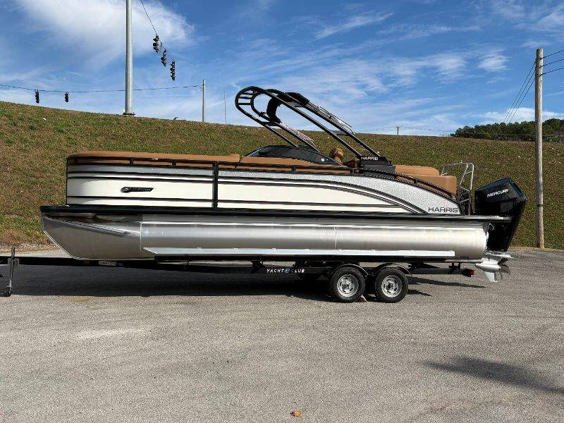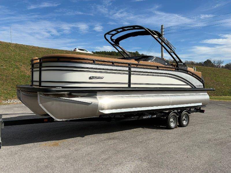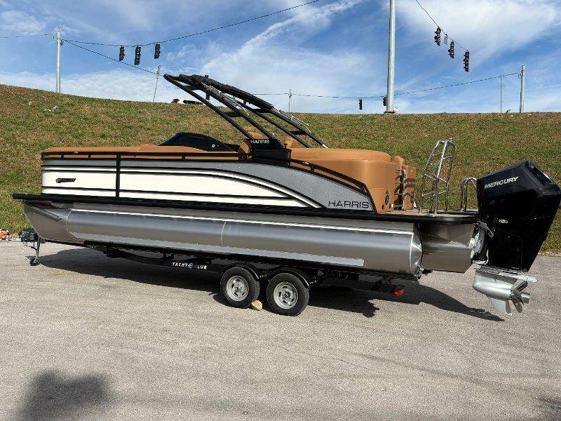 2026 Harris Solstice Dual Console 250 CWDH Key Standard Features: Construction • 24\" Inch On Center Placed Cross • 25\" Diameter Outer Tubes, 27\" • Aluminum Extruded Crossmembers • Deck, Radius Bow • 3/4\" 7-Ply Pressure Treated • Decking With Tongue & Groove • Full-Length Pontoon Brackets • Safety Gates • Extended Rear Platform (11.675\") • Anodized Rubrail With Insert • Trailer Tow Eye • Quick Release Trailering Struts • Underdeck Wiring Protection System Performance • 325 Chassis (25\" Outer Tubes, 27\" • Full Length Keel (3/8 Inch Thick) • Lifting Strakes • Full Alumninum Skin Kit Floorplan • CWDH Floorplan - Center Walkthru Interior • Tungsten Interior Color • Gate Floor Stops (Dealer Install) • Full Desert Beige Seagrass Flooring Fence • Silver Fence Rails, Rubrail, Bimini • Black Sapphire Fence Panel Color Canvas • Mooring Cover Helm • Windshield, Low Profile • 12 Volt DC Receptacle • Digital Gauges • Lockable Glovebox • Tilt Steering • Hydraulic Steering • Removable Windscreen Convenience • Engine Installation • Direct Fuel Fill • In-Floor Storage • 10' Bimini (1.25\" Frame sst Quick • Port Bow Chaise End Storage • Stainless Steel Cupholders • Stainless Steel Fence Mounted • Manual Fire Extinguisher • 4 Step Stainless Steel Telescoping • Ultralux Helm Seat • USB/USB-C Charging Ports • Wood Grain Table w/ Drink Holders • Battery Selector Switch • Wireless Mobile Phone Charging Pad • Interior Lighting Package • Stainless Steel Flip-Up Cleats Stereo • JL Zone Control Stereo With 8 JL Factory Installed Options: • 350l Verado (w/dts/pas) V10 (rq 3 Tube) • Black Edition: Pwdr Coat Fence* • Cwdh Flrpln (cntr Walk W/std Dual Helm)* • Furniture, Luxury Chestnut Brown* • Platinum Silver Accent • Primary Fence Color, Ceramic White • **Mercury Power Assist Steering (Verado)** • 1/0 Gauge Cable - 20' • 325 Chassis,3tubes 25"out/27"ctr W/strk&kl* • Battery Onshr Chrg Kit Swap Cw/cwdh Flpn • Battery Switch, 350-450 Or Jystk, Cw Flpns • Cap Tag: Three Tube 25">301 • Chassis 3-25" Tubes W/storage & Ski Tow Bar • Clean Power Harness Swap From 10' To 15' • Convenience Package • Cover, In Floor Storage Lid Beige • Cwdh-chestnut Luxury W/ntch • Extra Deck Plate Removal With V10/jystk • Fence, CWDH Floorplan, Black Powder Coat • Flooring,(f44) Chestnut Teak,full • Hydraulic Hose, Verado(merc)pwr Asst 4'-24' • Interior Lightng Pkg-rgb Cphldrs/seat Base* • Jl Zone Control (incl 8 Jl Spkrs)* • Nsx7 • Primary OB - Engine Installed • Rubrail Kit, 3 Tube Black • Seat, Dual Helm Luxury Hb Rec Chest Brn • Seats, Dual Helm Ultra Lux High Back* • Ski Tow Bar, Stainless Steel 3 Tube • Speakers, Jl Zone Control (cwdh) • Ss Cup Holders For Lux Furn Arms-cw's • Table, Woodgrain Lux Sprt (dlr Instl) Brown • Table, Woodgrain Luxury Sport (dlr Instl)* • Total Lighting Pkg (interior & Exterior)* • Tower, Ultra Cw/dh Flrps Black • Tower, Ultra, Black Manual Lift W/blk Bim* • Transhield Engine Cover 175hp And Up • Windshield,Low Profile,Smoked,Blk Alum Frame