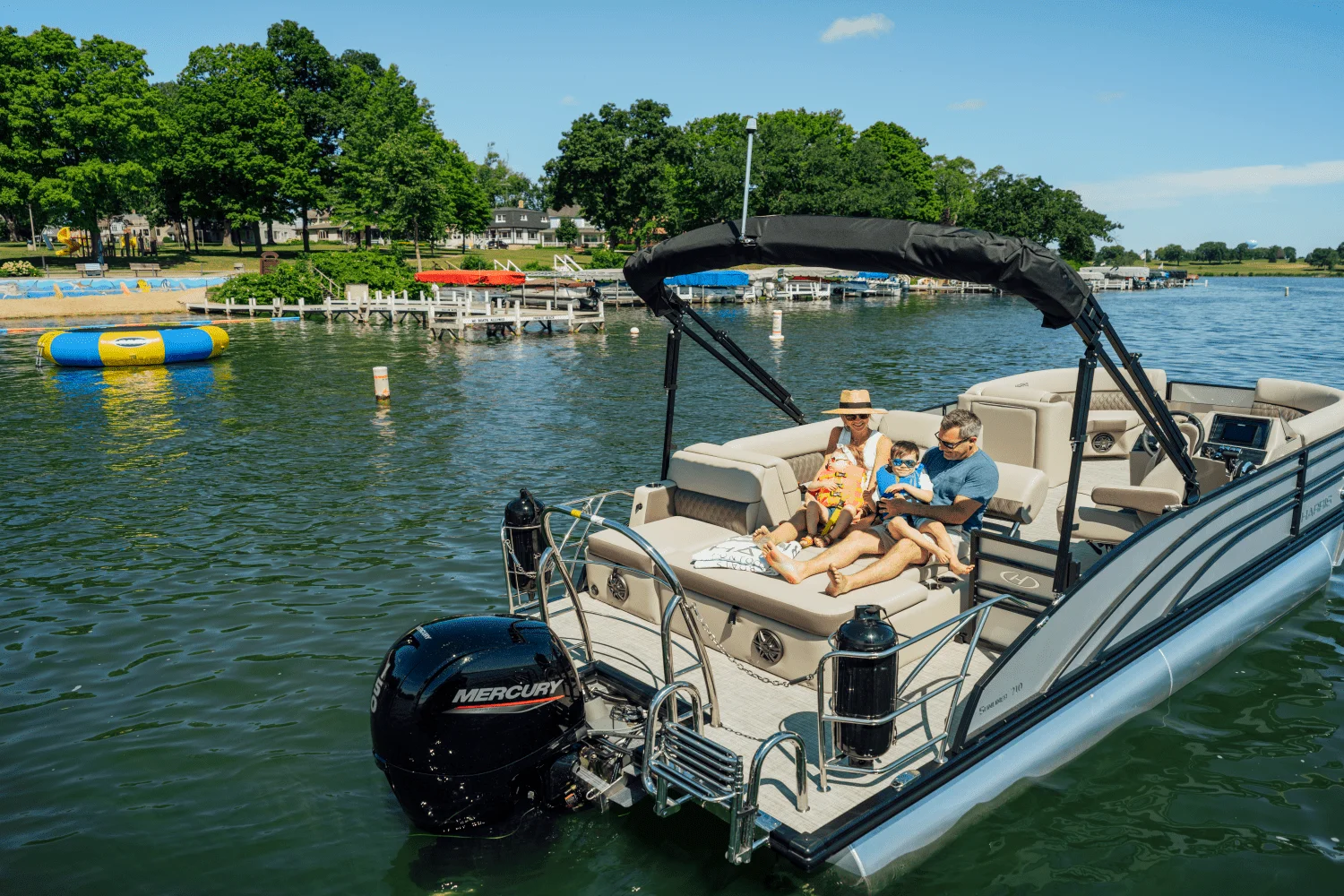 Introducing the 2026 Harris Sunliner 210, crafted for adventure. With flexible seating arrangements and easy style, Sunliner is the pontoon built to fit your family. Make a splash. The Sunliner delivers the incredible fun you expect with style and comfort that will turn heads and encourage smiles. It's purpose-built for versatility-cruising, relaxing, partying, fishing, skiing or simply getting away with family and friends for a relaxing day on the lake. Comforty meets convenience. Reimagined interiors feature luxuriously soft yet incredibly durable pillow-top vinyl upholstery surrounded by a sleek and stunning new fence. Flexible seating options let you configure the craft for any group, and generous onboard storage allows you to stow all the gear you need for a relaxing and fulfilling day on the water. It's everything you need for the best day on the water ever! Key Features Unmatched Performance - Powered by Mercury engines, the Sunliner 210 offers exhilarating performance, seamlessly gliding through the water. With 115 to 250 horsepower of raw energy at your fingertips, every journey is an unforgettable experience.