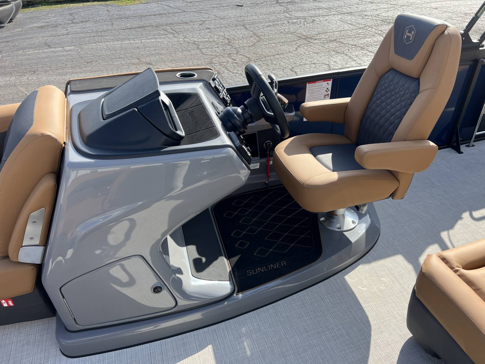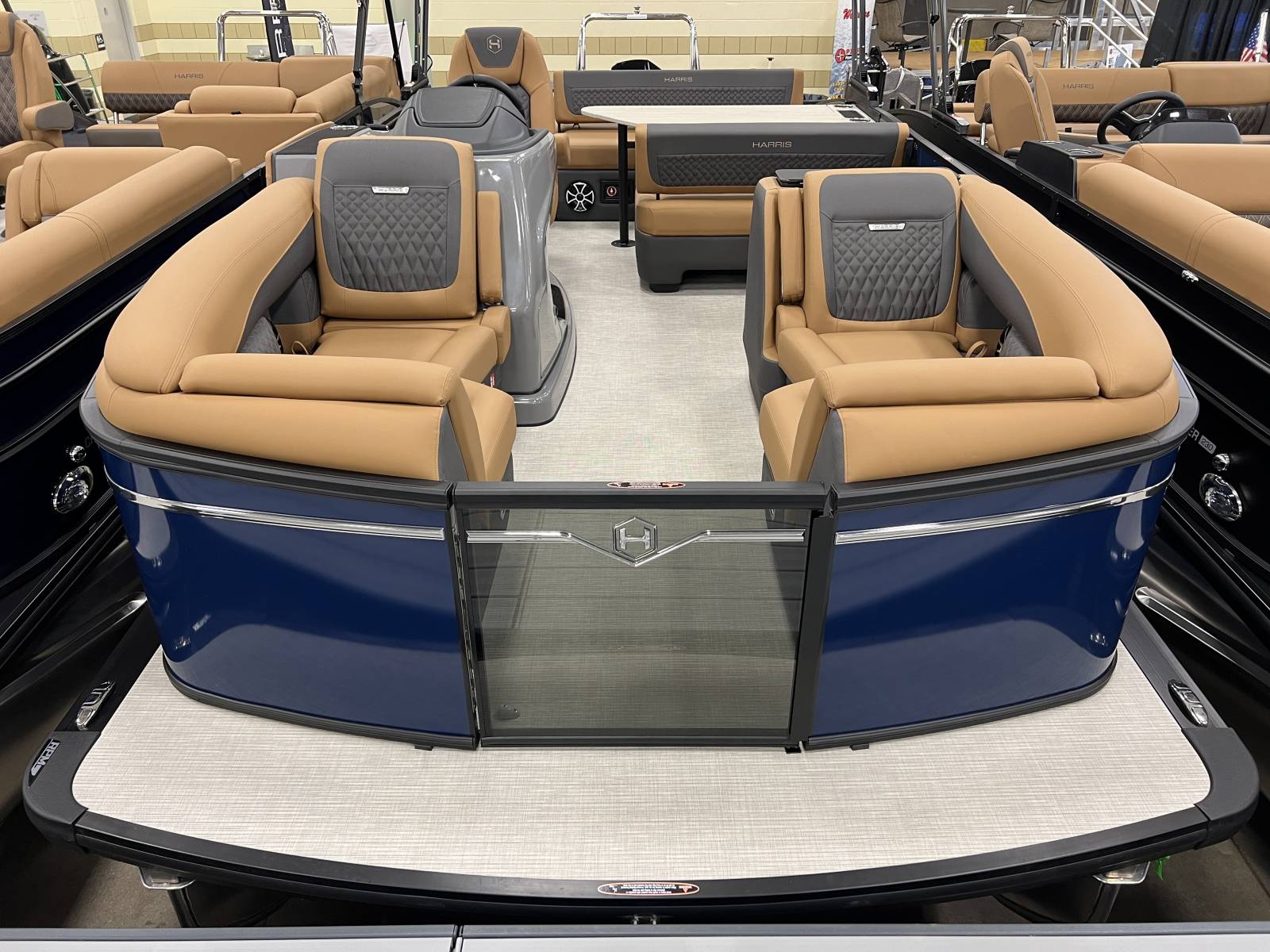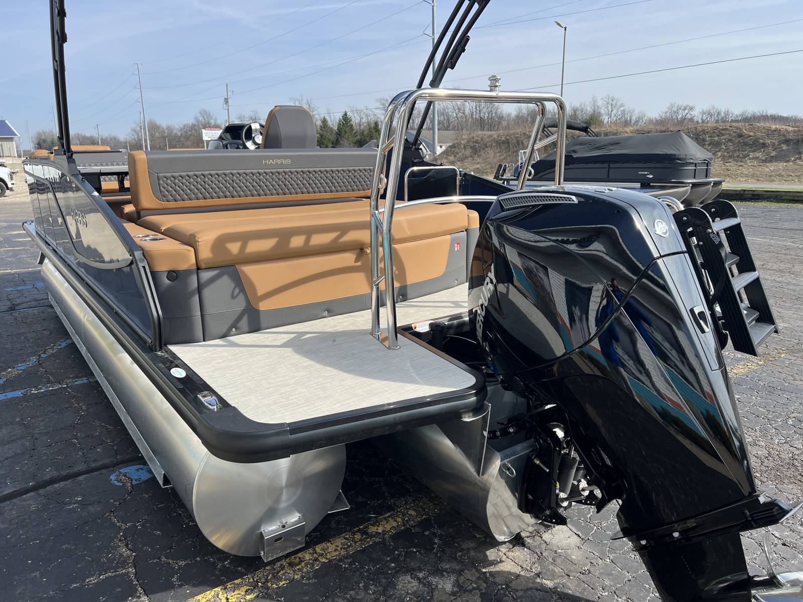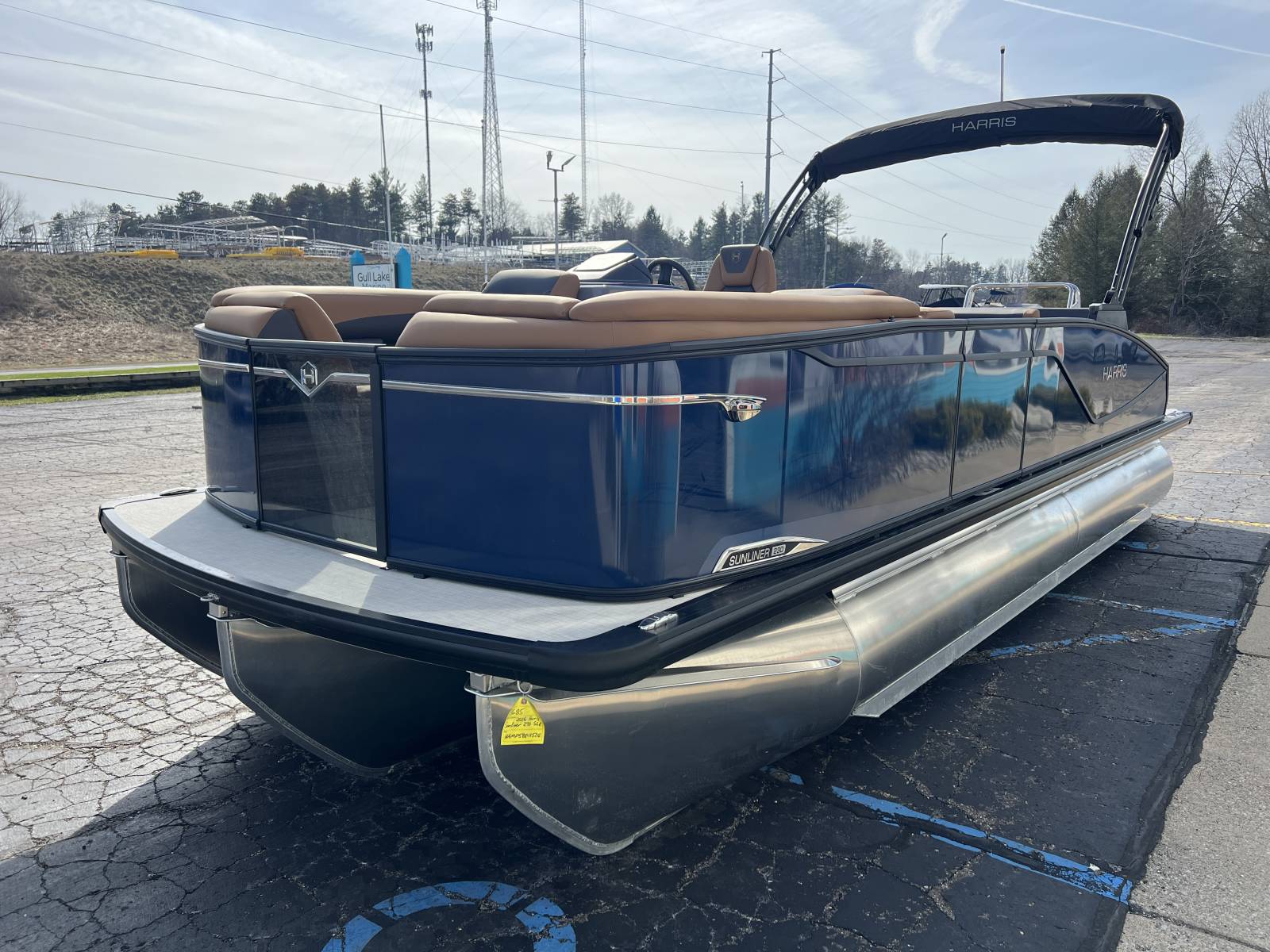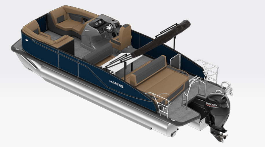 interior, this Sunliner is both a head-turner and a must-see on the water. Powered by a Mercury 225hp engine and built on Harris’s RPM Tritoon Chassis, the 230 SLE offers an exhilarating yet refined ride, whether you’re entertaining friends, pulling skiers, or cruising at sunset.Notable Options Include:Mercury 225hp EngineHarris RPM Tritoon ChassisMidnight Blue Exterior with Blackout EditionLUX Chestnut InteriorSki Tow BarPower Bimini TopTotal Lighting PackageLillipad Ladder UpgradeSIMRAD NSX9 Touchscreen DisplayAll-New See-Through Bow GateDual Battery Selector SwitchStainless Steel CupholdersQuick-Release (QR) Fender SystemRemovable TableEZ-Clip Mooring CoverAdditional Details:The 2026 Sunliner 230 with the SLE floorplan takes luxury pontoons to a new