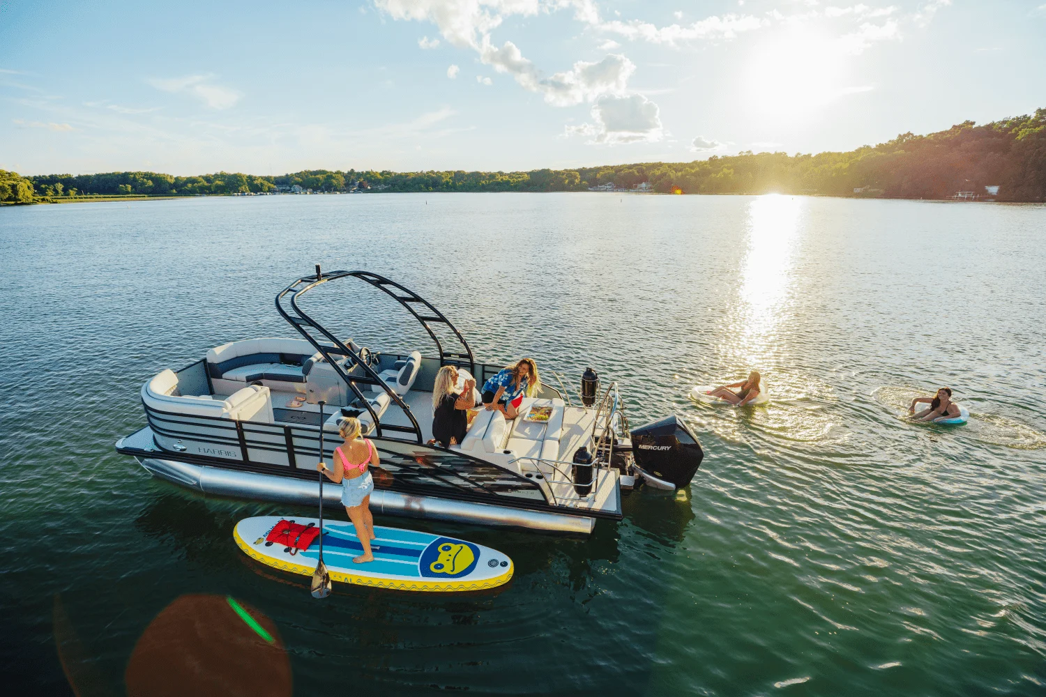 Introducing the 2026 Harris Sunliner 230 Sport, crafted for adventure. With flexible seating arrangements and easy style, Sunliner is the pontoon built to fit your family. Make a splash. The Sunliner Sport delivers the incredible fun you expect with style and comfort that will turn heads and encourage smiles. It's purpose-built for versatility-cruising, relaxing, partying, fishing, skiing or simply getting away with family and friends for a relaxing day on the lake. Comfort meets convenience. Reimagined interiors feature luxuriously soft yet incredibly durable pillow-top vinyl upholstery surrounded by a sleek and stunning new fence. Flexible seating options let you configure the craft for any group, and generous onboard storage sllows you to stow all the gear you need for a relaxing and fulfilling day on the water. It's everything you need for the best day on the water ever!