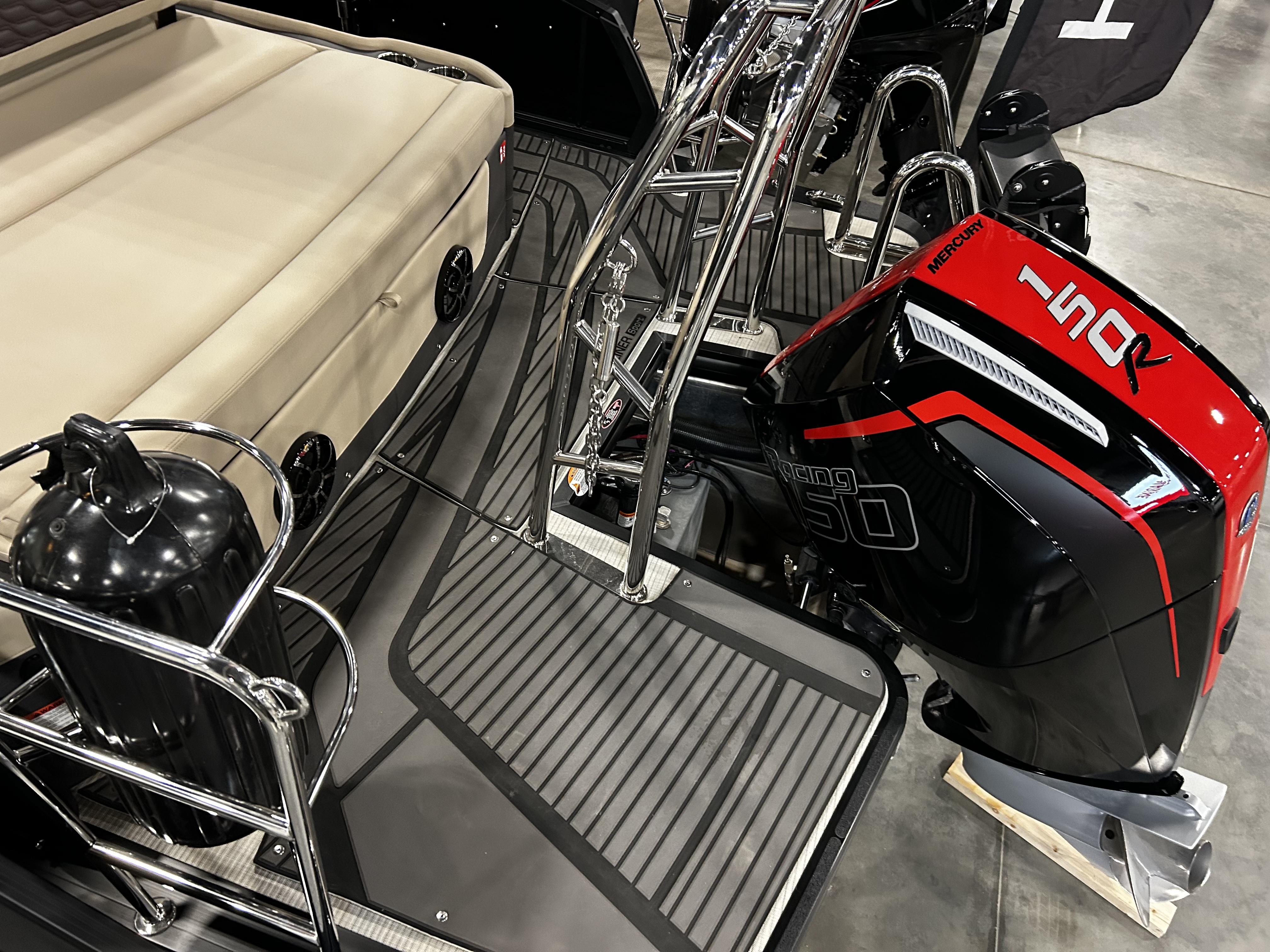 All new Sunliner series! This boat is a special factory photo shoot boat and is powered by a Mercury 150 Racing! Plenty of upgrades on this specially priced tri toon.