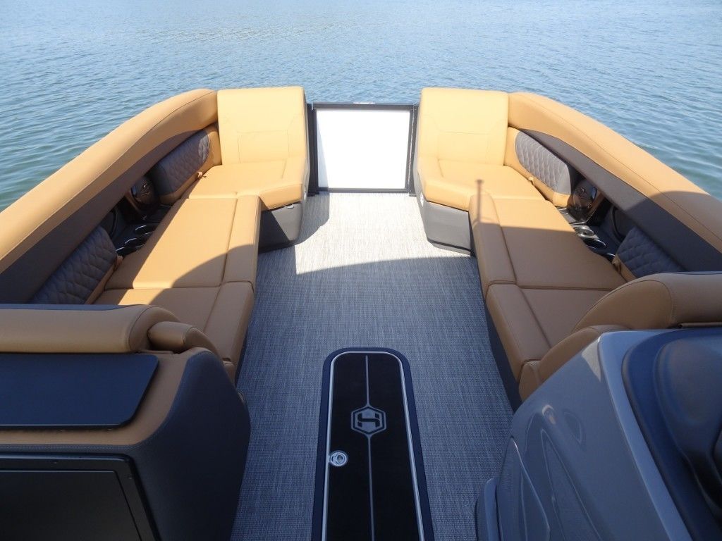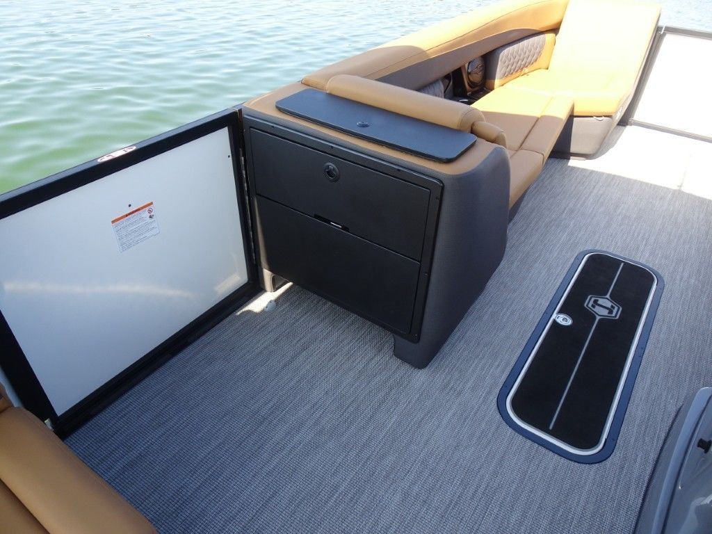 COMFORT MEETS CONVENIENCEReimagined interiors feature luxuriously soft yet incredibly durable pillow-top vinyl upholstery surrounded by a sleek and stunning new fence. Flexible seating options let you configure the craft for any group, and generous onboard storage allows you to stow all the gear you need for a relaxing and fulfilling day on the water. It’s everything you need for the best day on the water ever!