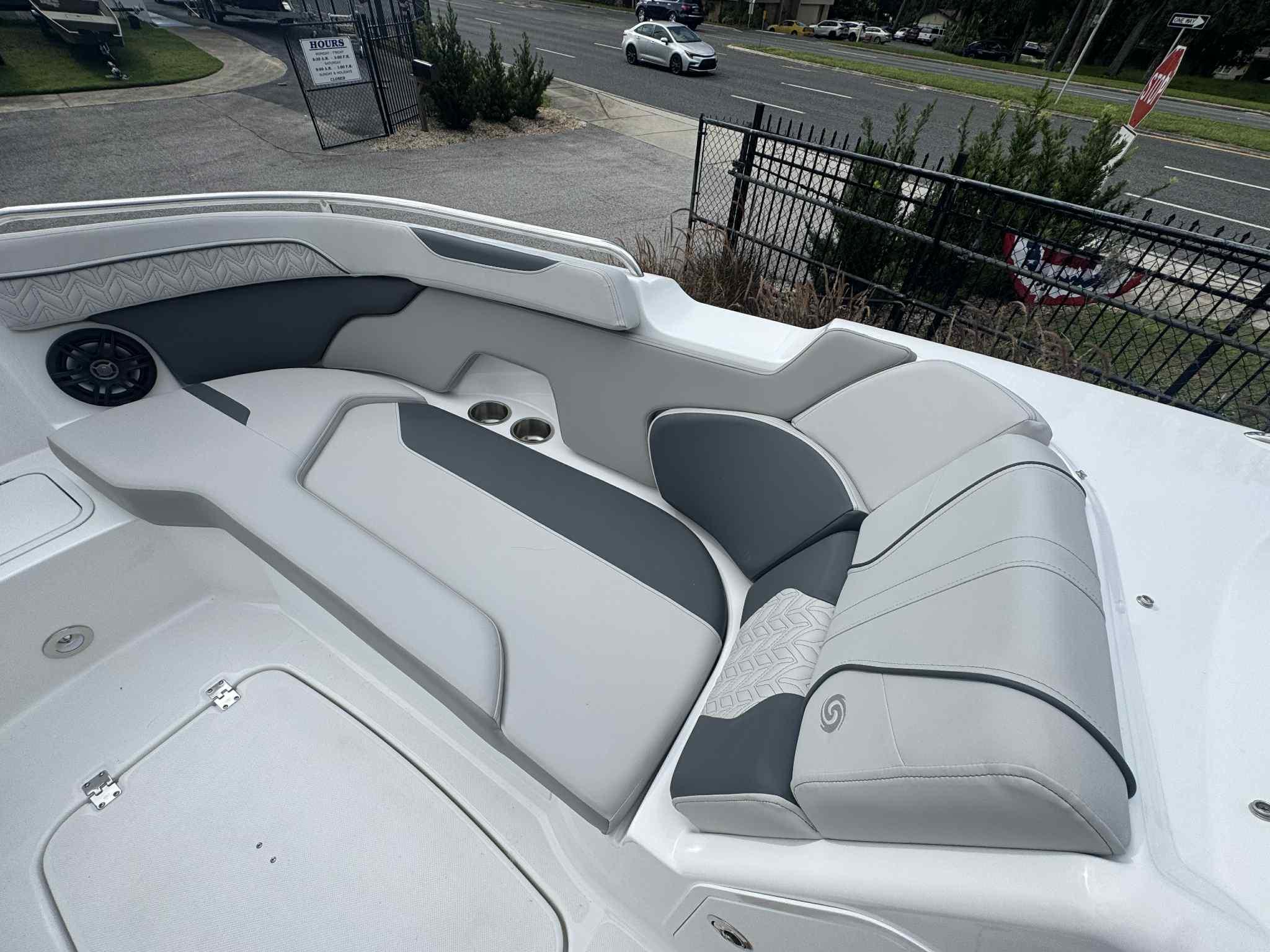 JUST IN: 2025 Hurricane 2400 with Yamaha 250HPIntroducing the latest addition to our lineup, the 2024 Hurricane 2400! Paired with a powerful Yamaha 250HP engine, this deck boat is designed to deliver a thrilling performance on the water.Basic Specs: Length: 24 feet Beam: 8.5 feet Fuel Capacity: 52 gallons Passenger Capacity: 12 peopleOptions Included: Pump Out: Convenient and easy waste disposal. Ski Tow Bar: Perfect for water sports enthusiasts. Marine Mat: Comfortable and stylish flooring. Simrad 3007: Advanced navigation and fish-finding technology. Cover: Protect your investment with a custom-fit cover. Table Stern: Ideal for enjoying meals and socializing on the water.Don't miss out on this fantastic boat! Visit us today to experience the Hurricane 2400 firsthandTrailer is not included.