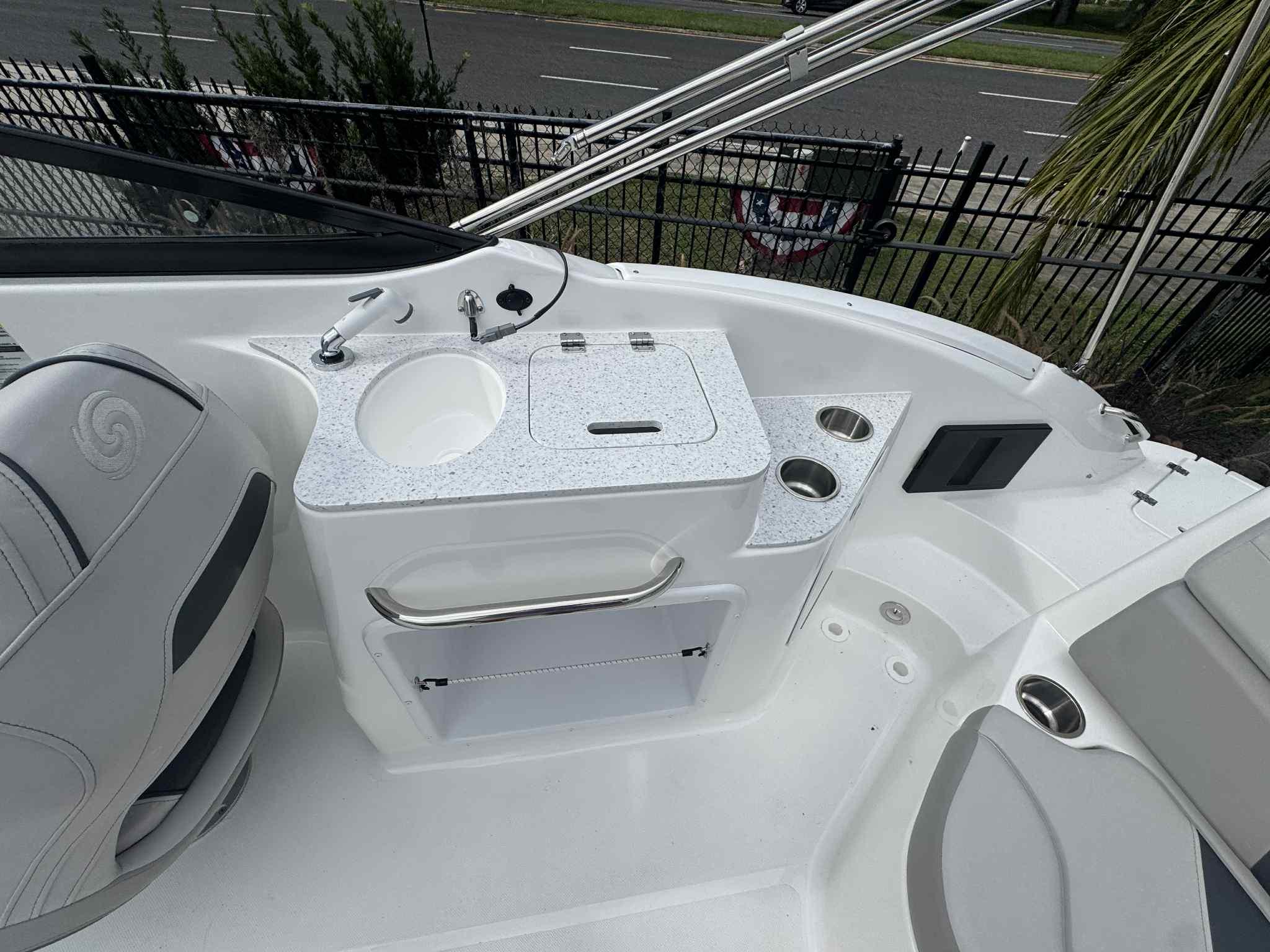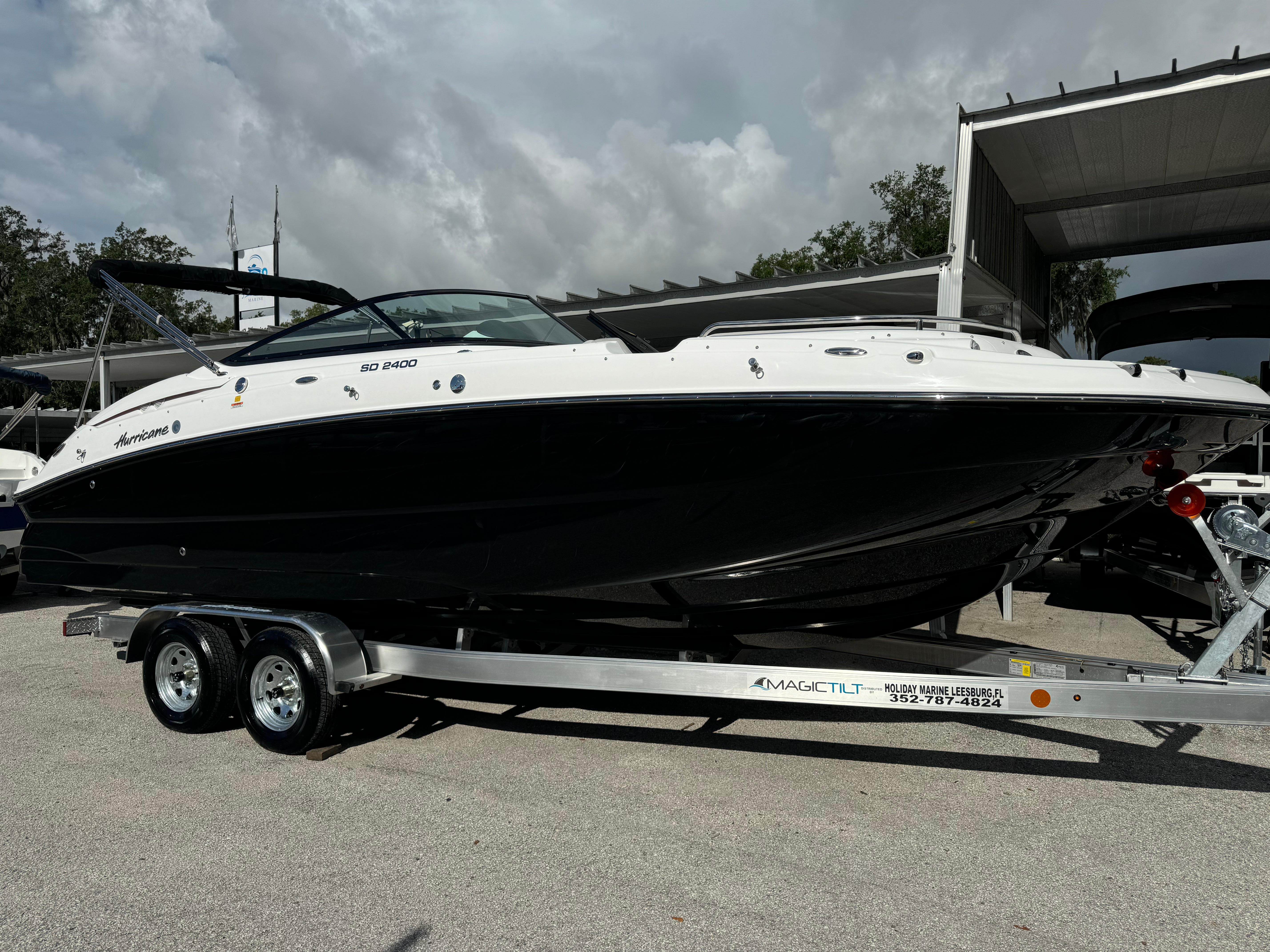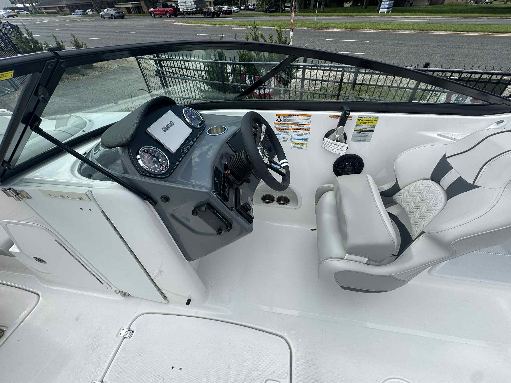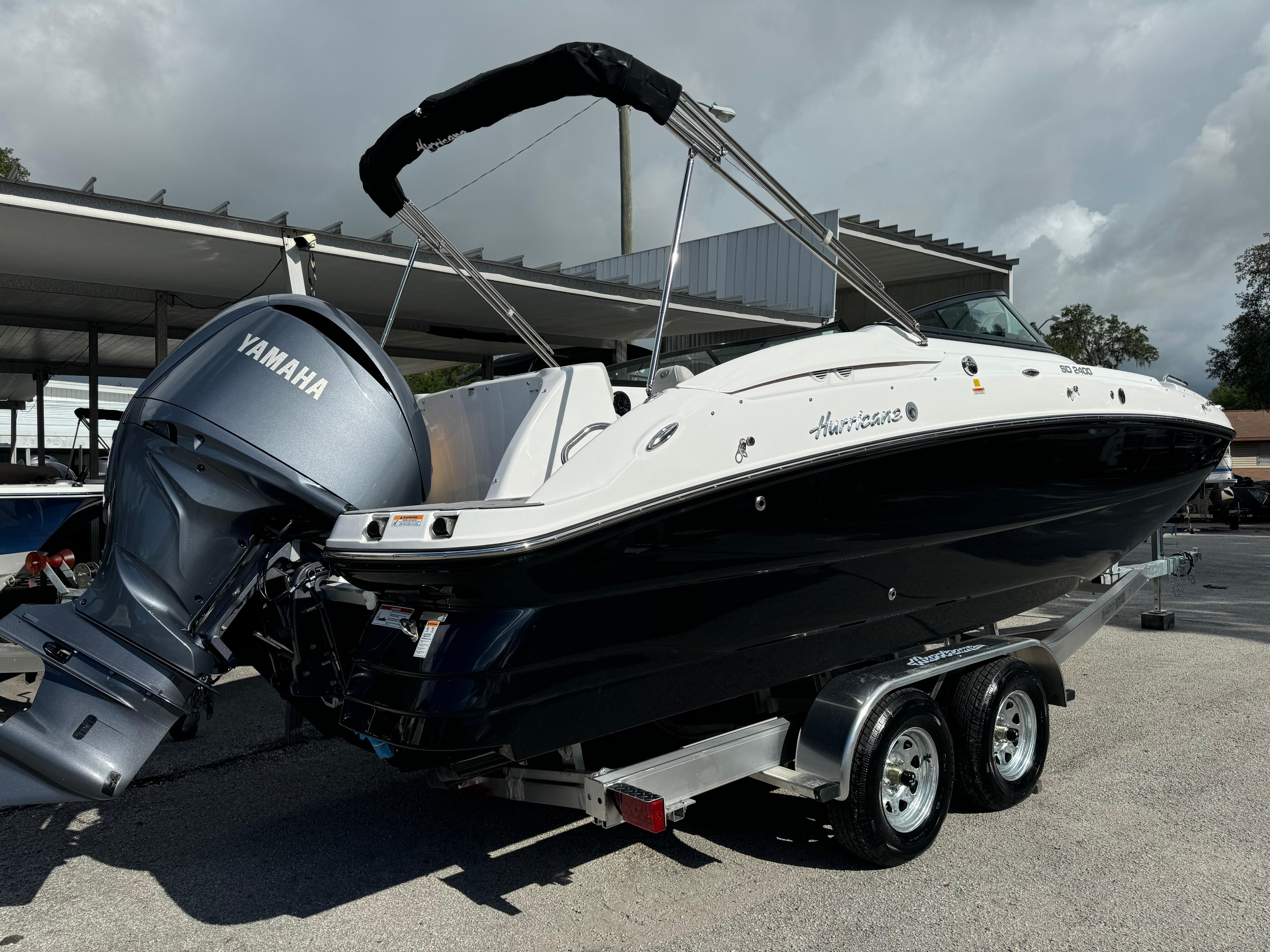 JUST IN: 2025 Hurricane 2400 with Yamaha 250HPIntroducing the latest addition to our lineup, the 2024 Hurricane 2400! Paired with a powerful Yamaha 250HP engine, this deck boat is designed to deliver a thrilling performance on the water.Basic Specs: Length: 24 feet Beam: 8.5 feet Fuel Capacity: 52 gallons Passenger Capacity: 12 peopleOptions Included: Pump Out: Convenient and easy waste disposal. Ski Tow Bar: Perfect for water sports enthusiasts. Marine Mat: Comfortable and stylish flooring. Simrad 3007: Advanced navigation and fish-finding technology. Cover: Protect your investment with a custom-fit cover. Table Stern: Ideal for enjoying meals and socializing on the water.Don't miss out on this fantastic boat! Visit us today to experience the Hurricane 2400 firsthandTrailer is not included.