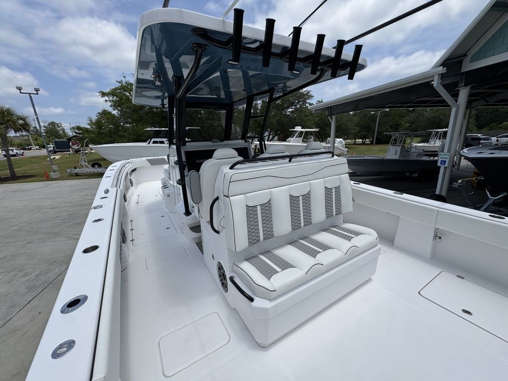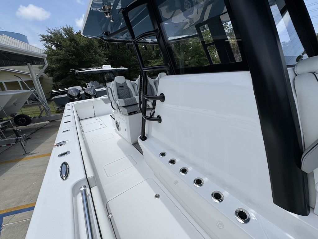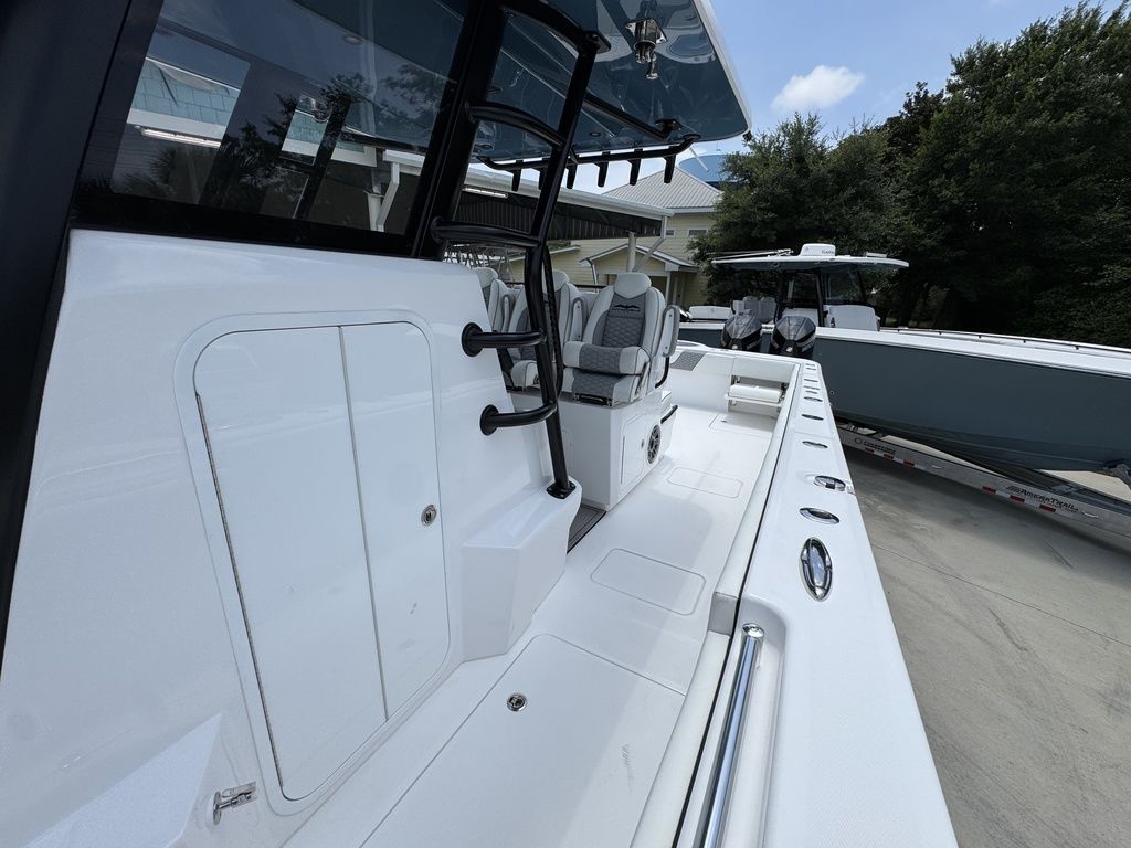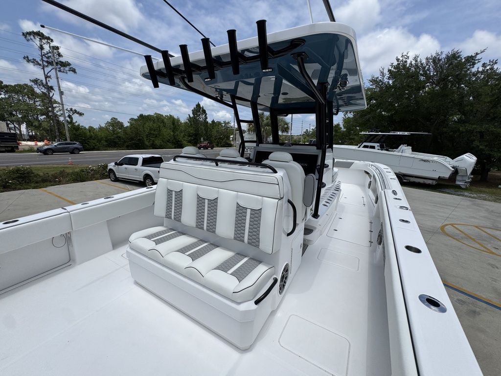 Introducing the latest member of the fleet: The 36' Cat. Purpose-built for serious offshore fishing, our latest center console represents a complete reimagining of what's possible in a premium fishing vessel. Its innovative hull design features a raised chine and aggressive style lines that actively deflect spray, ensuring a remarkably dry, soft ride in all sea conditions.