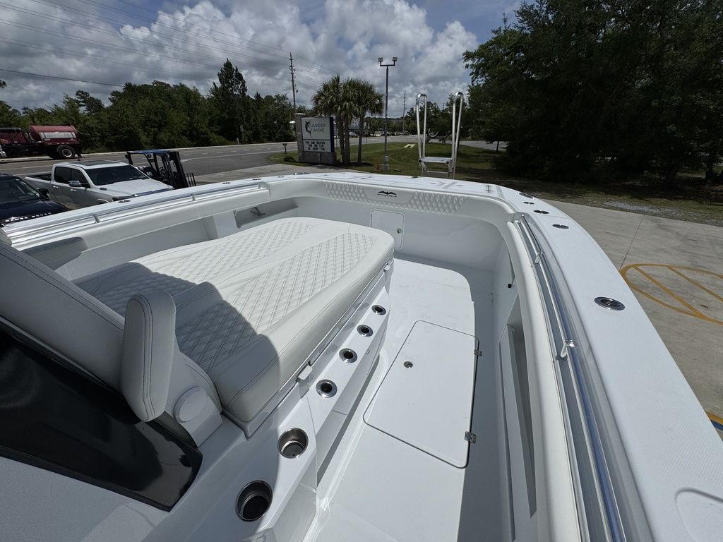 Introducing the latest member of the fleet: The 36' Cat. Purpose-built for serious offshore fishing, our latest center console represents a complete reimagining of what's possible in a premium fishing vessel. Its innovative hull design features a raised chine and aggressive style lines that actively deflect spray, ensuring a remarkably dry, soft ride in all sea conditions.