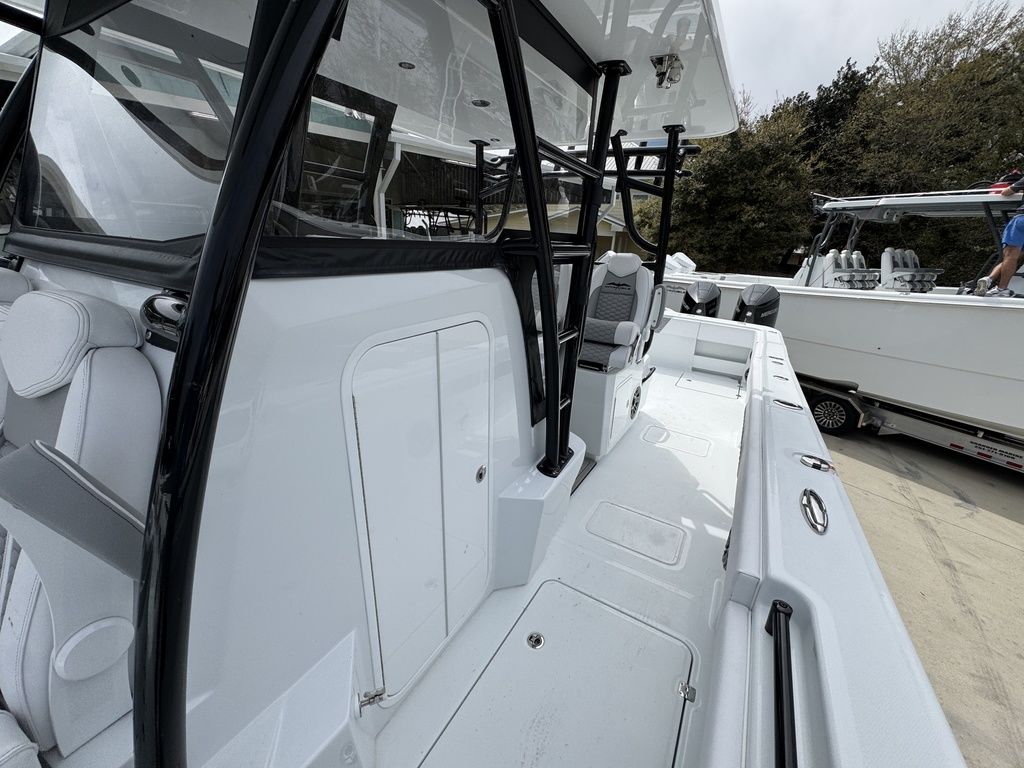 Introducing the latest member of the fleet: The 36' Cat. Purpose-built for serious offshore fishing, our latest center console represents a complete reimagining of what's possible in a premium fishing vessel. Its innovative hull design features a raised chine and aggressive style lines that actively deflect spray, ensuring a remarkably dry, soft ride in all sea conditions.