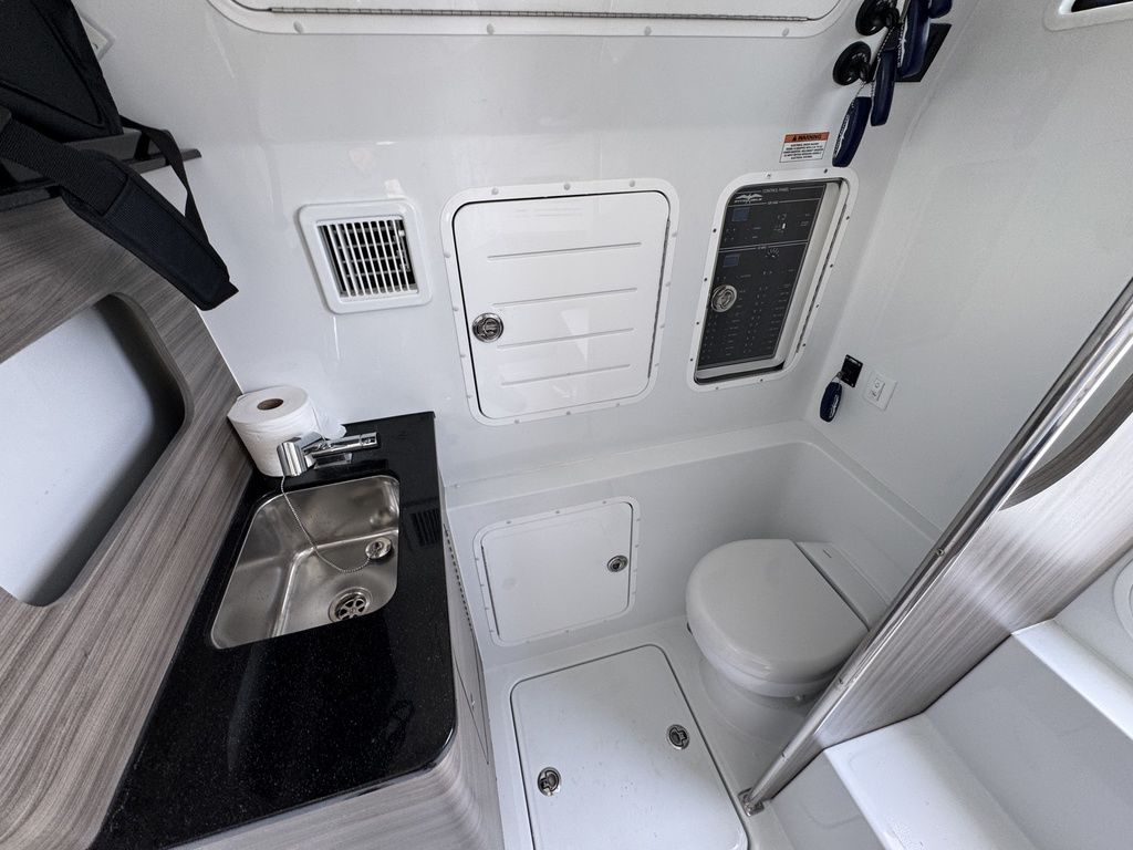 - Large Enclosed Cabin w/ Head, Sink, Rod Storage, Bed, and Air Conditioning