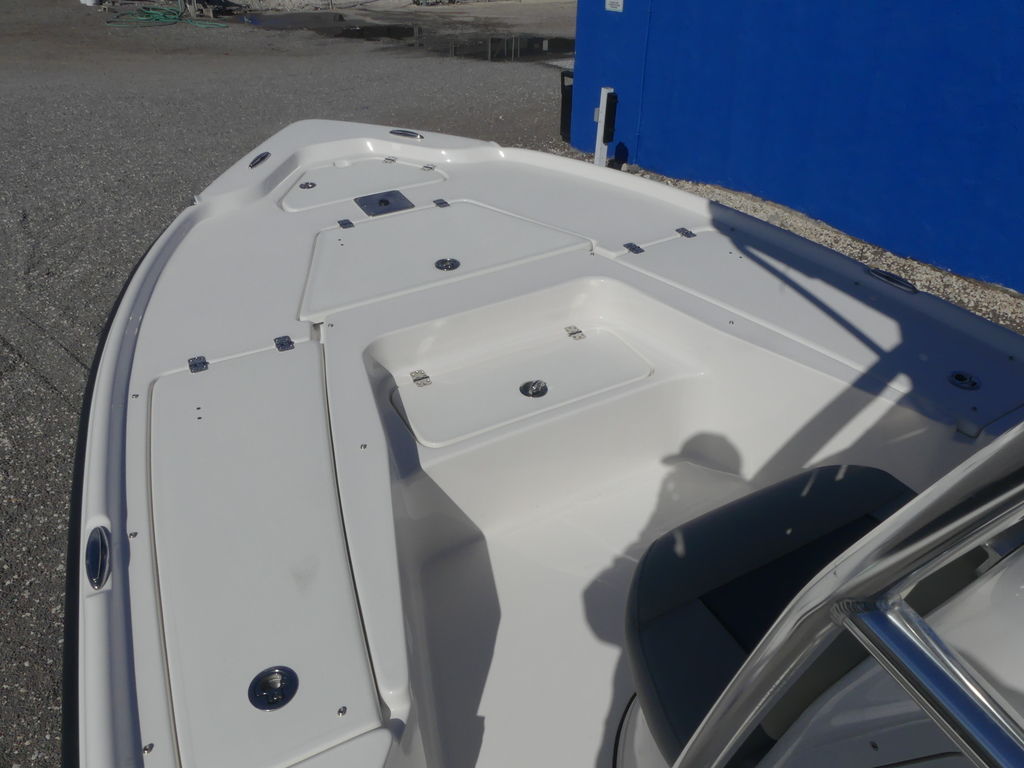 The 210 BR has been specially crafted so that there is room for everything that a serious fisherman needs.The interior has been tweaked and squeezed to get everything a serious fisherman could ask for such as space for 10 seven-foot rods in the lockable rod boxes, dual live wells, spacious front and rear deck, under gunwale molded-in rod racks, and the first bay boat in its class with a potty room under the console. It is a family-friendly bay boat as well with features such as fold-away jump seats in the rear deck, and generous cup holders throughout.