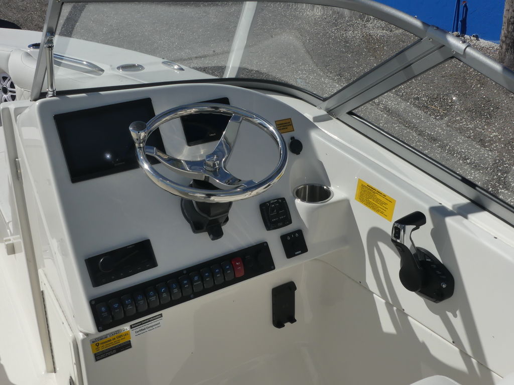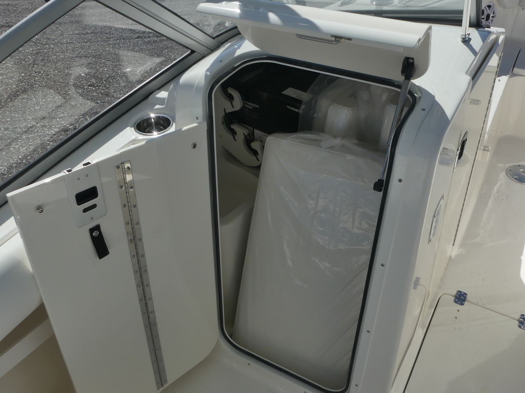 The 239 DFS is the largest and most luxurious of the dual console designs.It is loaded with amenities for comfort and performance, like the built-in hardtop, comfortable bow seating, a wraparound bench seat in the cockpit, a sink with storage, and a standard potty room in the console. It is also self-bailing and foamed to provide upright and level flotation, making it one of the safest family-friendly boats on the market.