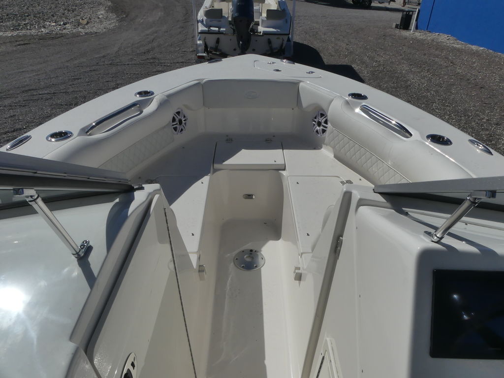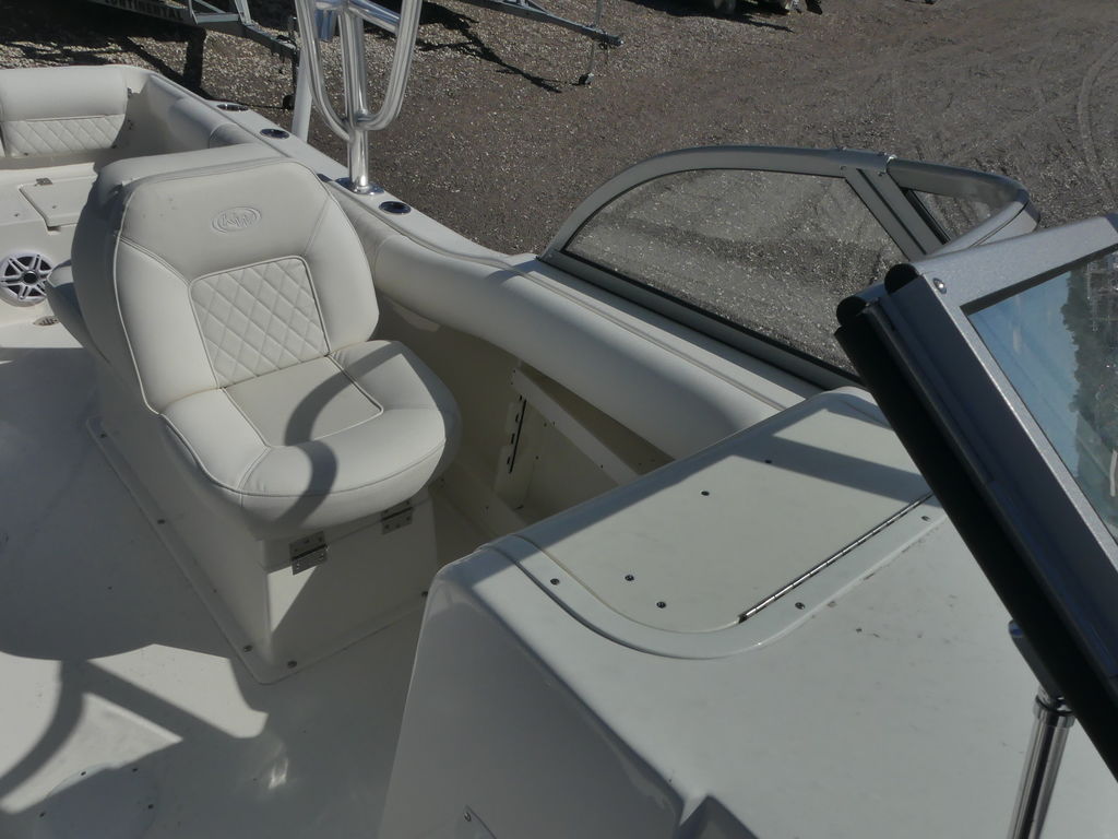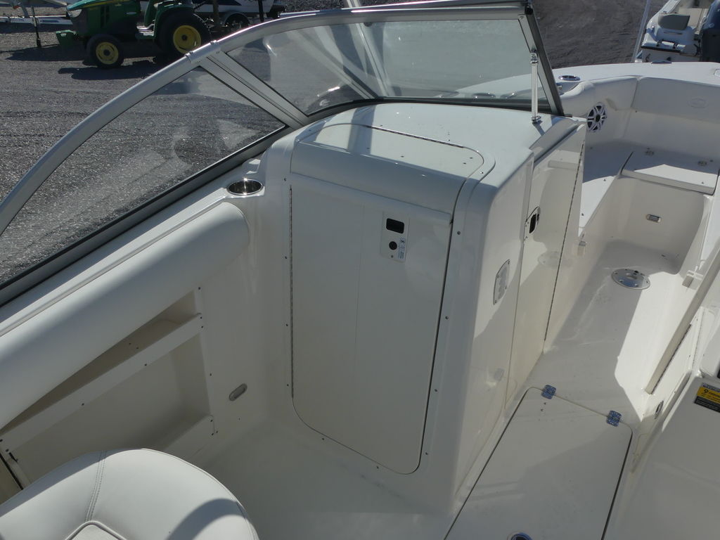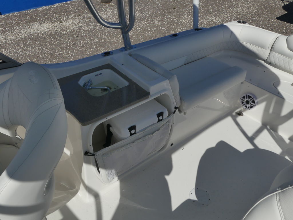 The 239 DFS is the largest and most luxurious of the dual console designs.It is loaded with amenities for comfort and performance, like the built-in hardtop, comfortable bow seating, a wraparound bench seat in the cockpit, a sink with storage, and a standard potty room in the console. It is also self-bailing and foamed to provide upright and level flotation, making it one of the safest family-friendly boats on the market.