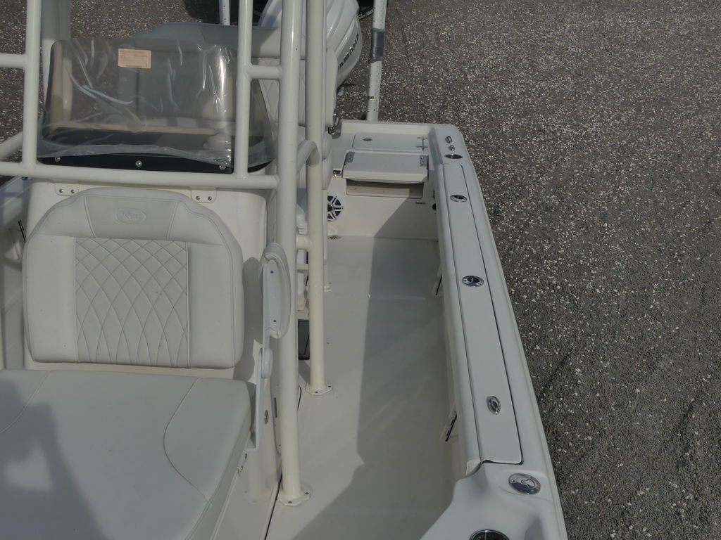 The largest of the Bay Reef series, capturing all the features you could ask for in a bay boat.It features an expansive uninterrupted bow fishing deck, as well as long under-gunnel rod storage capable of holding 9’+ fly rods, and tournament-sized live wells in the front and rear. It has expanded storage under the back deck, with the battery storage under the console so you can put up to five batteries completely out of the way. The expanded floor space allows for options such as the expanded lounge seat on the console which incorporates a huge macerated fish box or you can opt for the open floor plan with the standard console. If you are a live bait fishermen you can also add the huge live well leaning post, or stick with the standard leaning post and enjoy the open space it provides.