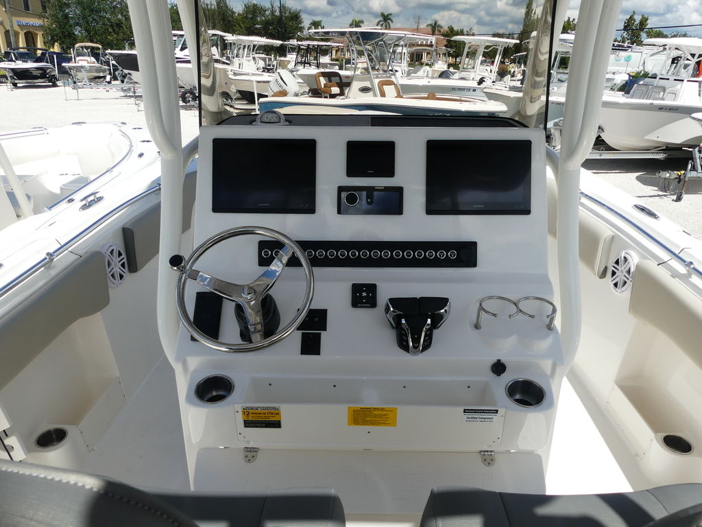 The 263FS is a perfect choice for family, fishing, or just cruising on the water.This model is full of features that enhance the design and performance, providing the active family with all they could ask for on the water. Some of the standard features include an under-deck windlass, eight-speaker stereo with amplifier, hardtop, side entry door with hidden ladder, power assist steering, and Seakeeper Ride system. It remains a highly fish-able vessel with features like dual live wells, a macerated fish box, 22-rod holders, and horizontal storage racks under the gunnels to hold your longest saltwater rods.