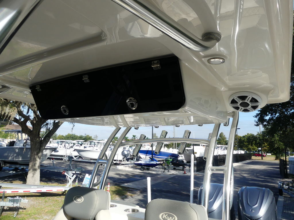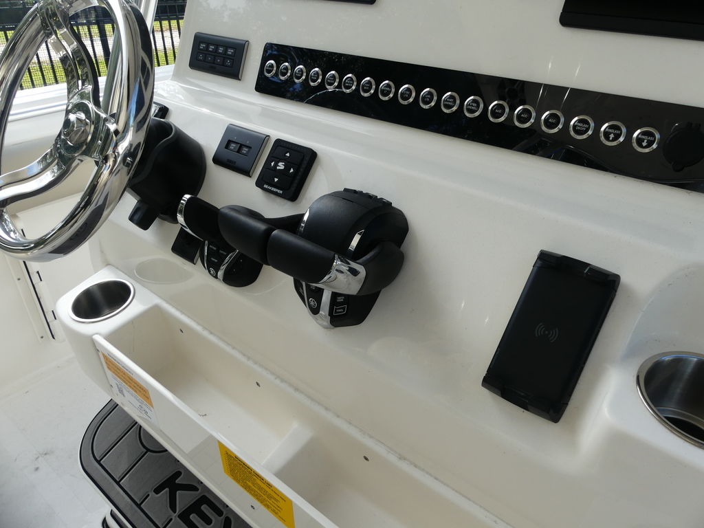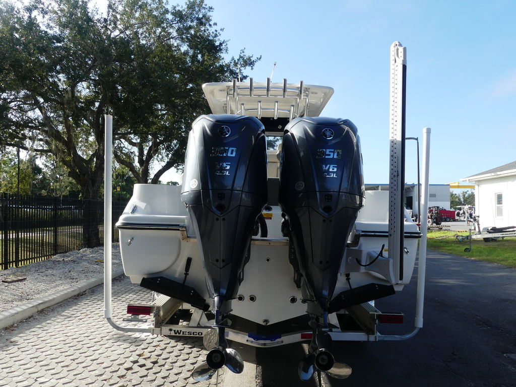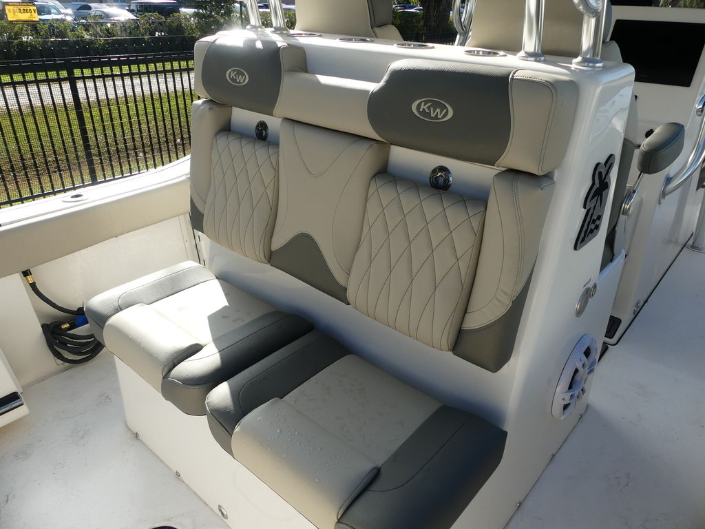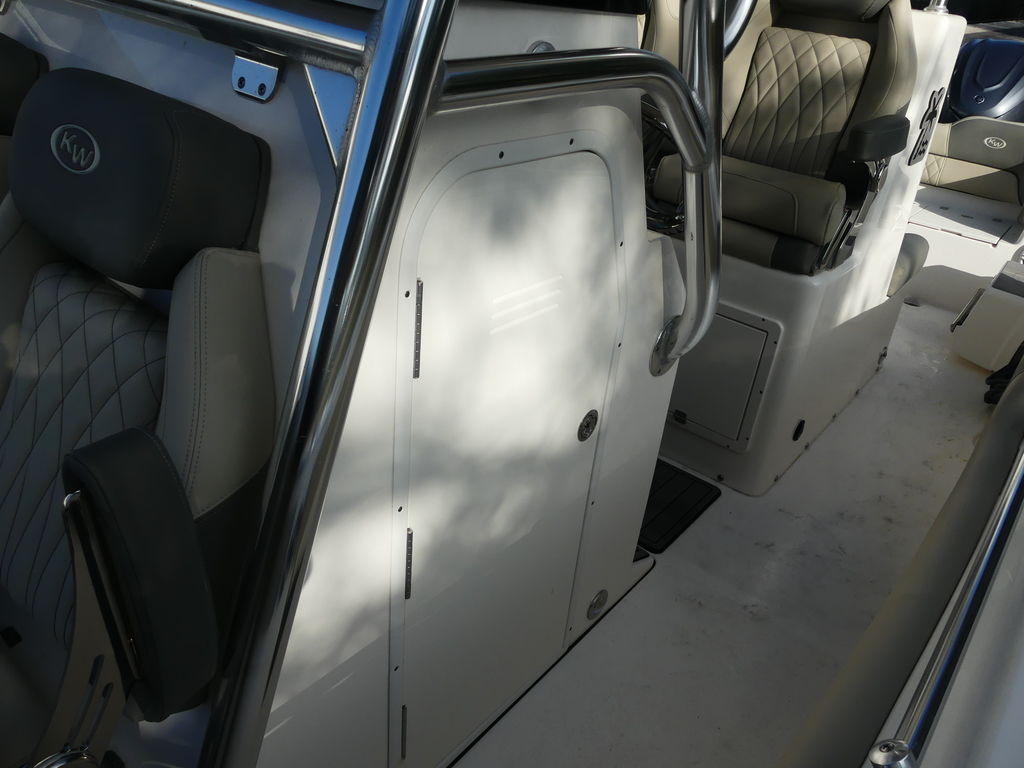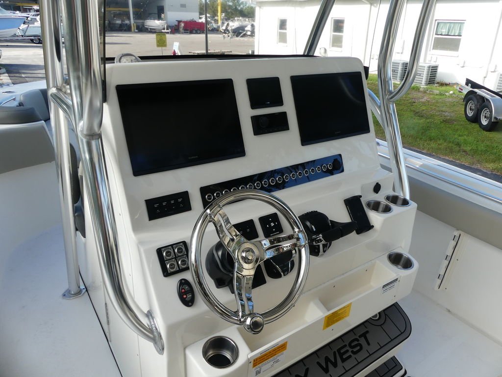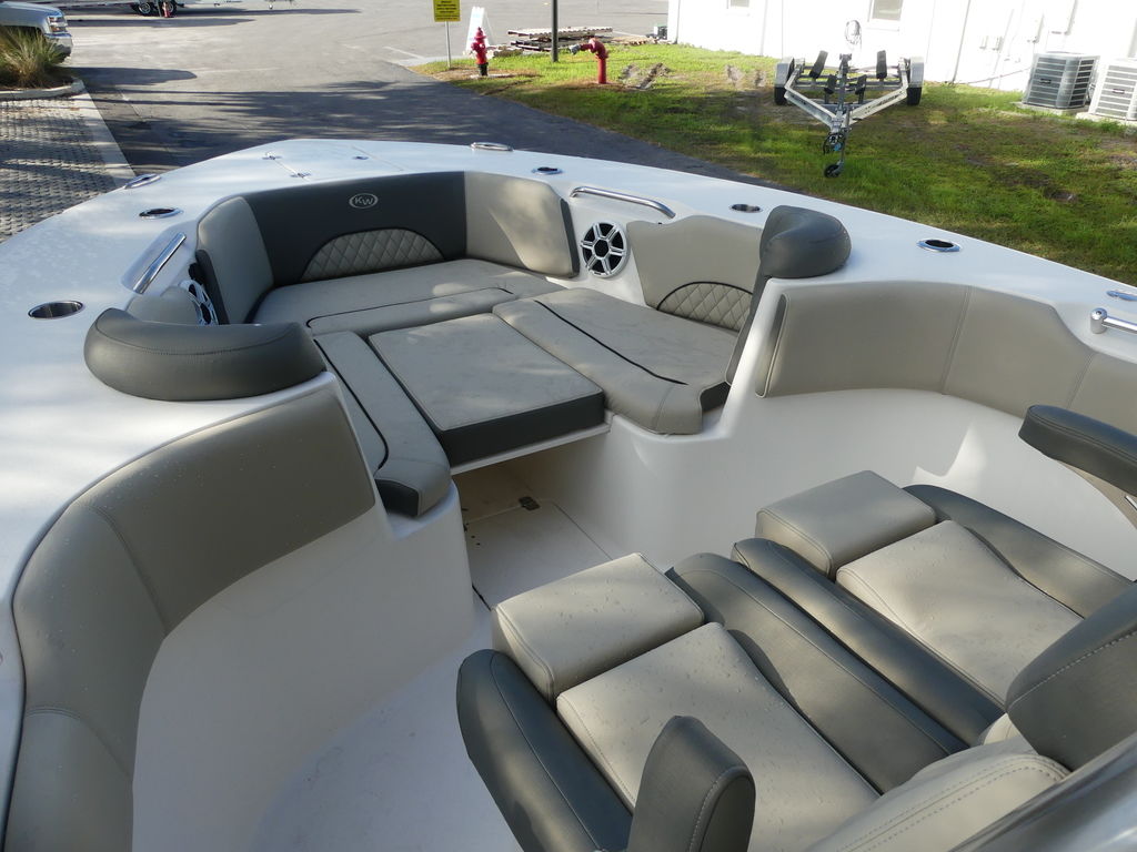 The 291FS represents the largest of our fleet of Family Sportsman Boats.The vessel comes standard with an underdeck windlass, fuel fills on both sides, and side entry doors on each side; one with a hidden ladder and one with a beach anchor. For creature comforts, it is outfitted with wraparound bow seating, slide-out lounge seats on the console front, a lined console interior with a freshwater sink, and a huge dash space for a custom instrument layout. For fishing, it offers dual live wells, large molded-in rod storage racks, plenty of rod holders, an under-deck macerated fish box, and even a Seakeeper option.