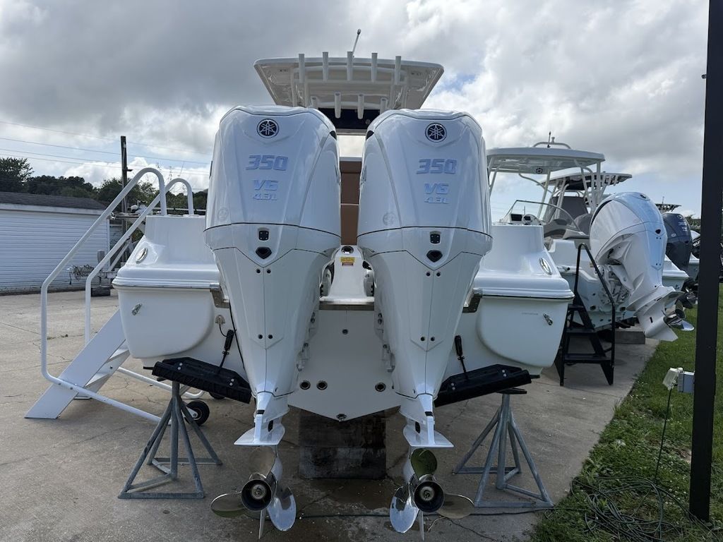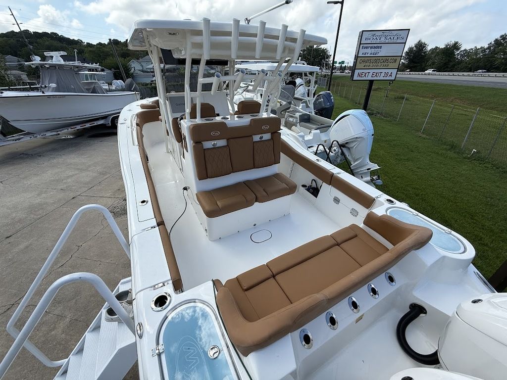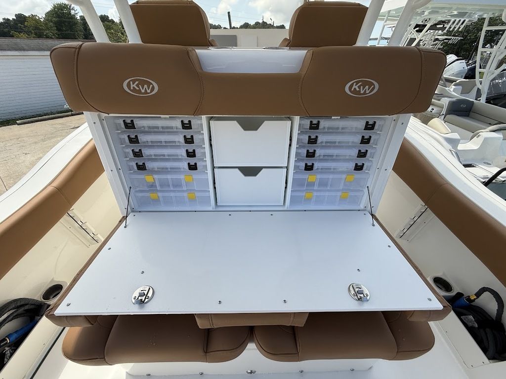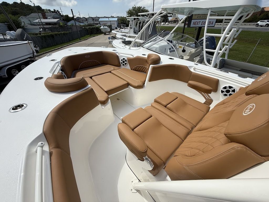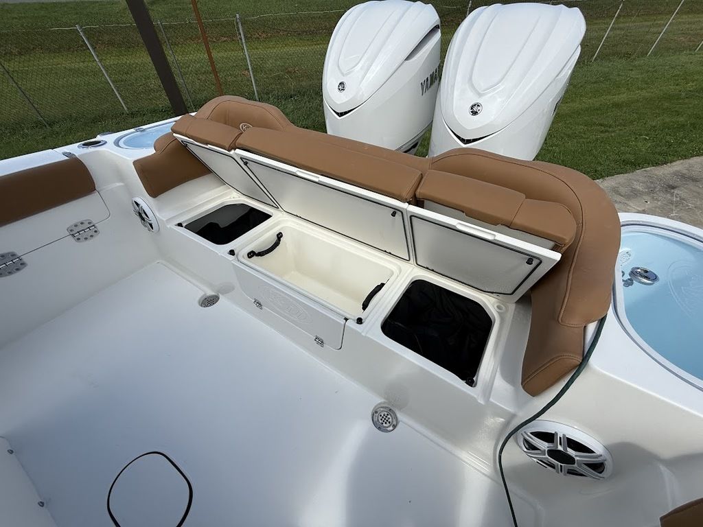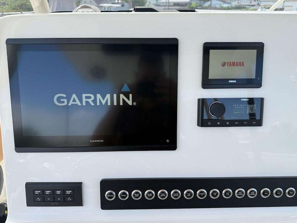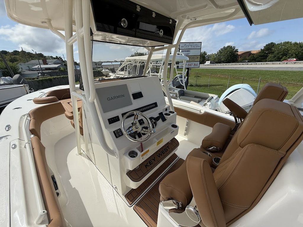 The 291FS represents the largest of our fleet of Family Sportsman Boats.The vessel comes standard with an underdeck windlass, fuel fills on both sides, and side entry doors on each side; one with a hidden ladder and one with a beach anchor. For creature comforts, it is outfitted with wraparound bow seating, slide-out lounge seats on the console front, a lined console interior with a freshwater sink, and a huge dash space for a custom instrument layout. For fishing, it offers dual live wells, large molded-in rod storage racks, plenty of rod holders, an under-deck macerated fish box, and even a Seakeeper option.