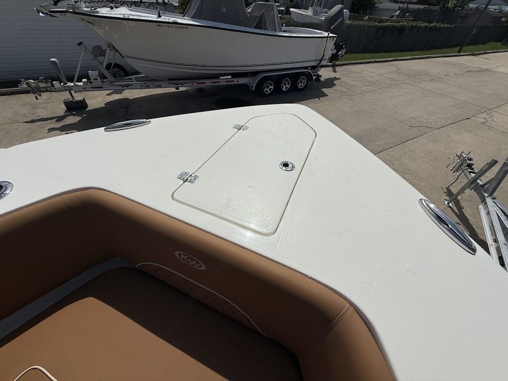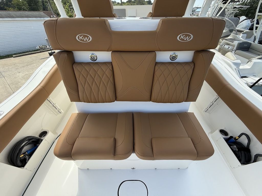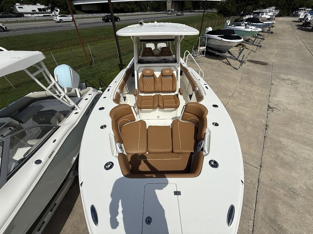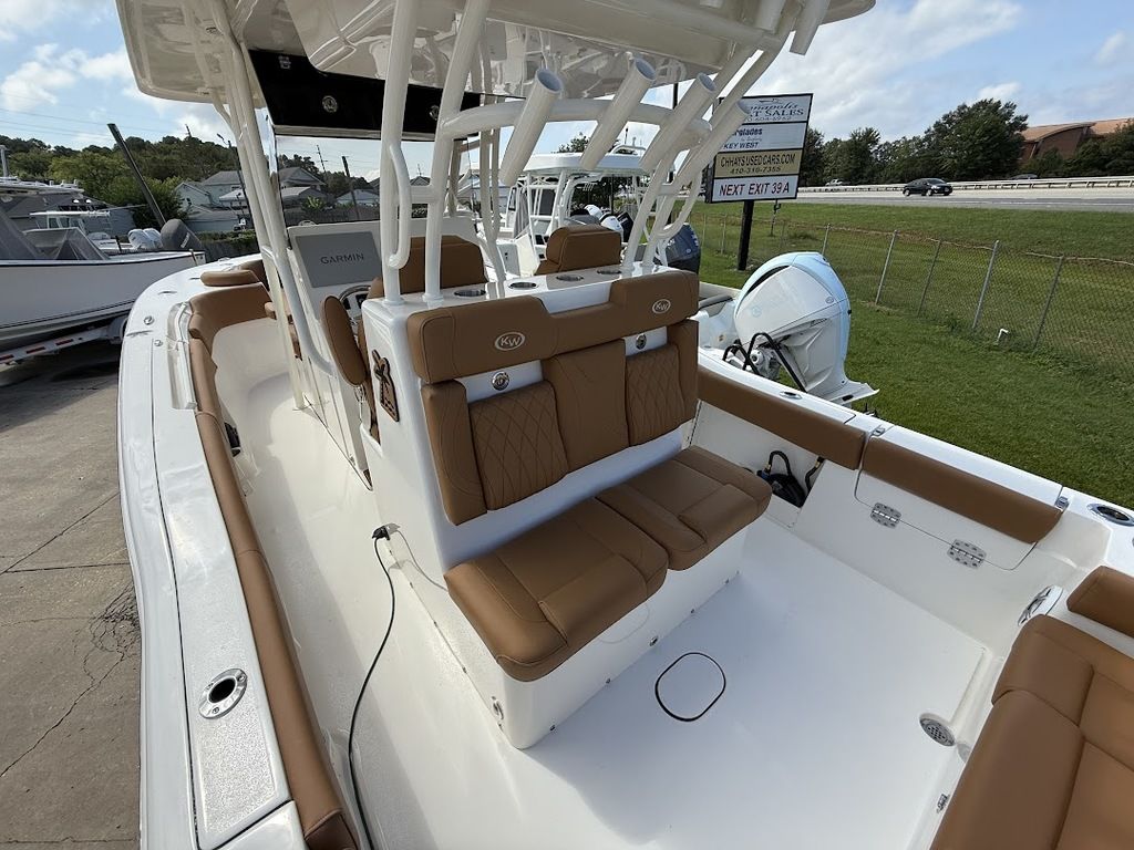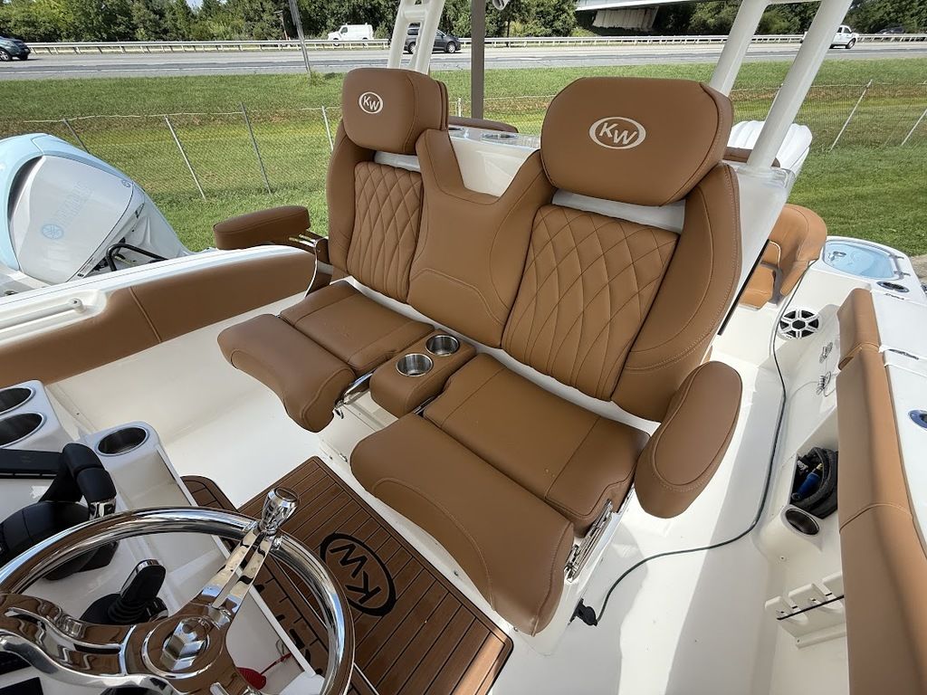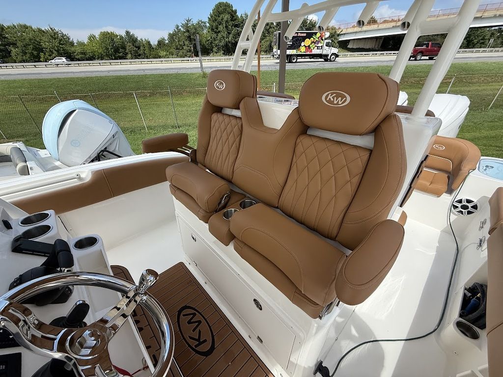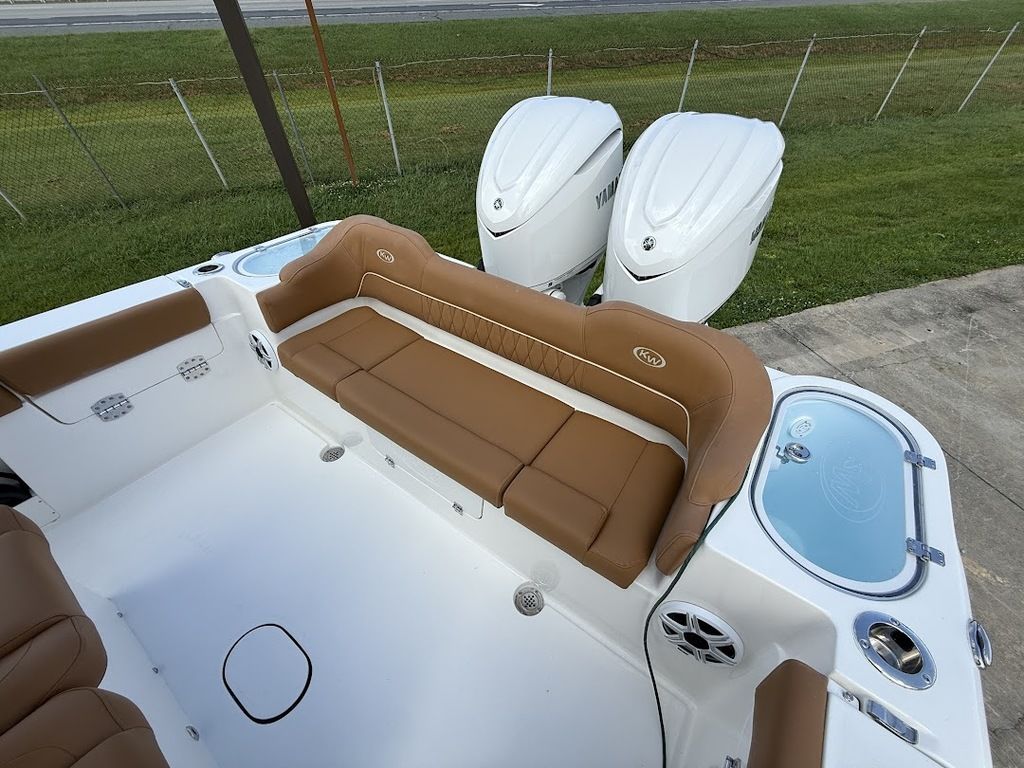 The 291FS represents the largest of our fleet of Family Sportsman Boats.The vessel comes standard with an underdeck windlass, fuel fills on both sides, and side entry doors on each side; one with a hidden ladder and one with a beach anchor. For creature comforts, it is outfitted with wraparound bow seating, slide-out lounge seats on the console front, a lined console interior with a freshwater sink, and a huge dash space for a custom instrument layout. For fishing, it offers dual live wells, large molded-in rod storage racks, plenty of rod holders, an under-deck macerated fish box, and even a Seakeeper option.
