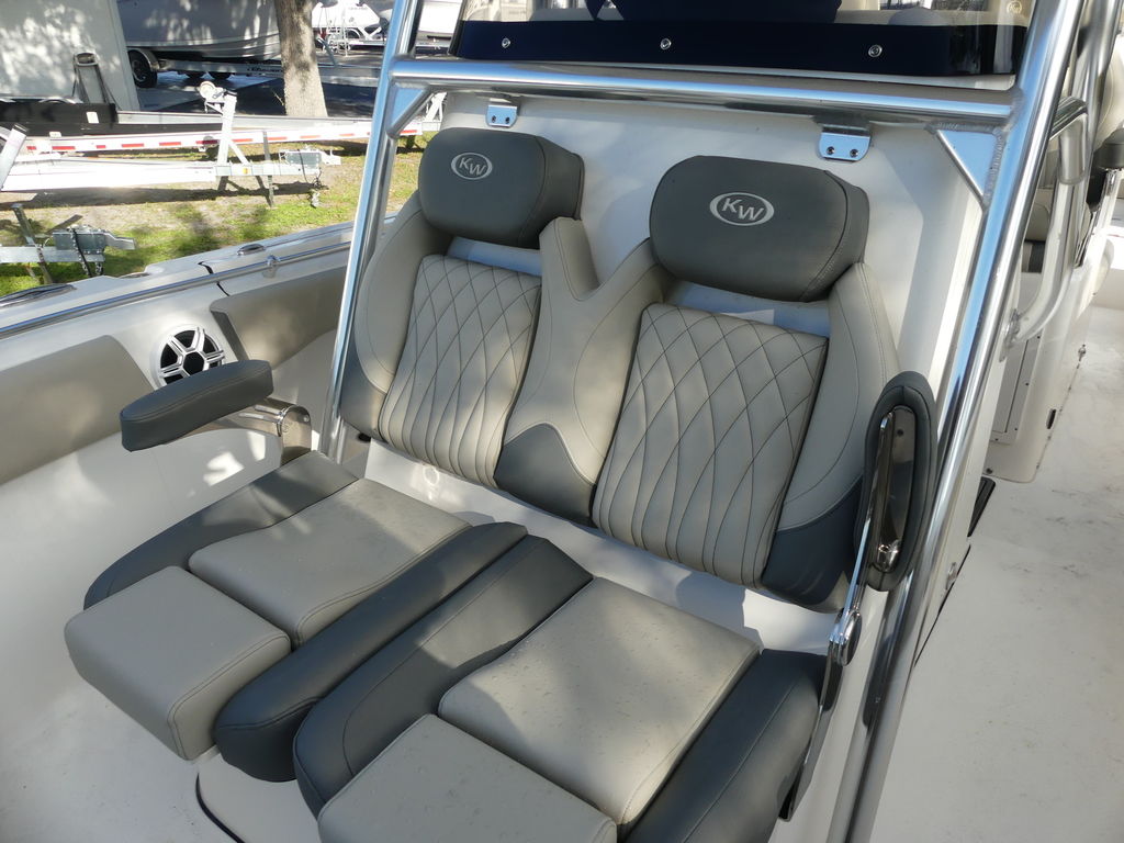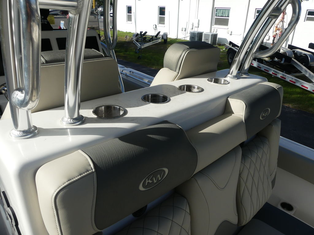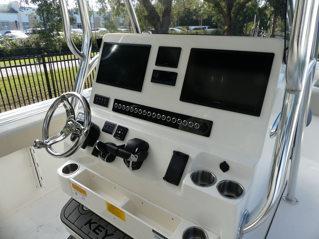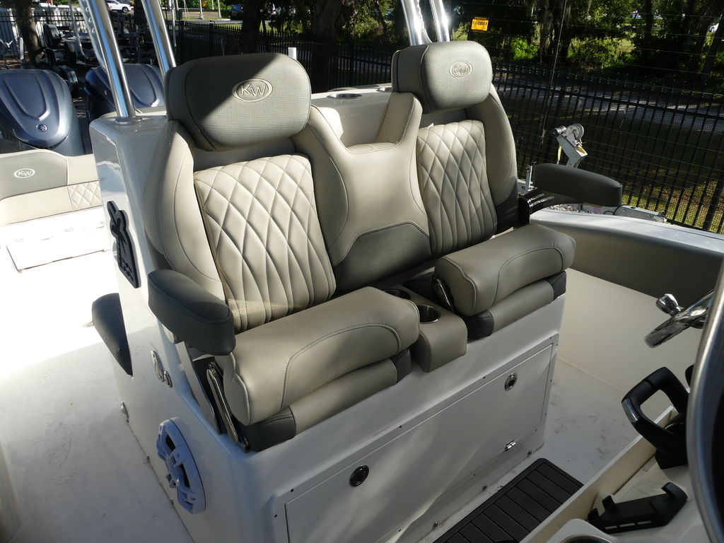 The 291FS represents the largest of our fleet of Family Sportsman Boats.The vessel comes standard with an underdeck windlass, fuel fills on both sides, and side entry doors on each side; one with a hidden ladder and one with a beach anchor. For creature comforts, it is outfitted with wraparound bow seating, slide-out lounge seats on the console front, a lined console interior with a freshwater sink, and a huge dash space for a custom instrument layout. For fishing, it offers dual live wells, large molded-in rod storage racks, plenty of rod holders, an under-deck macerated fish box, and even a Seakeeper option.