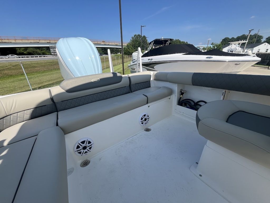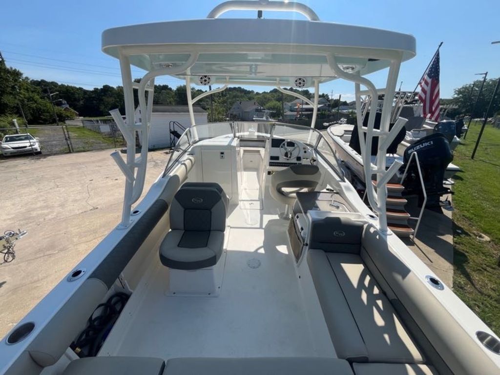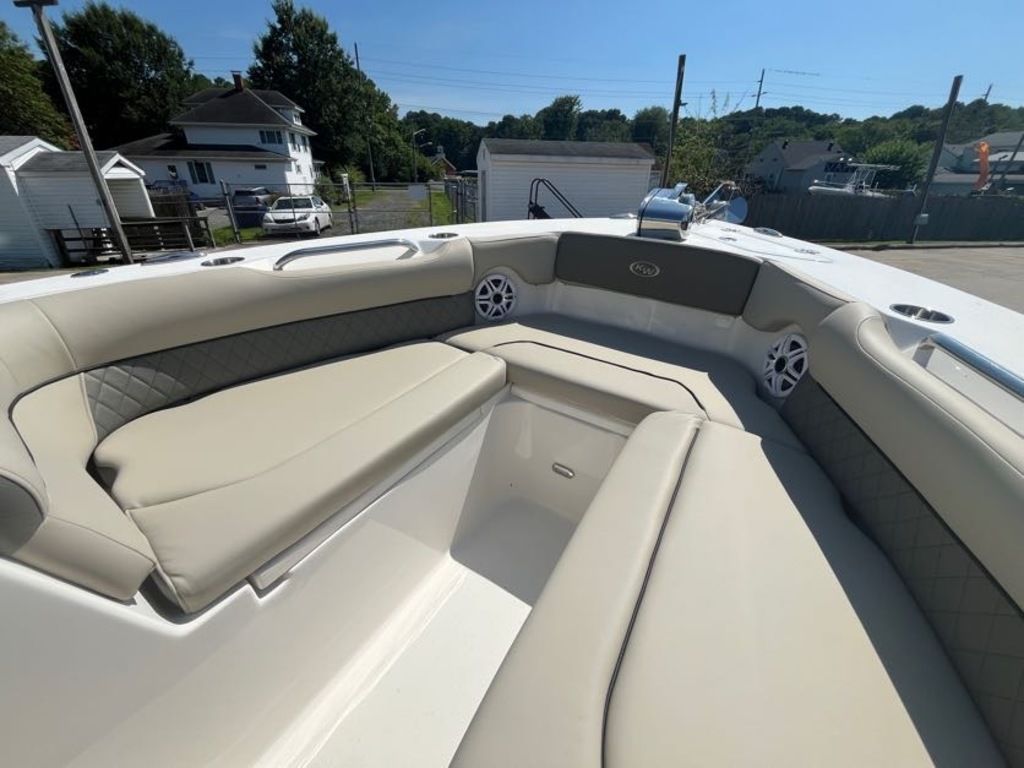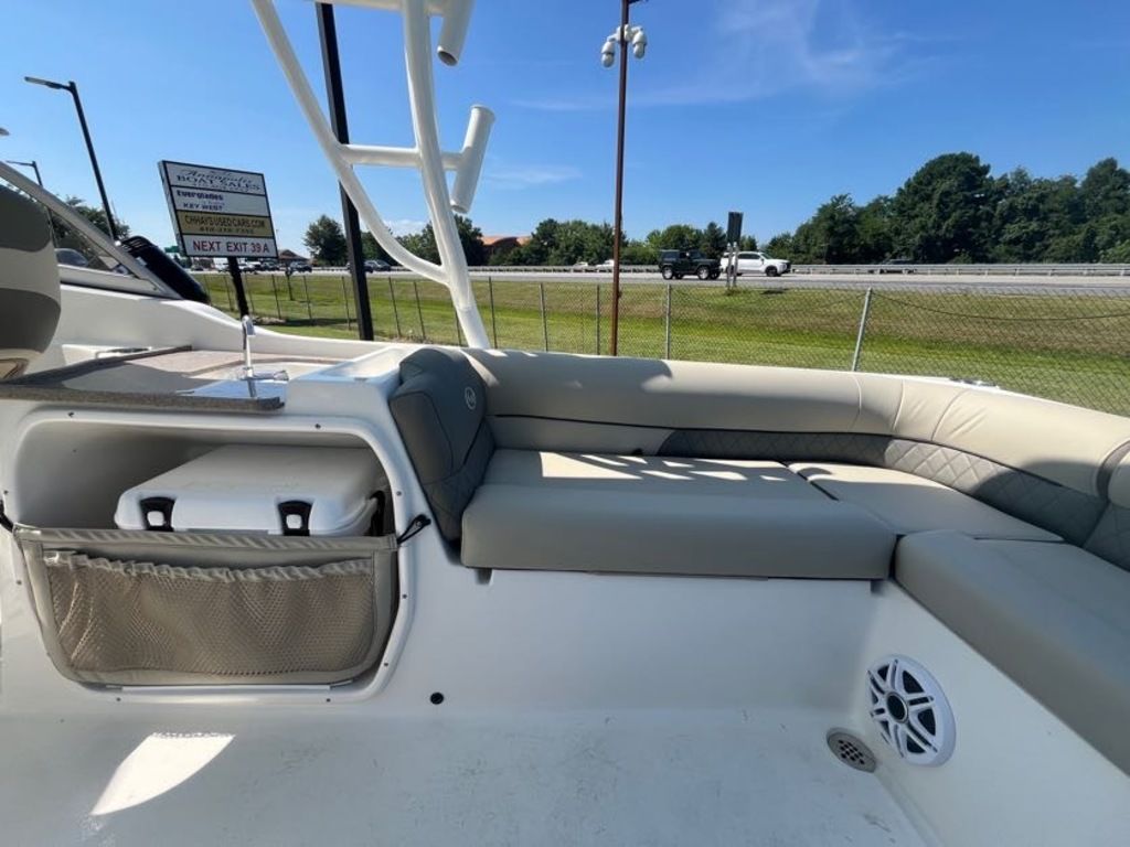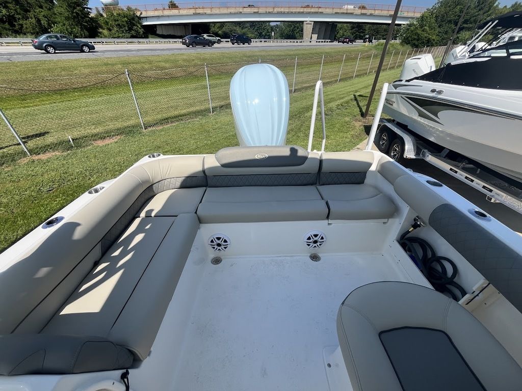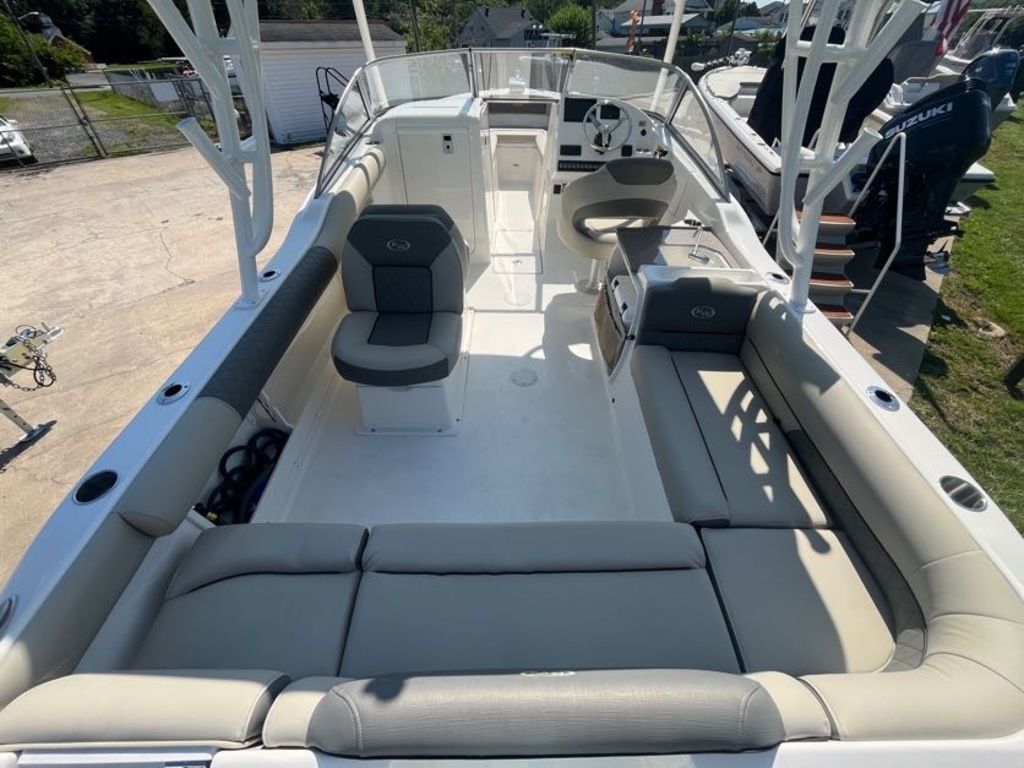 Both of our Dual Family Sportsmans feature rod racks, rod holders, and live wells, which allow for the occasional fishing day combined with the utility of a wrap around windshield and extensive seating. These saltwater friendly runabouts feature comfortable seating up front with a sporty wraparound bench in the cockpit. Watersports enthusiasts will enjoy the built in swim ladder combined with a swinging entry door for easy boarding, and for the occasional fishing trip will find convenient rod holders and even a live well.