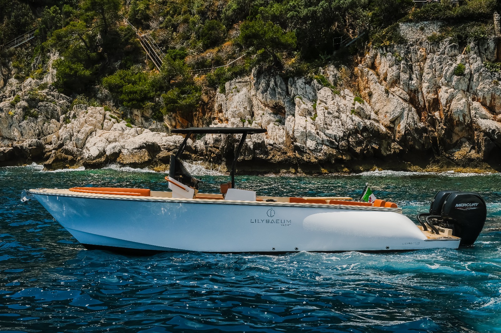 The Levanzo 25 is available in various colors and can be equipped with 1 or 2 Mercury outboard engines. Ask our brokers about the options!