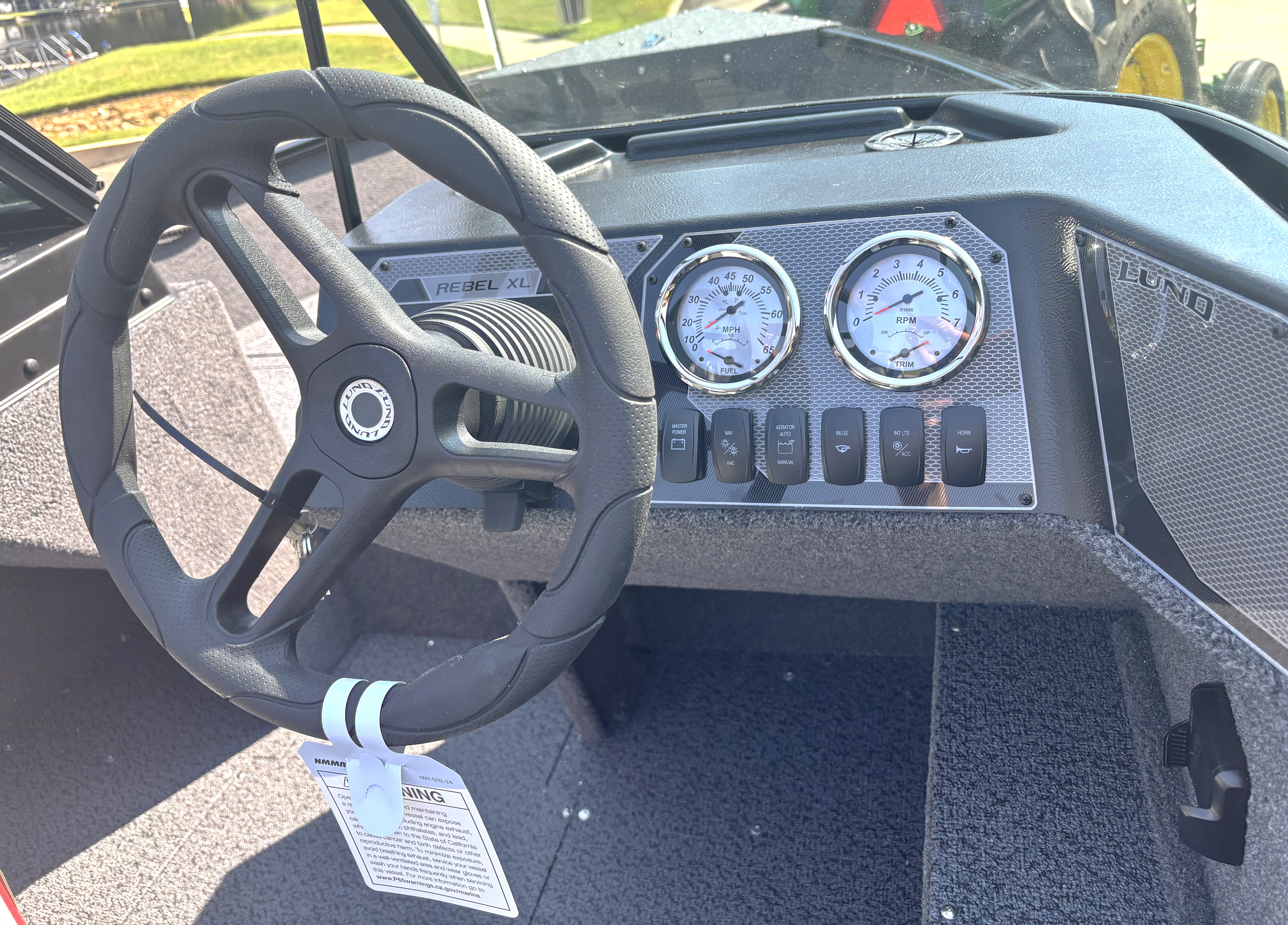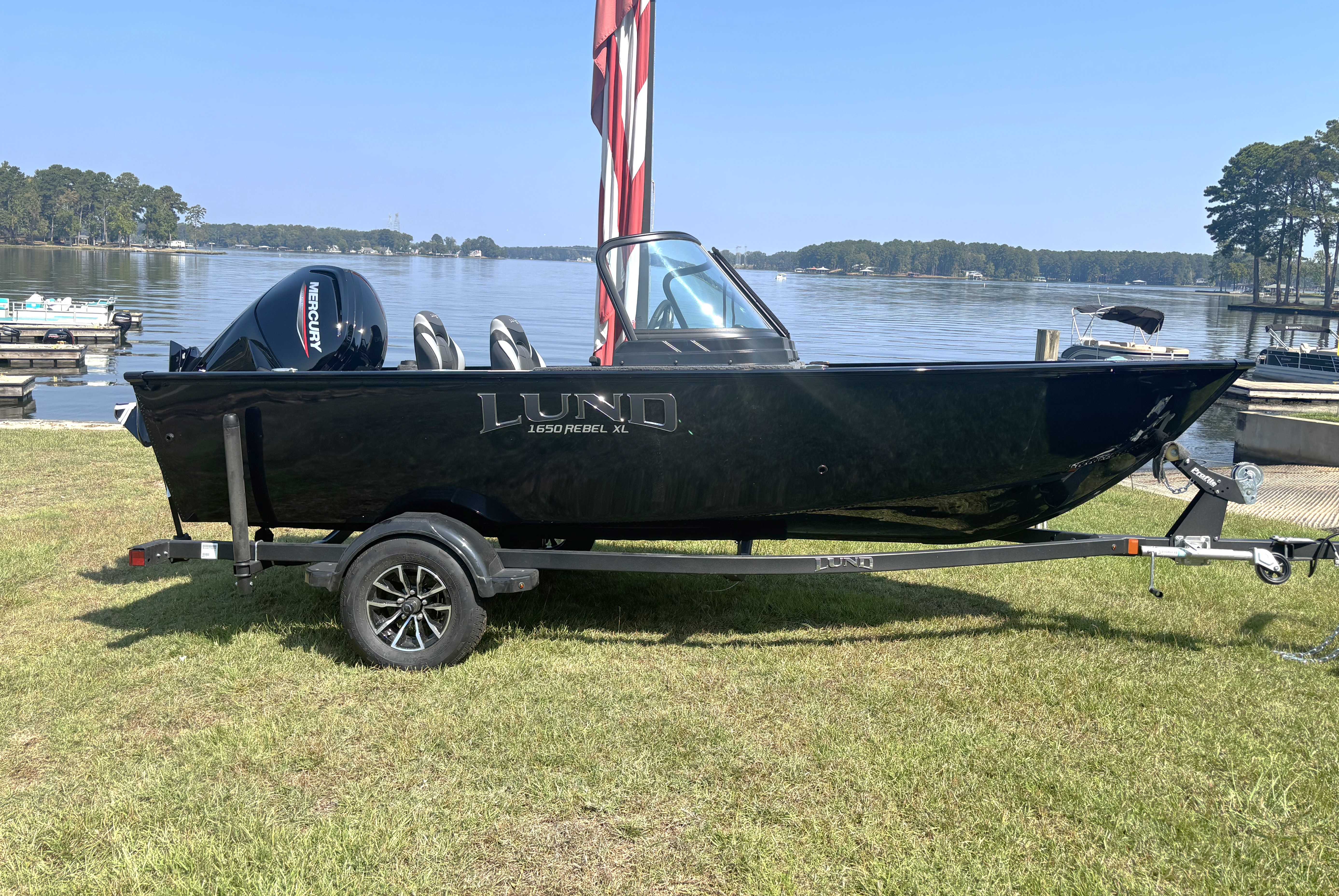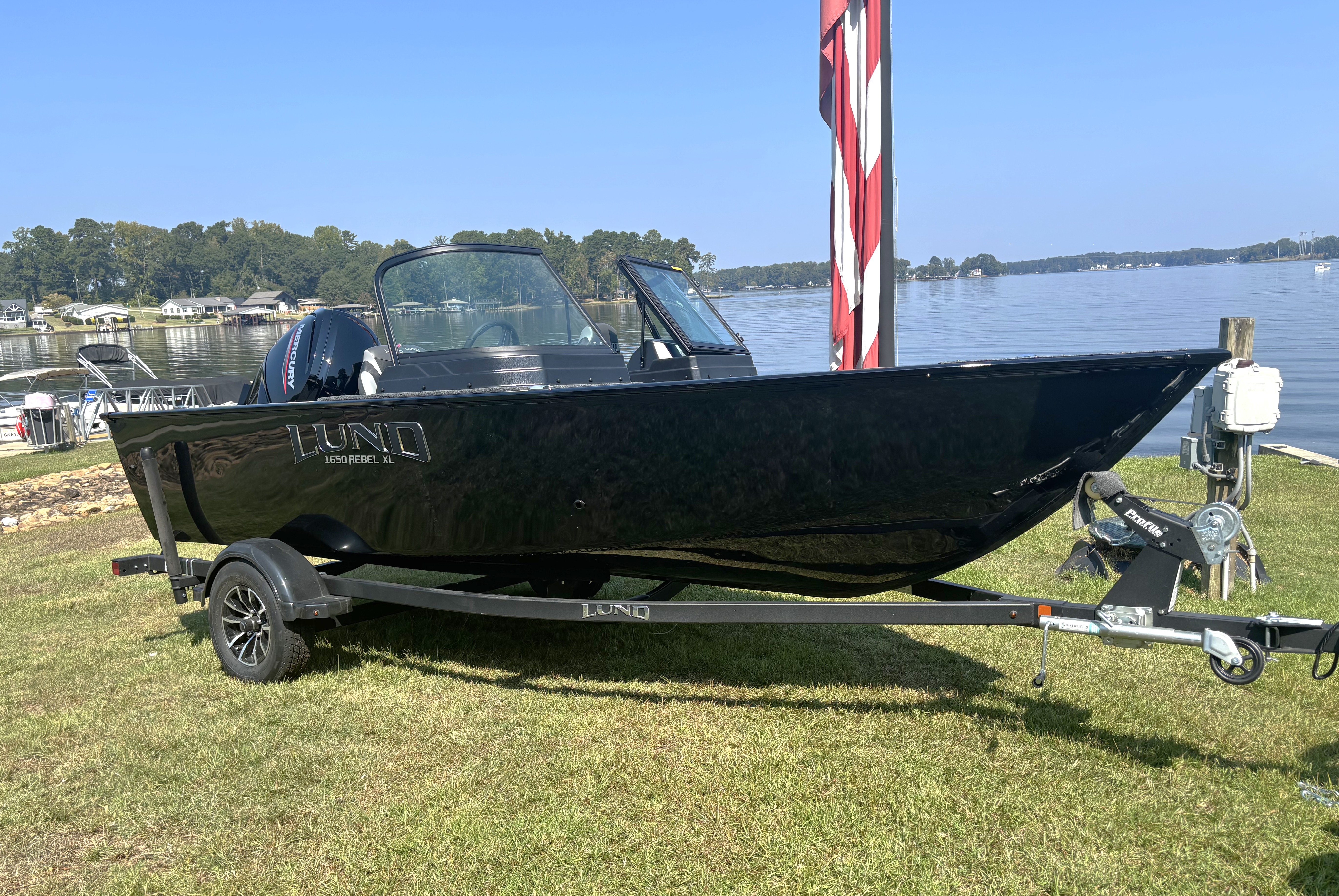 New 2026 Lund Rebel XL Sport Special Edition in black. Boat features unique touches to set it apart from your average fishing boat. Max power comes from a Mercury 90 hp Four Stroke outboard for excellent on water performance. This Lund comes with all the standard features of the Rebel series plus these added options: Driver's seat slider, tilt steering 24 V wiring upgrade, 1 additional Pro ride seat & custom fit travel cover all sitting on a matching Lund bunk trailer with aluminum wheels & load guides. Need a graph or trolling motor? Get a quote from our parts & service dept to get just the right electronics for your fishing style & budget. For more details, plus latest in pricing and incentives give us a call at Sinclair Marine (478) 449-3300 or stop in and see us at 170 SInclair Marina Road Milledgeville, GA.