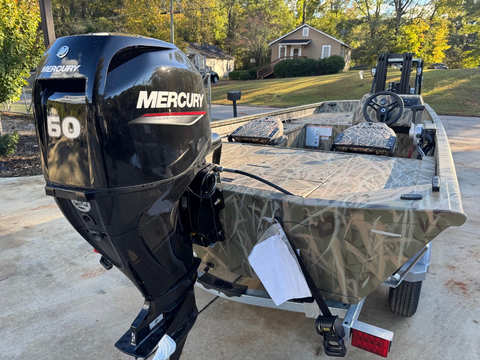 Now Available! The Lund 1760 Predator side console is powered by a Mercury 60HP outboard motor and the trailer is included in the price! A great multi-use boat for an affordable price!