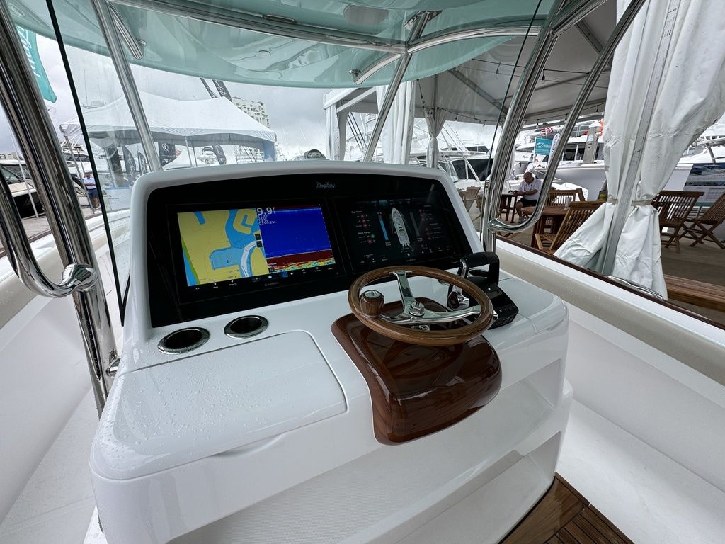- State-of-the-Art Helm: Equipped with an intuitive layout, the console integrates the latest in Garmin marine electronics, Empirbus digital switching, and premium navigation, offering complete control and enhanced safety at your fingertips.